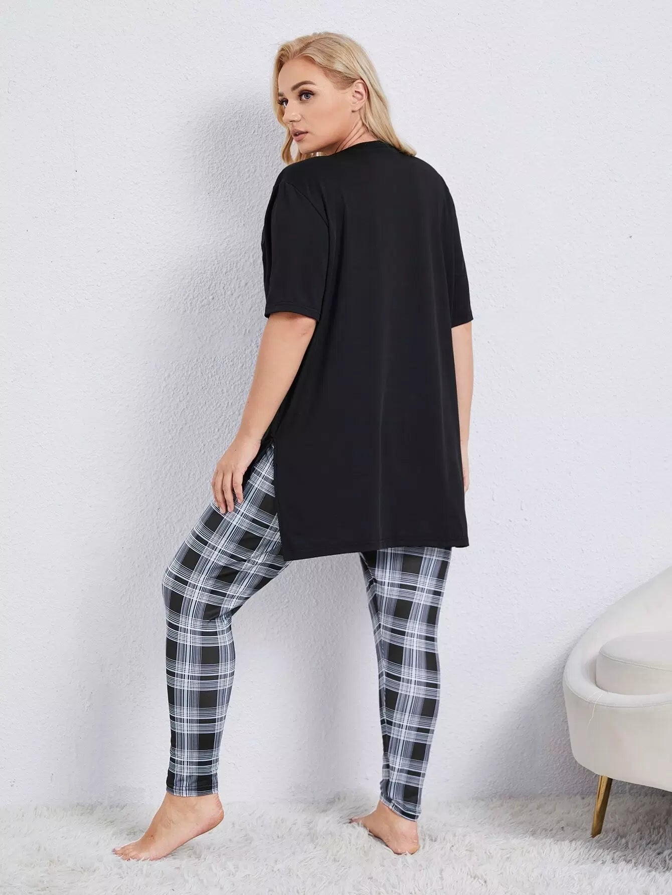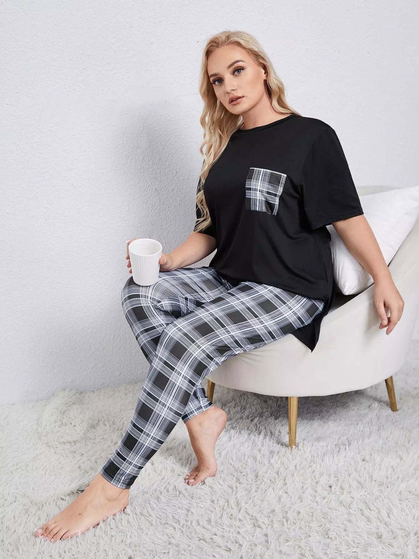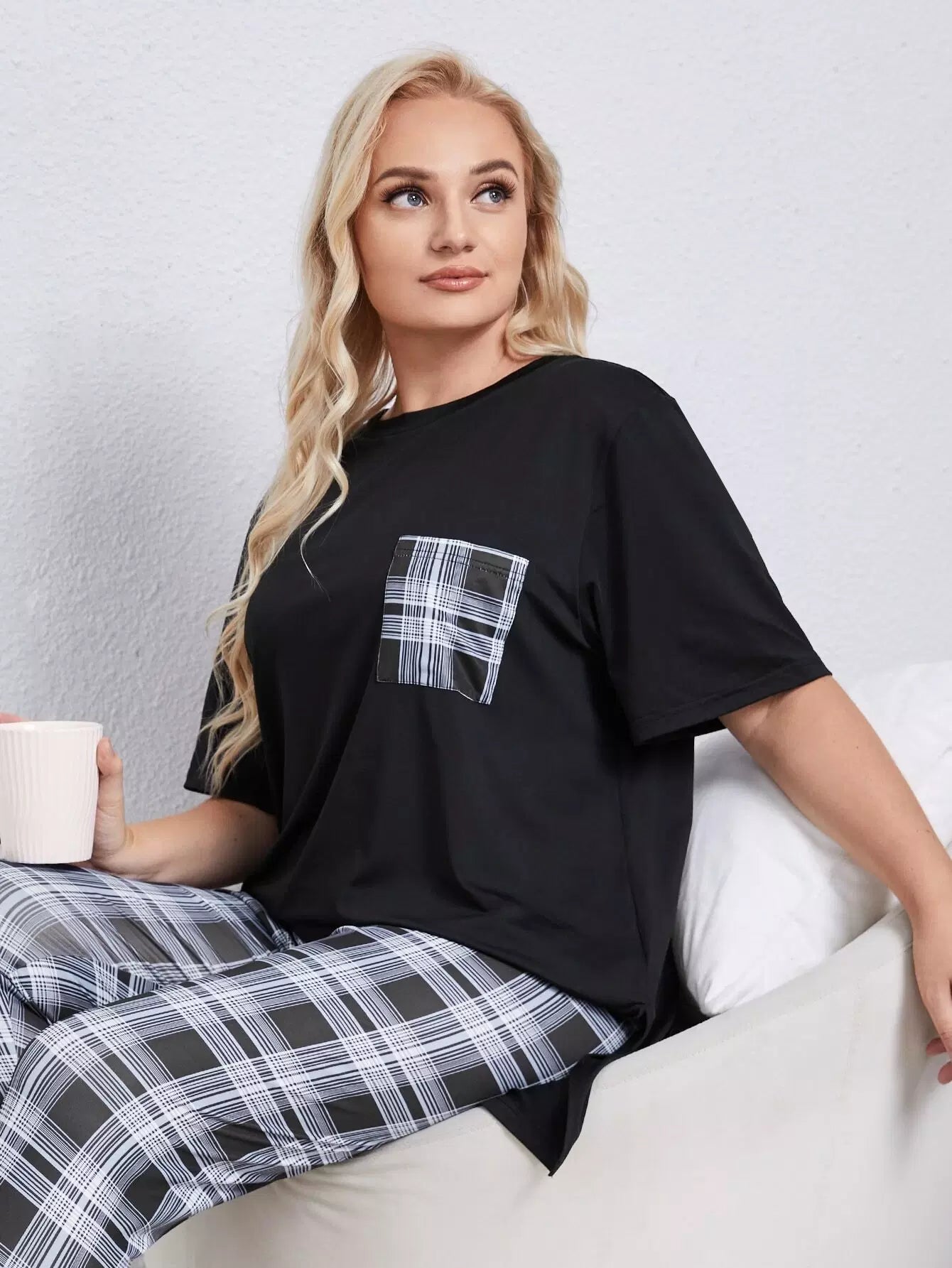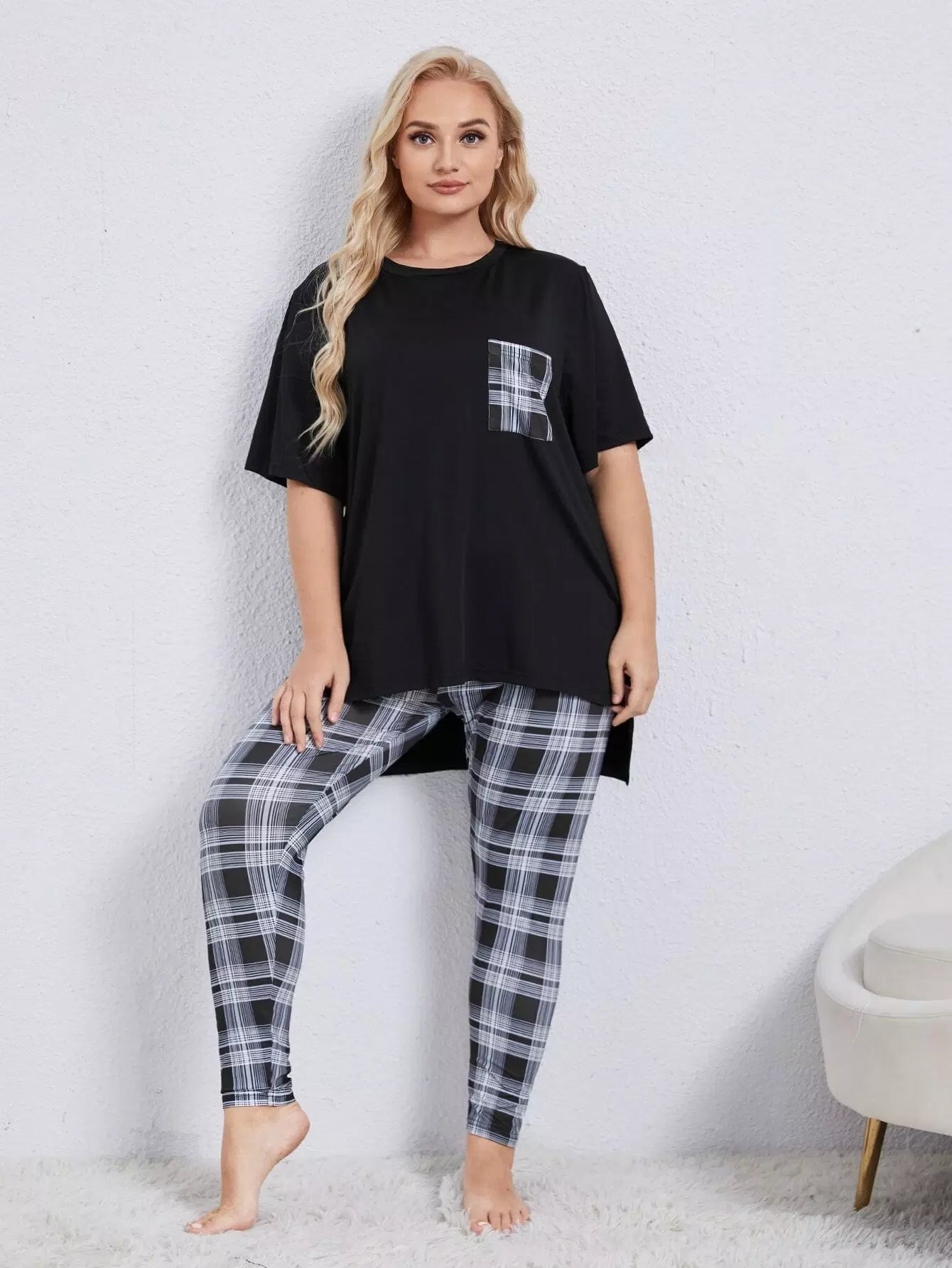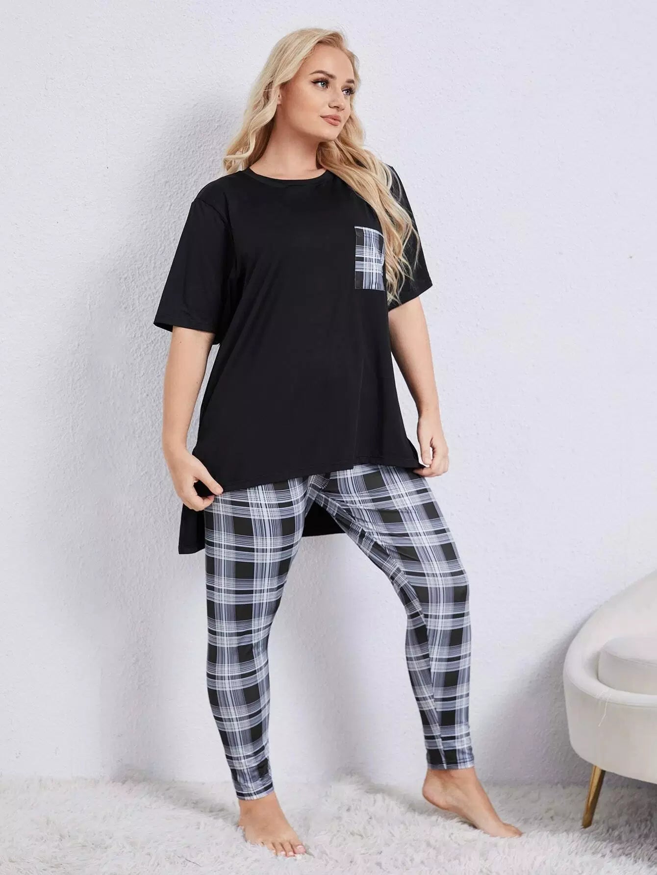Plus Patched Pocket Plaid High Low Hem PJ Set