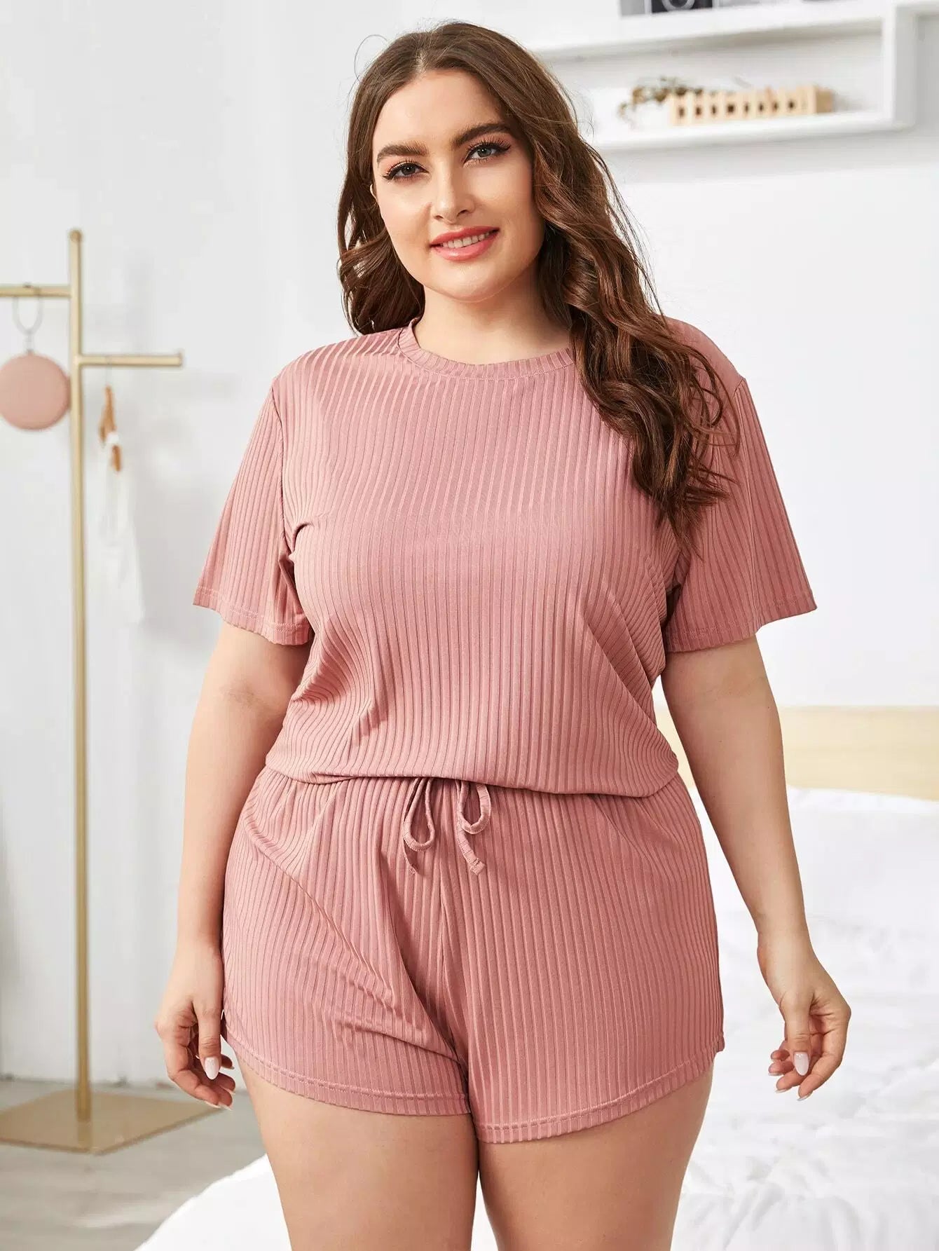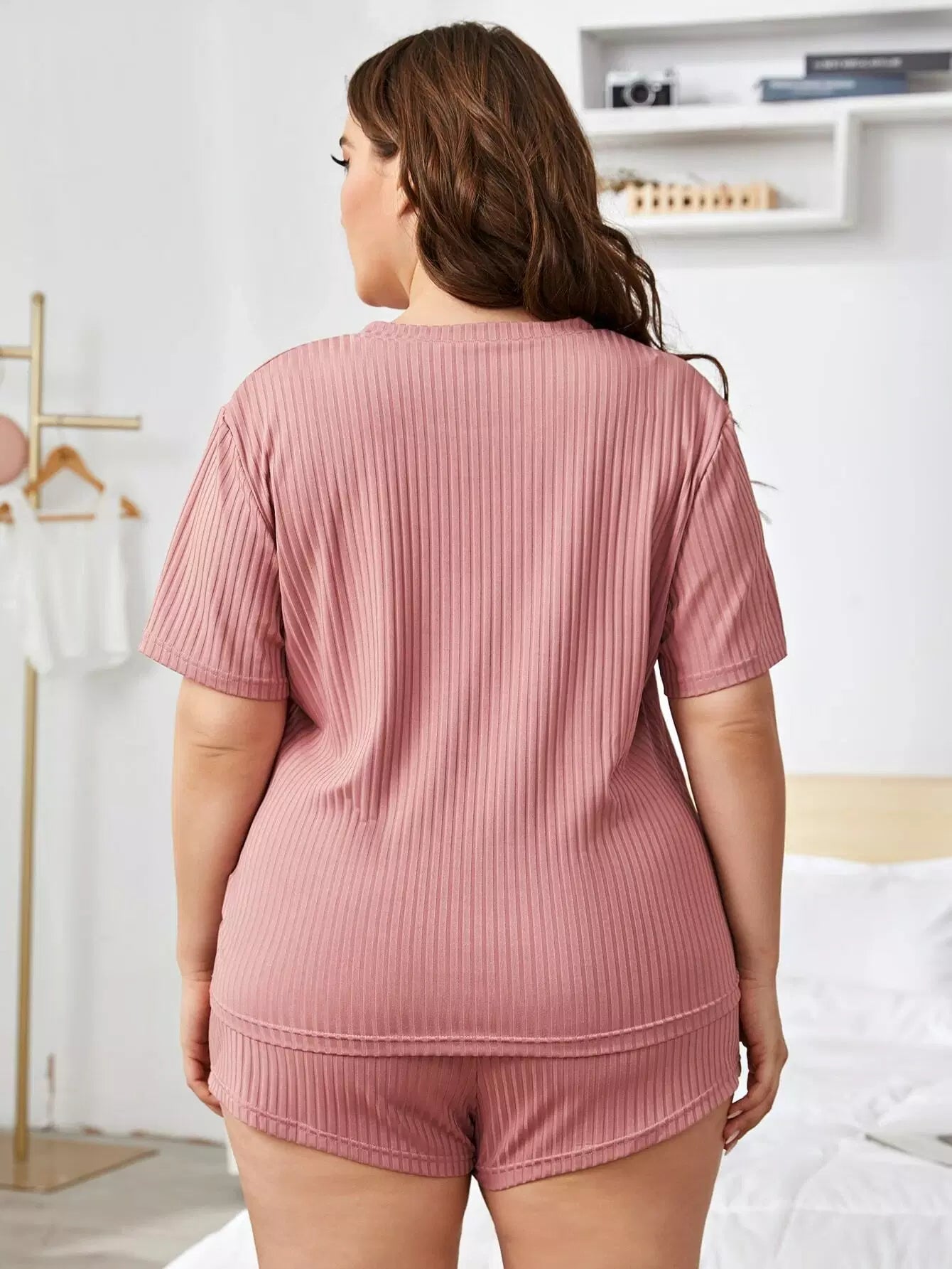 Plus Rib-knit Tee & Knot Front Shorts PJ Set