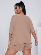 Plus Solid Notched Drop Shoulder Tee & Shorts PJ Set