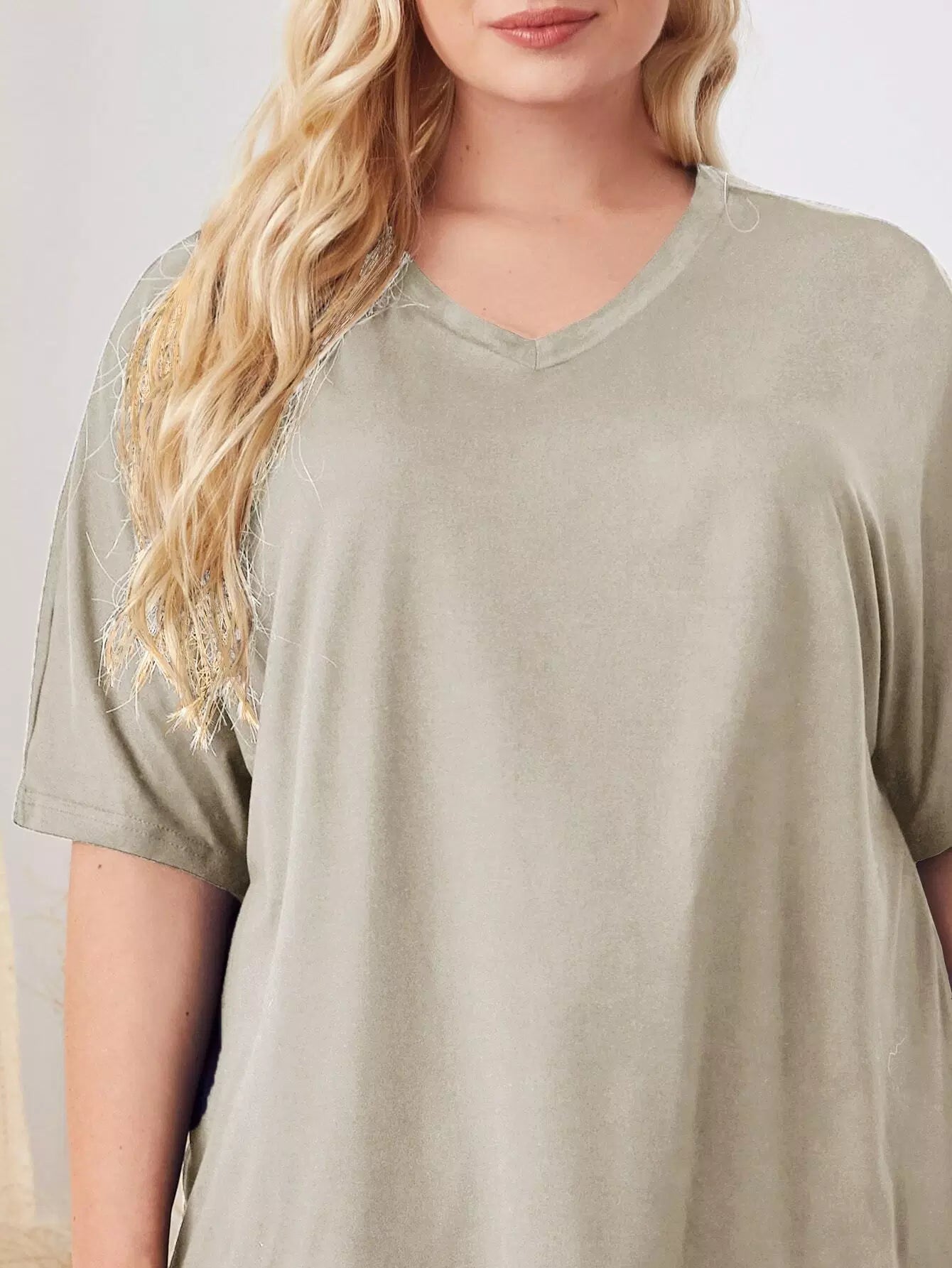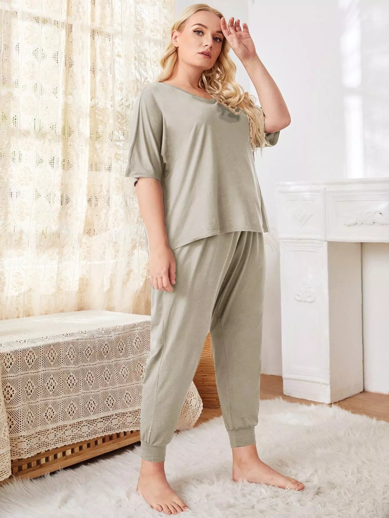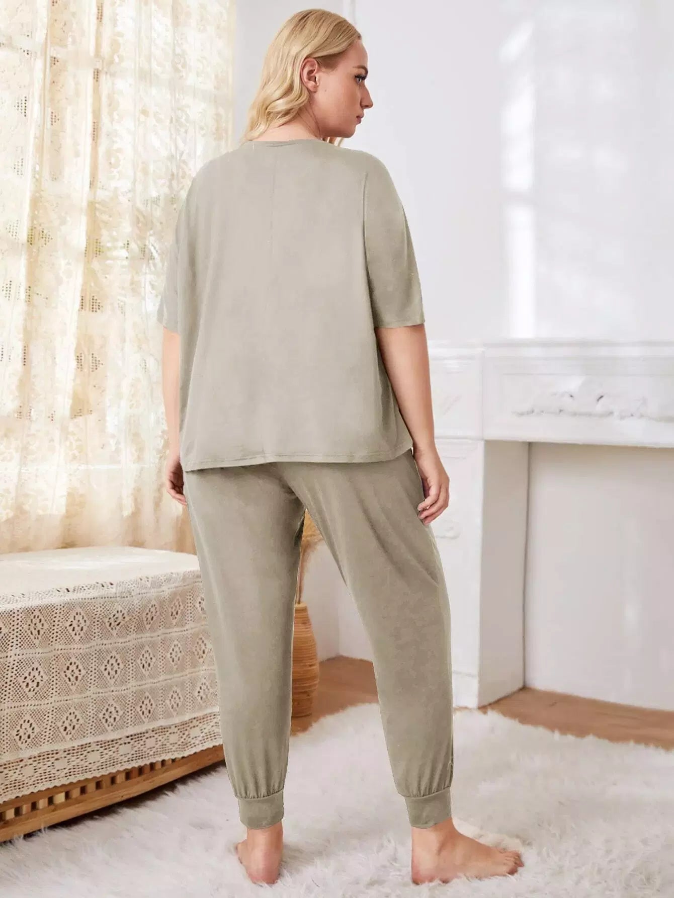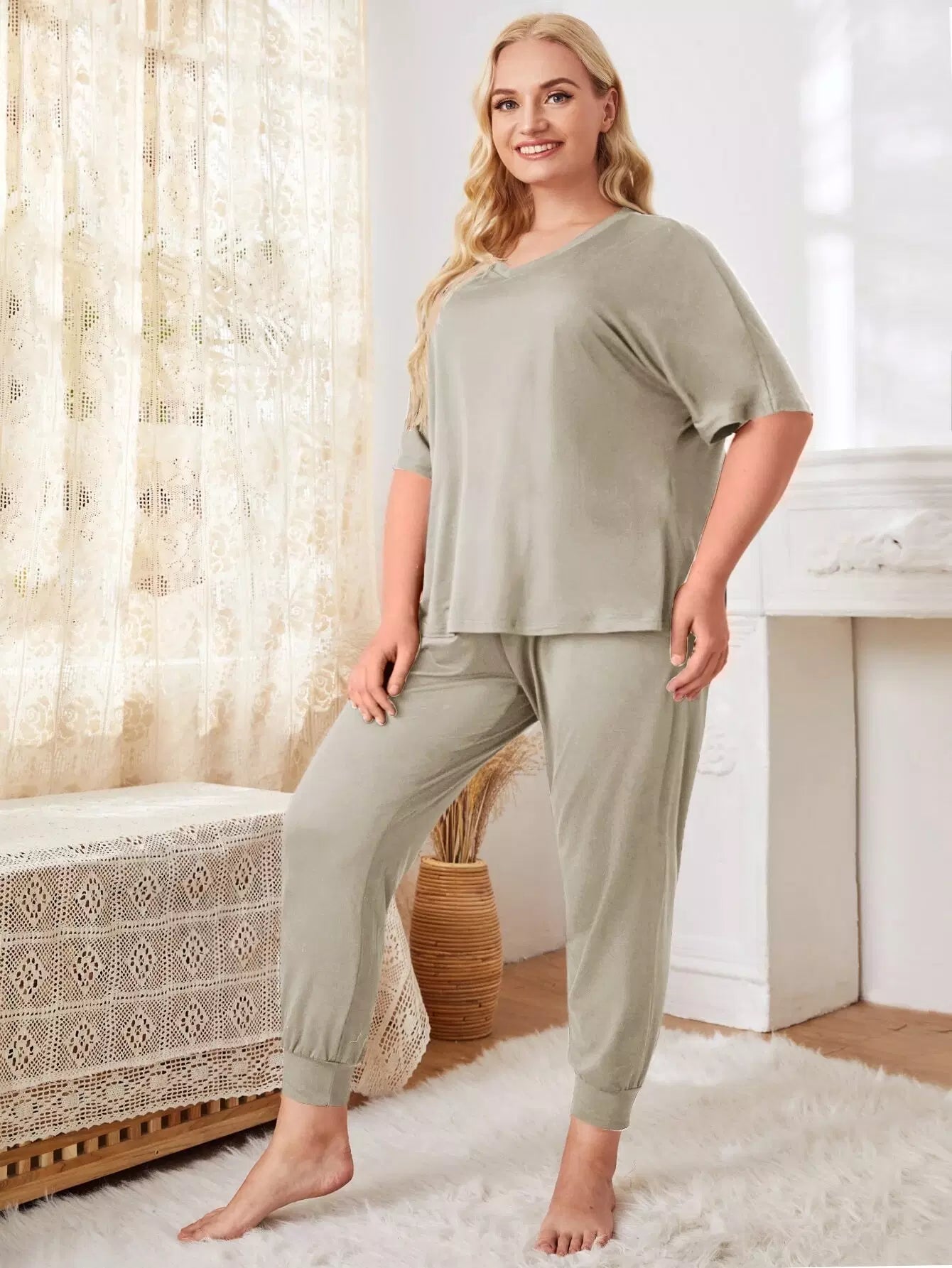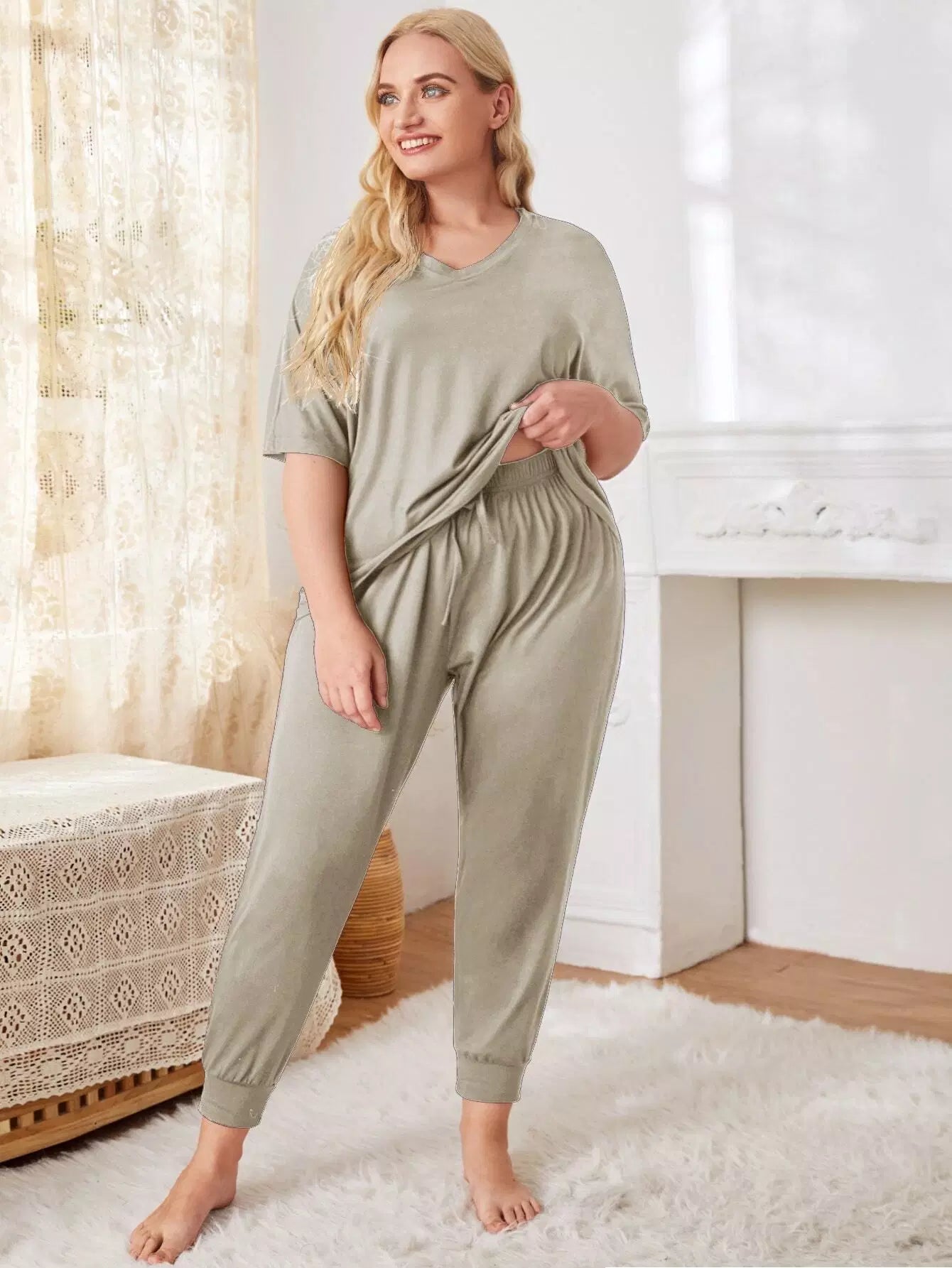 Women - Plus Solid V-neck Knot Detail PJ Set