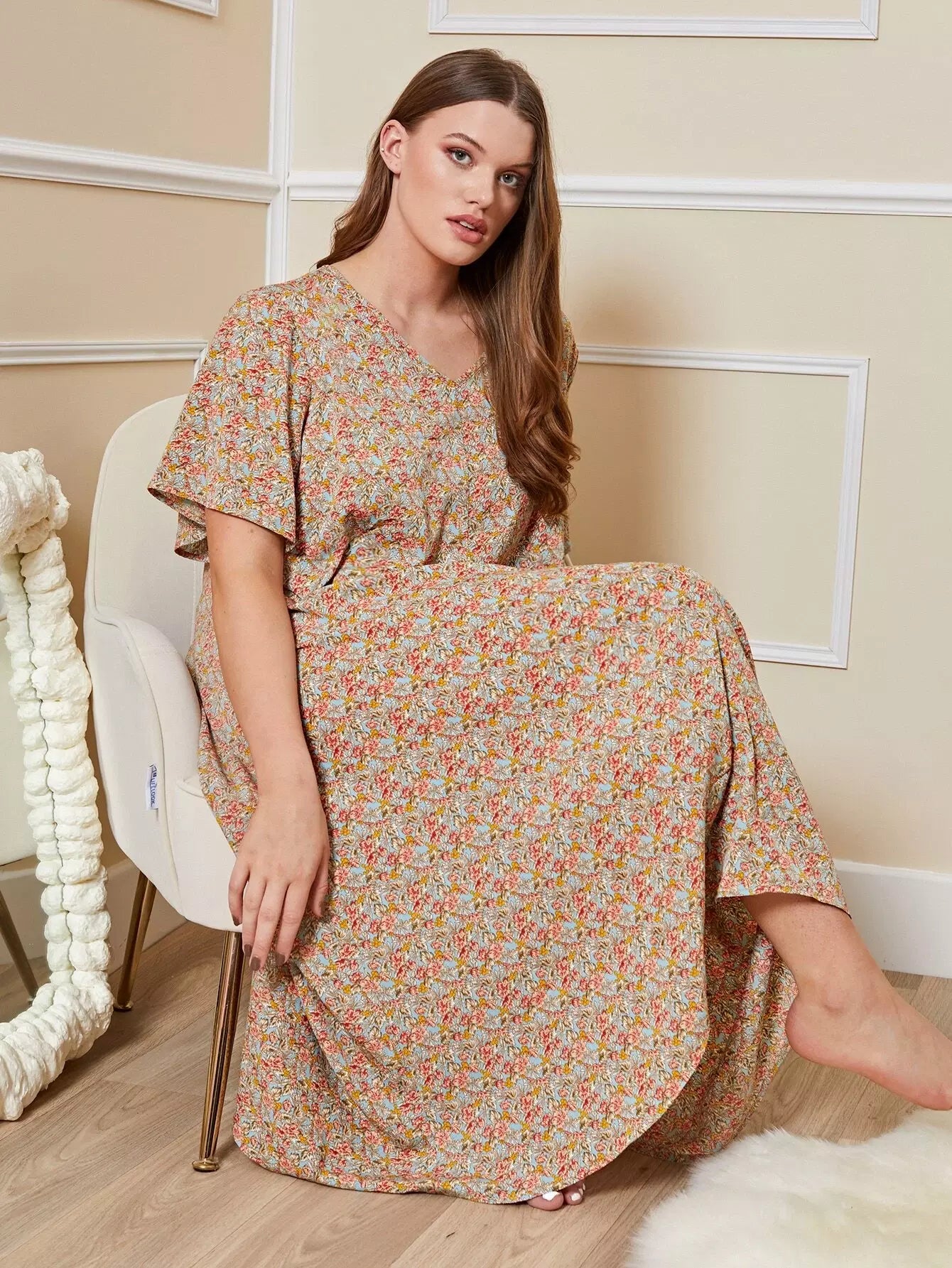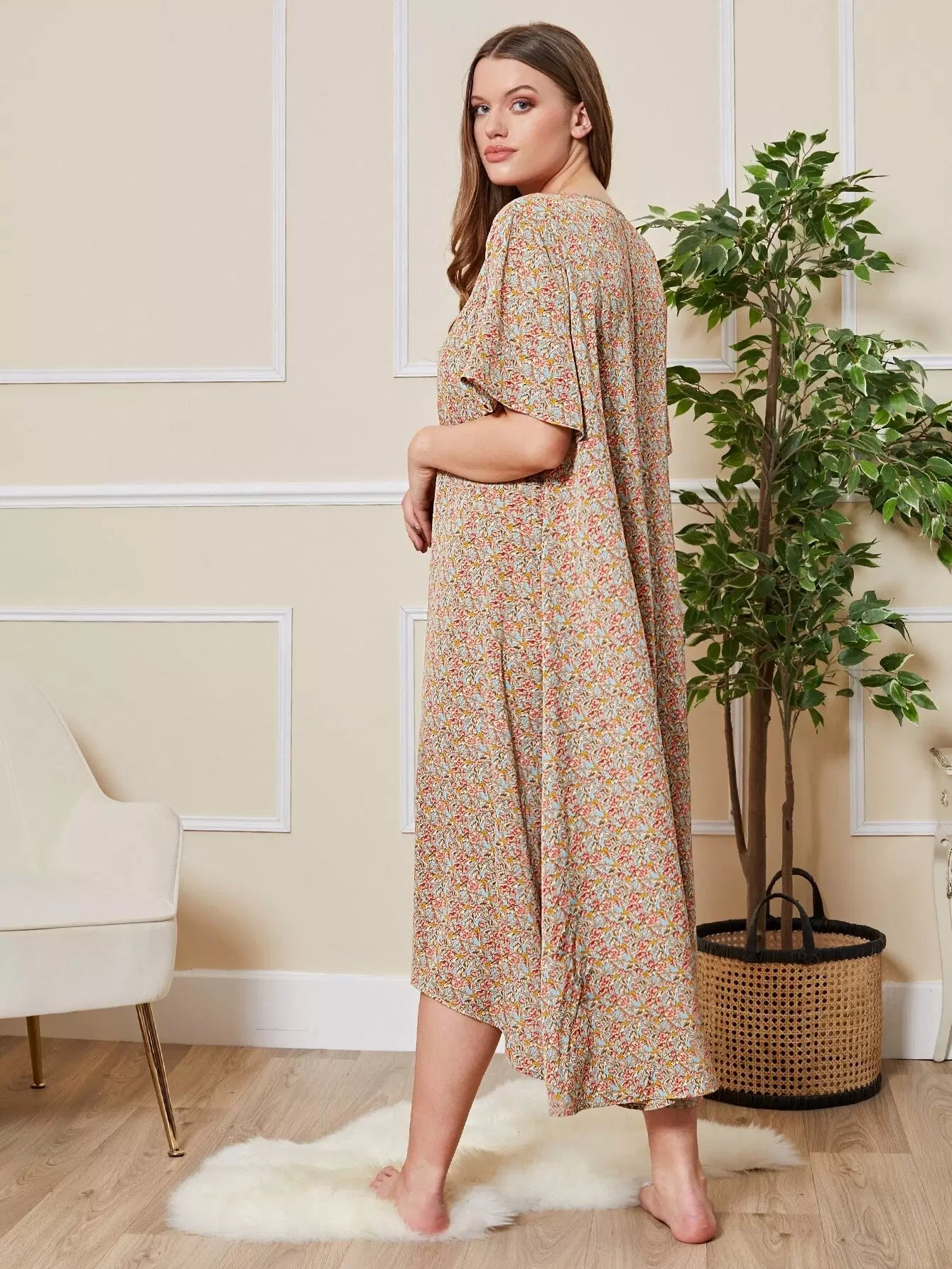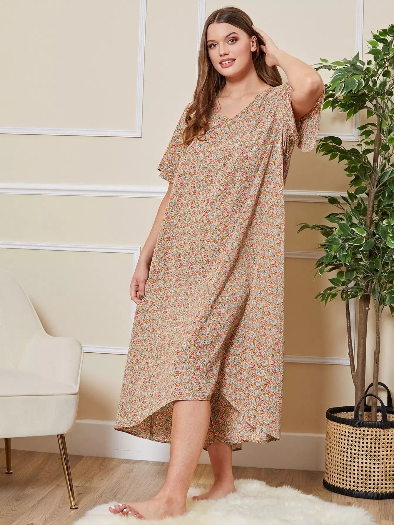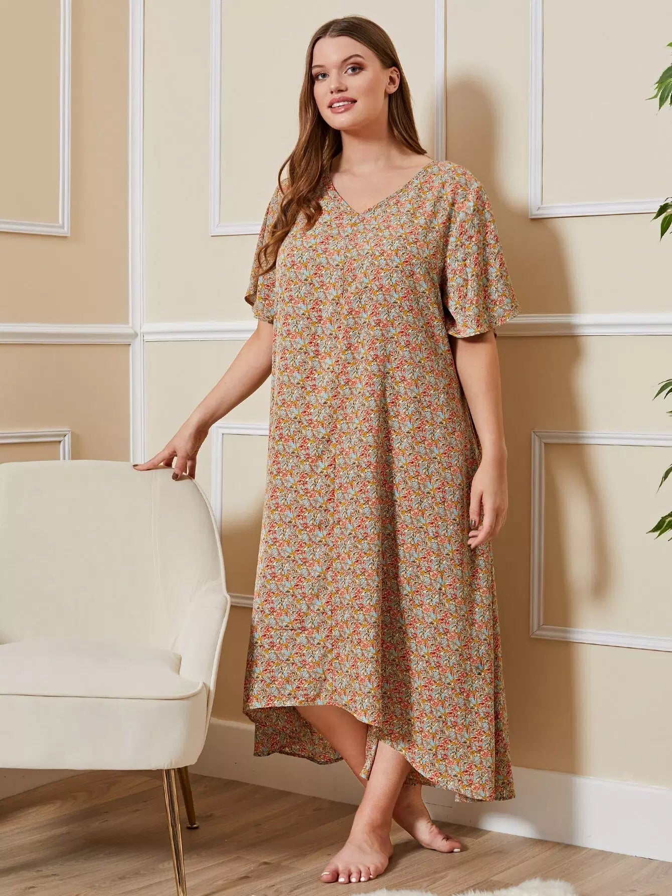 Plus Dip Hem Allover Floral Print Nightdress
