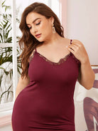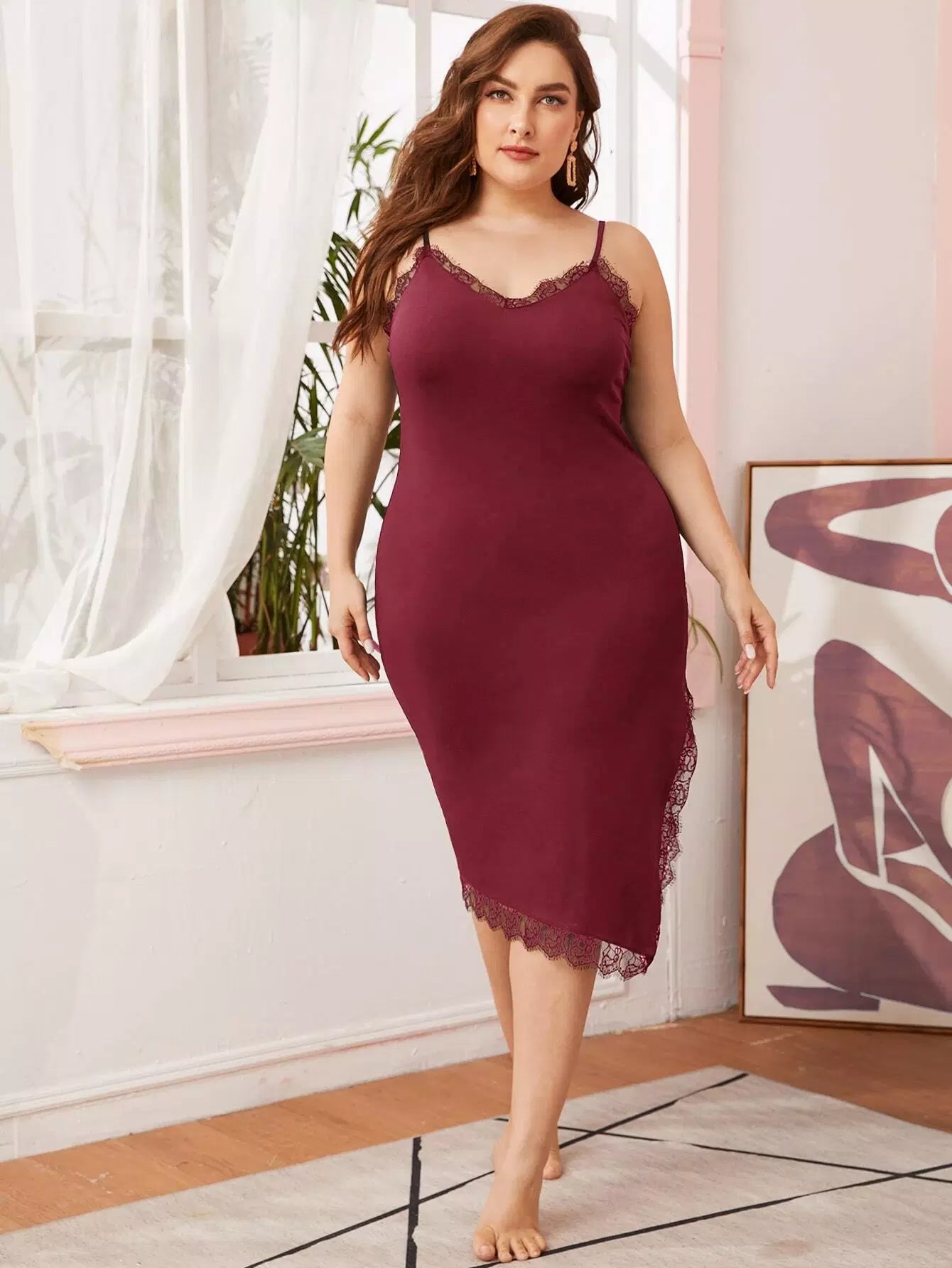 Plus Eyelash Lace Trim Split Thigh Slip Nightdress