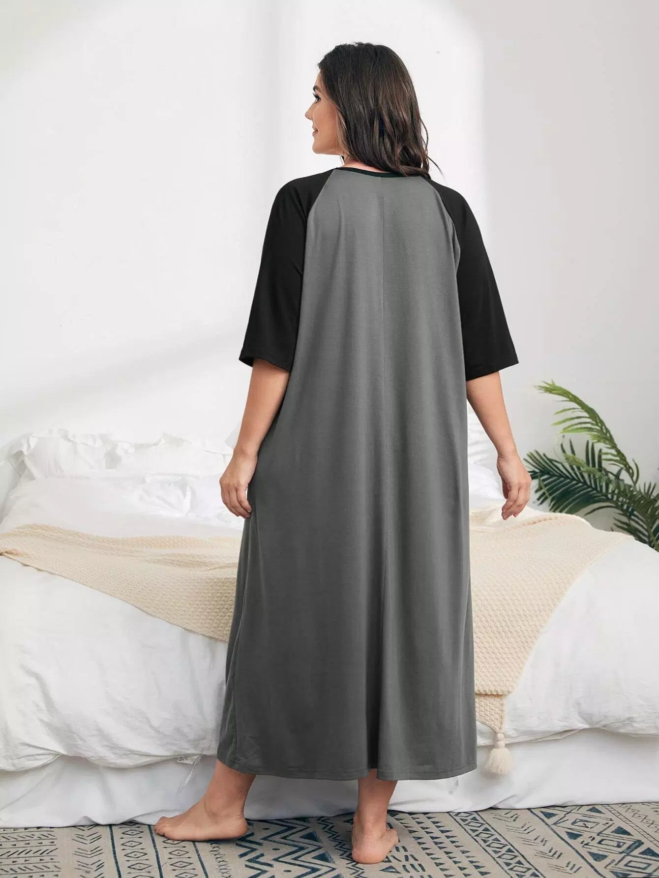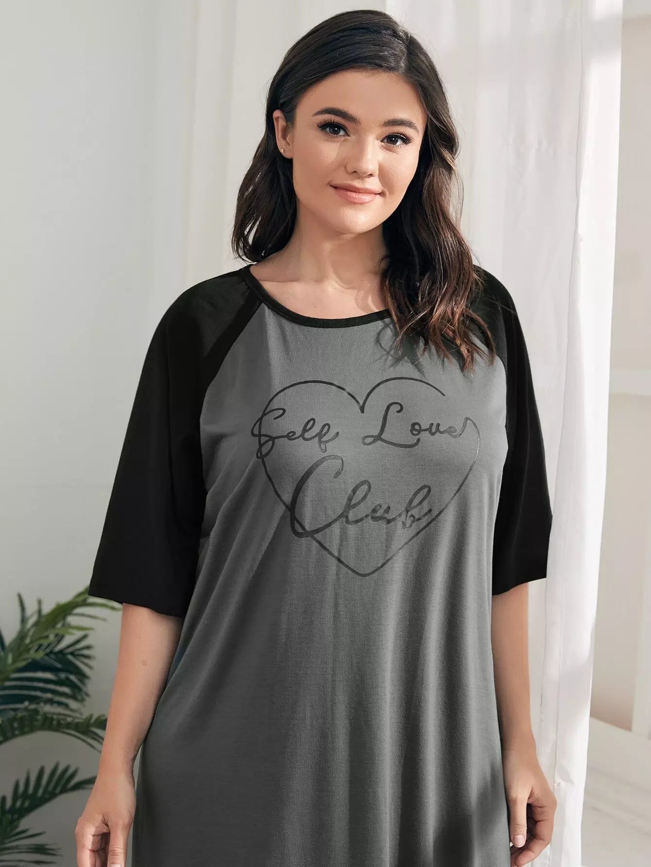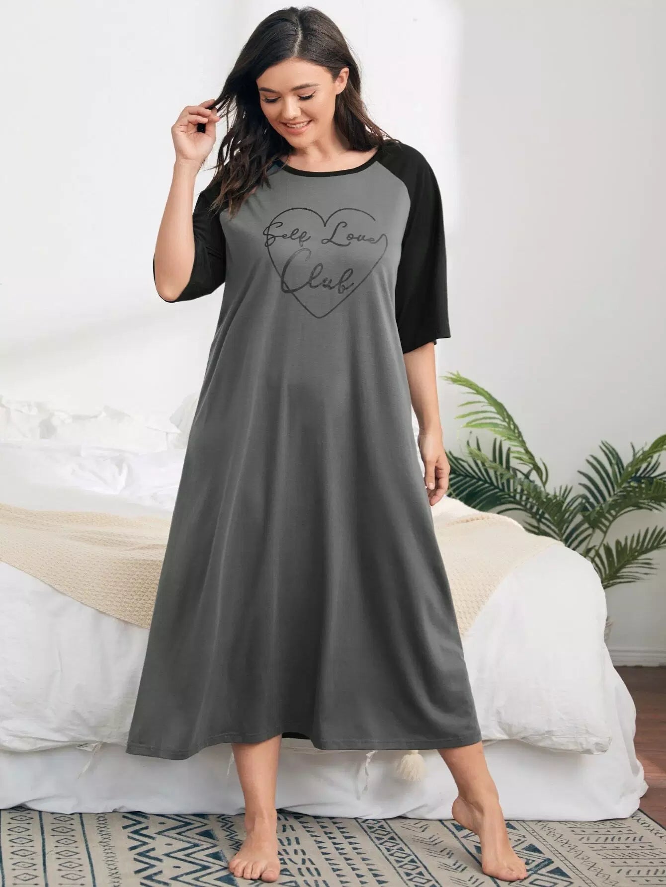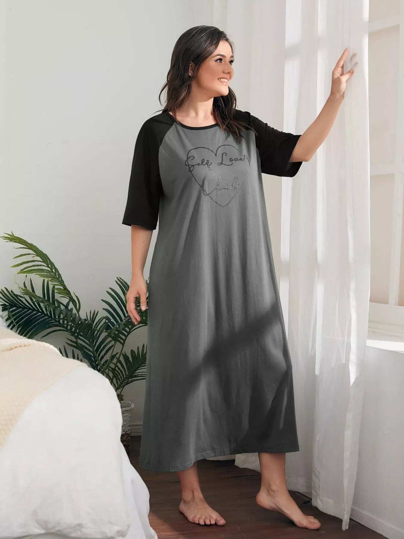 Plus Heart Print Raglan Sleeve Sleep Dress