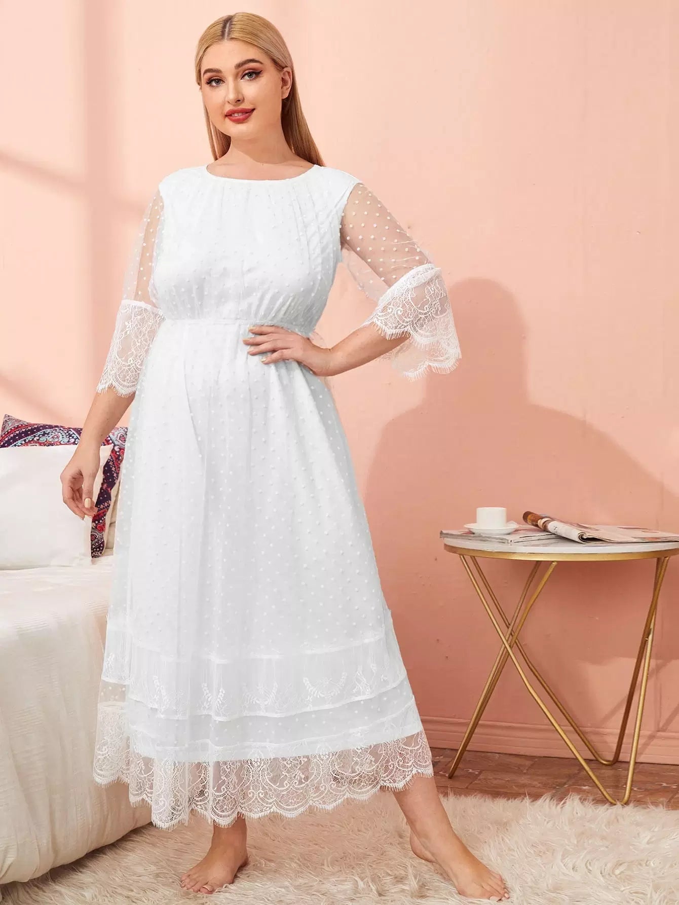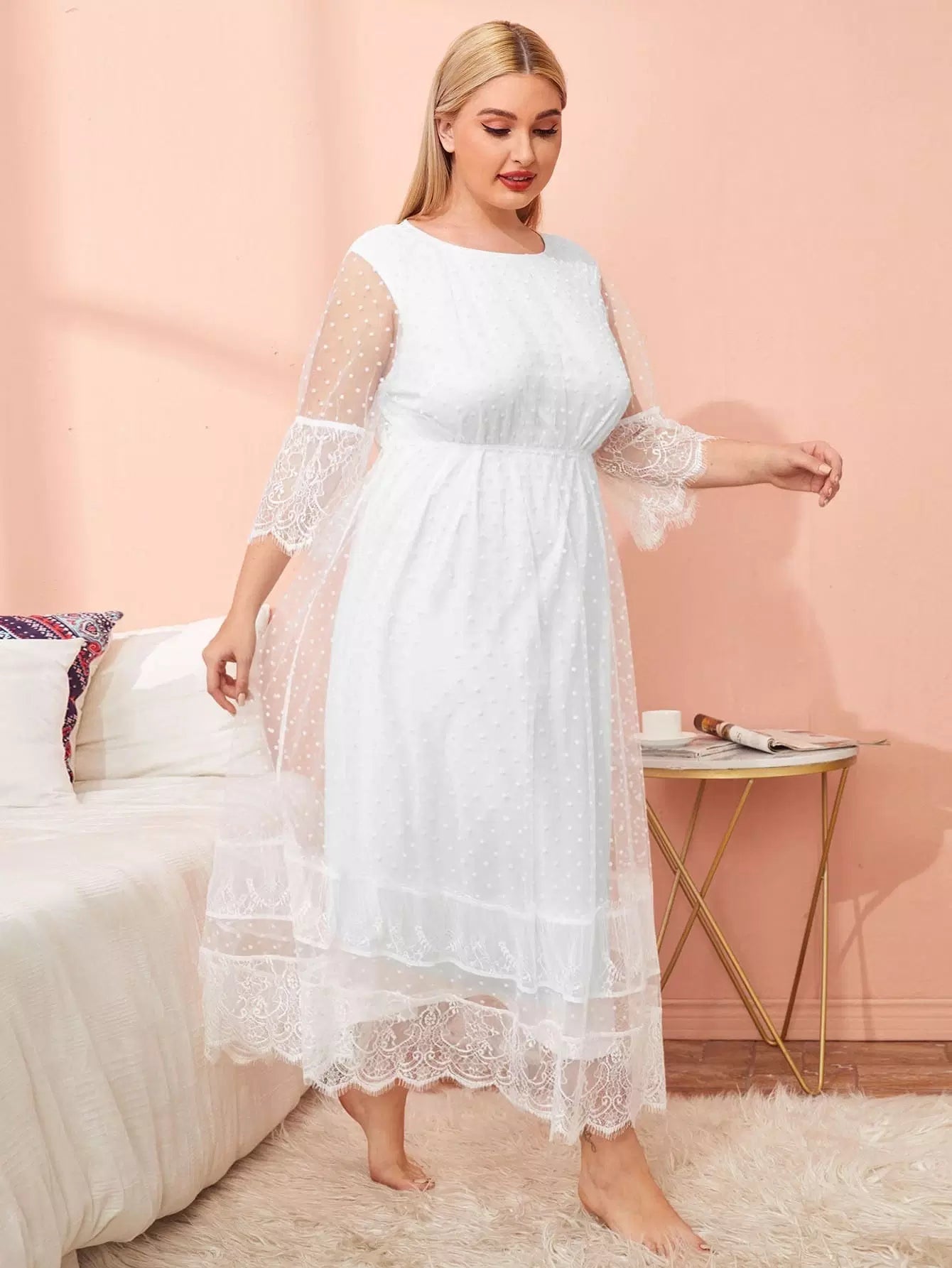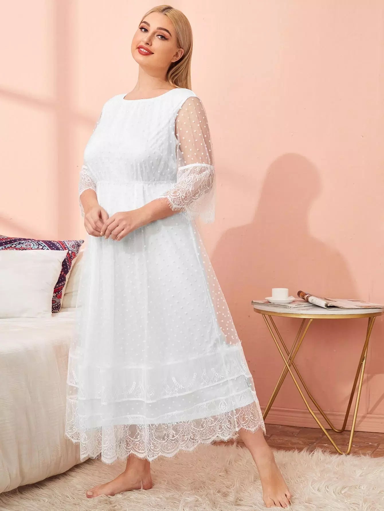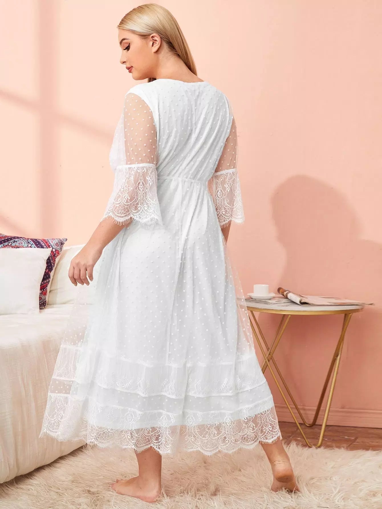 Plus Swiss Dot Eyelash Lace Trim Overlay Nightdress