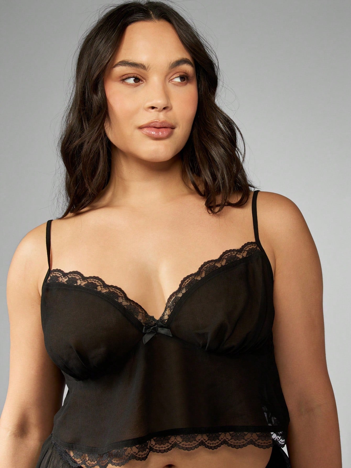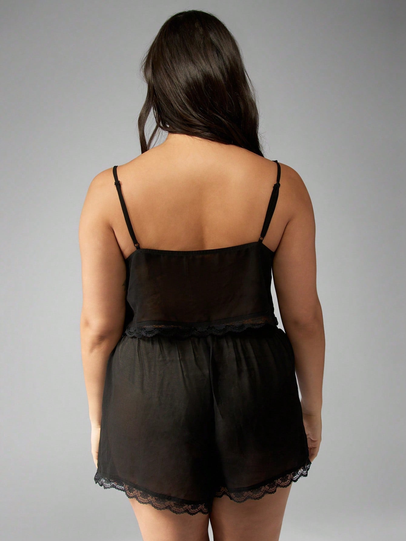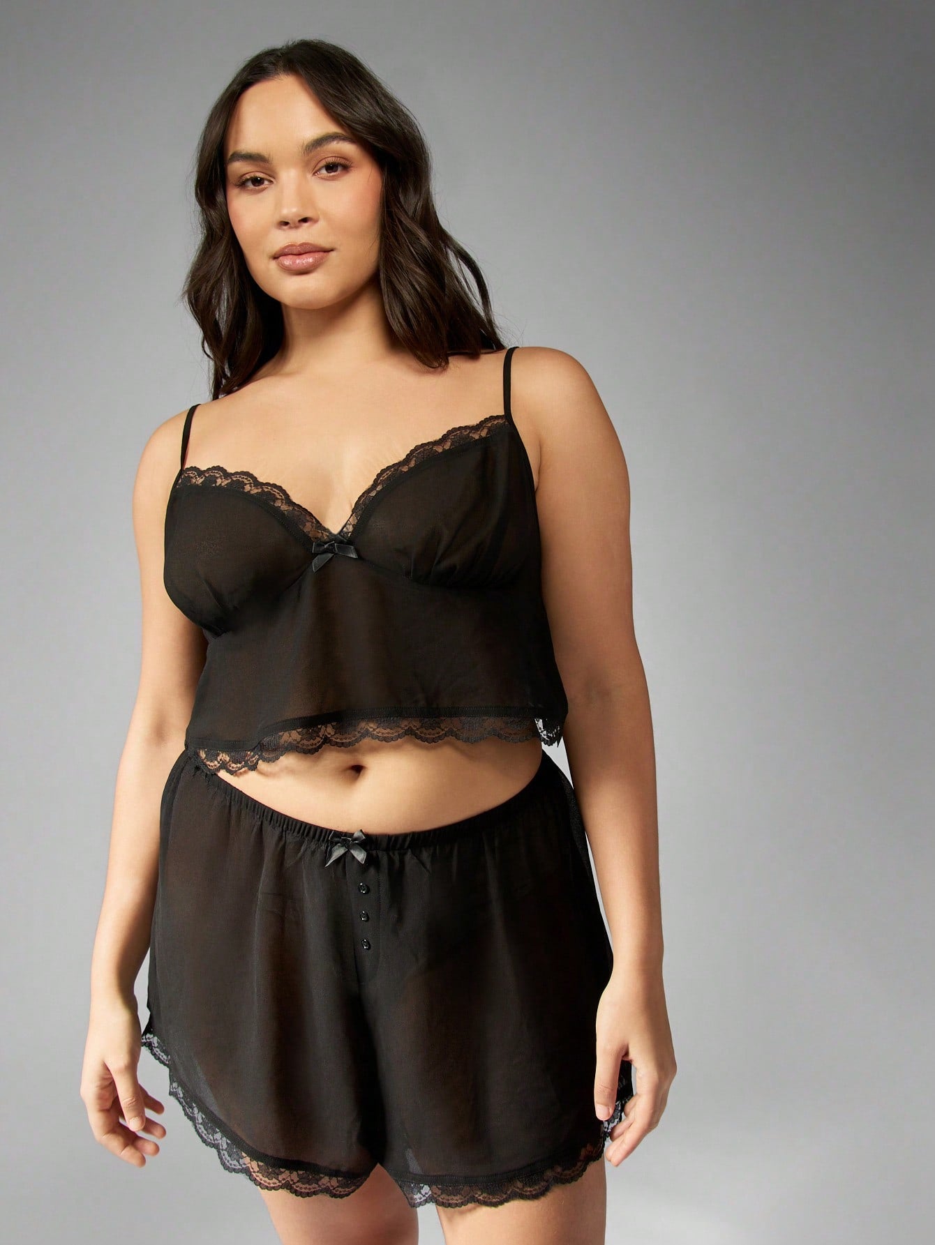 MISSGUIDED MISSGUIDED PLUS Luxury Chiffon Lace Trimmed Camisole Bloomer Co-Ord Set Sleep Loungewear Sleepwear