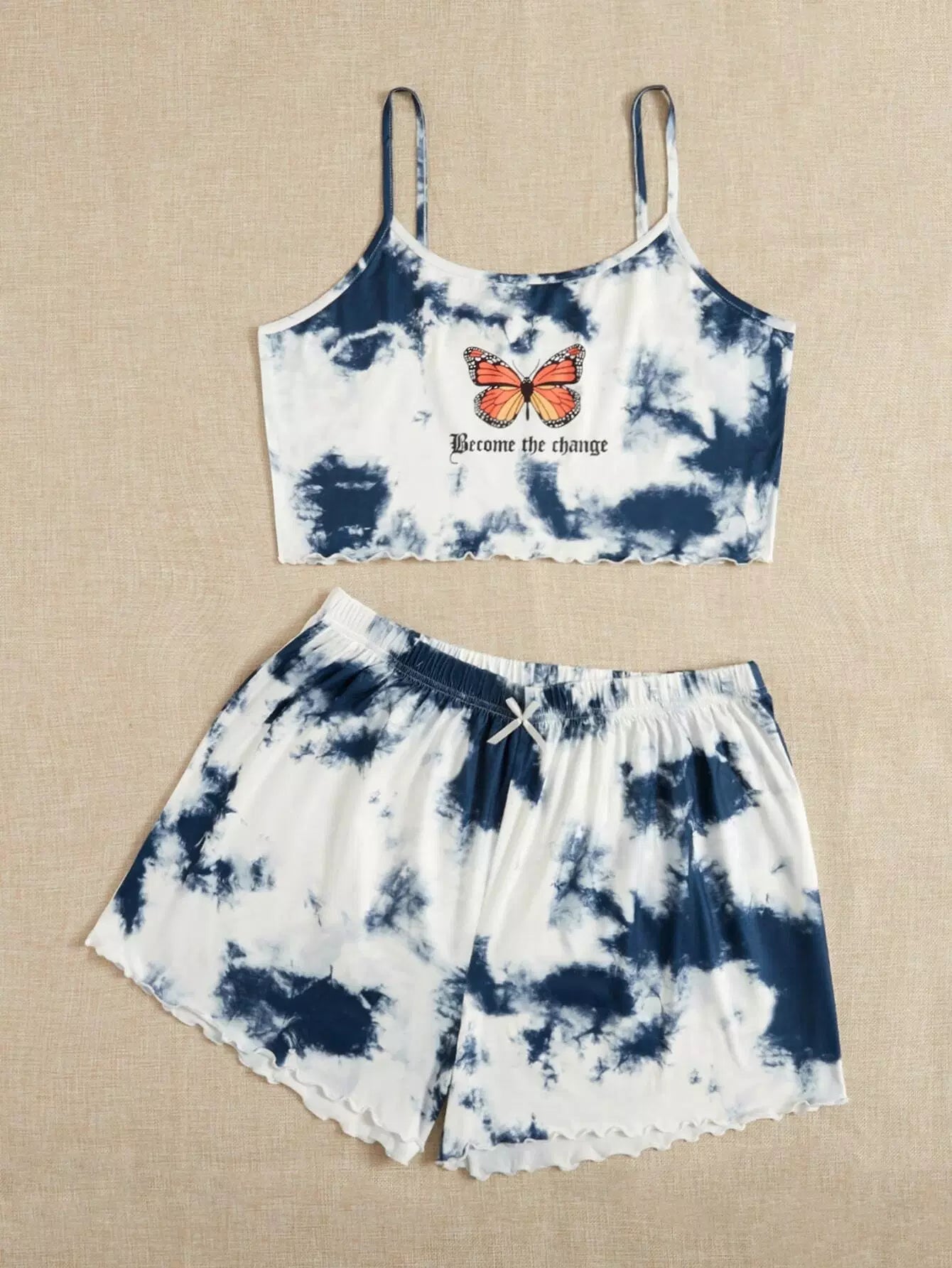 Plus Butterfly Print Lettuce Trim Pajama Set