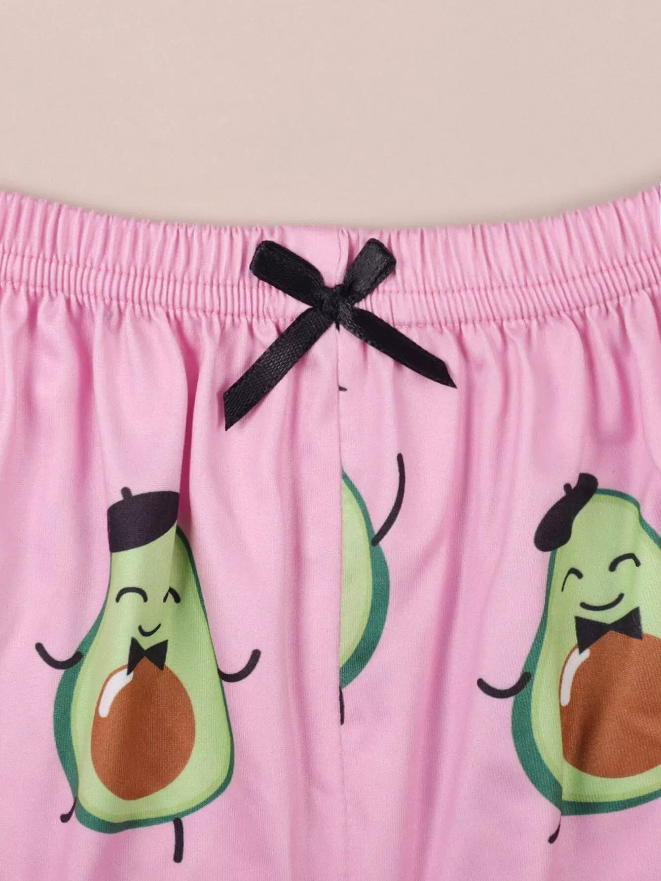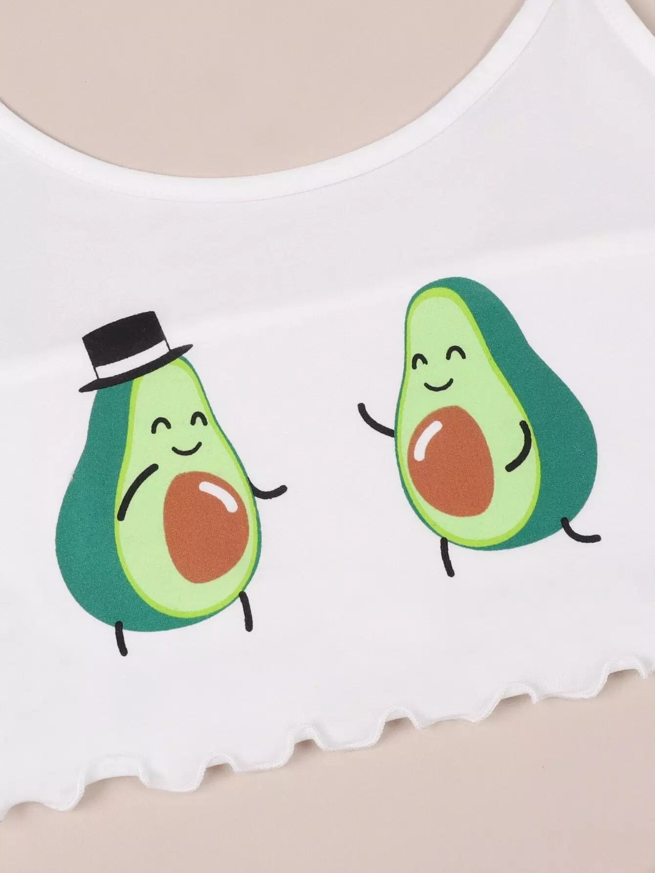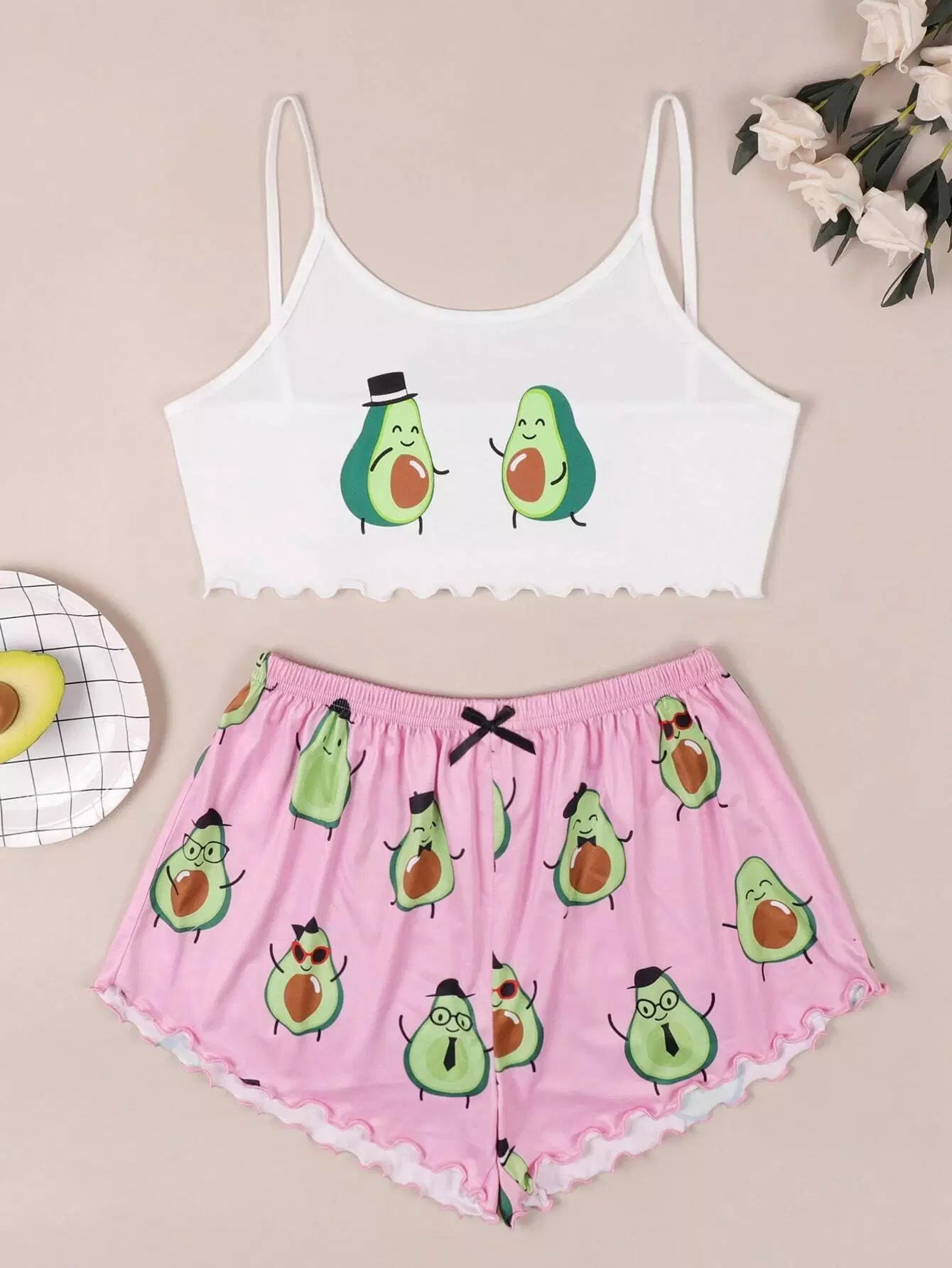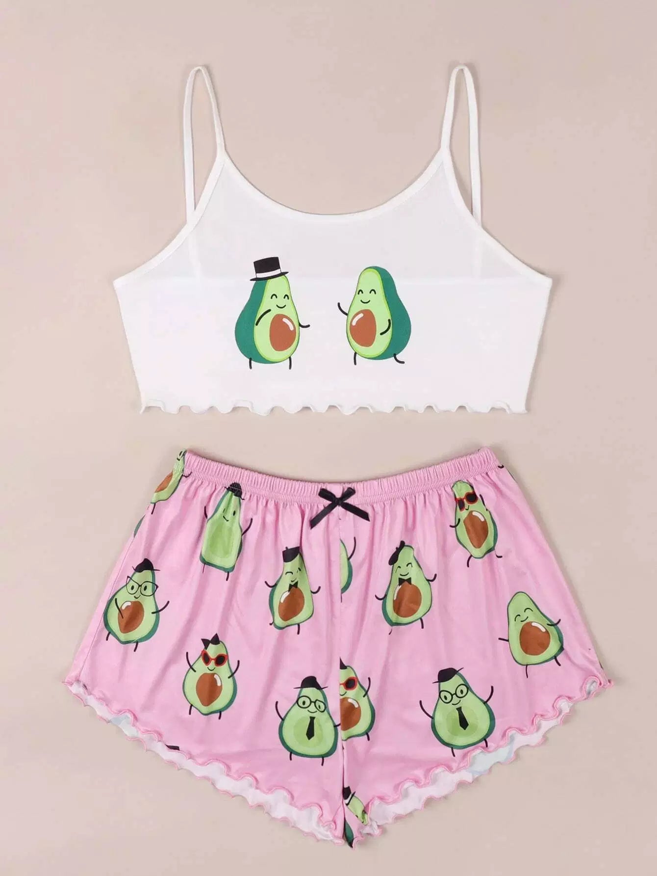 Plus Cartoon Graphic Lettuce Trim Cami PJ Set