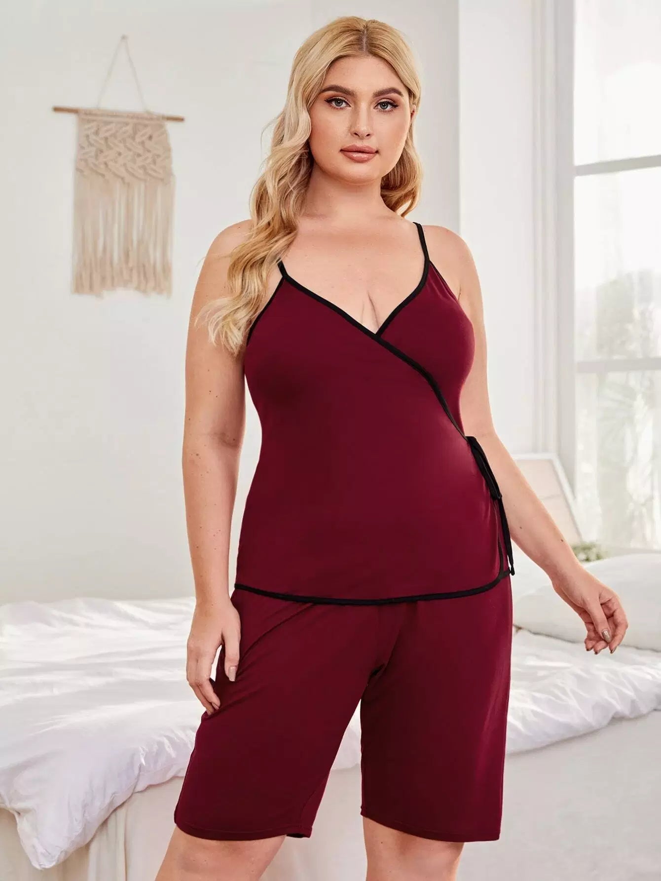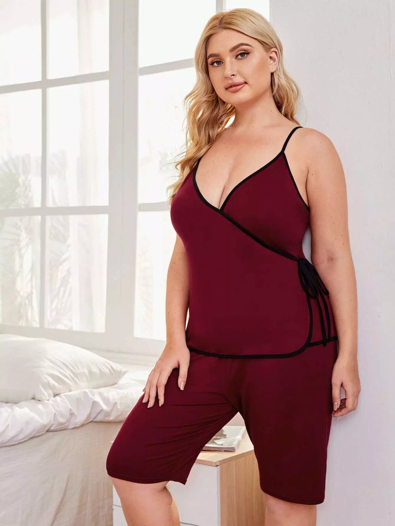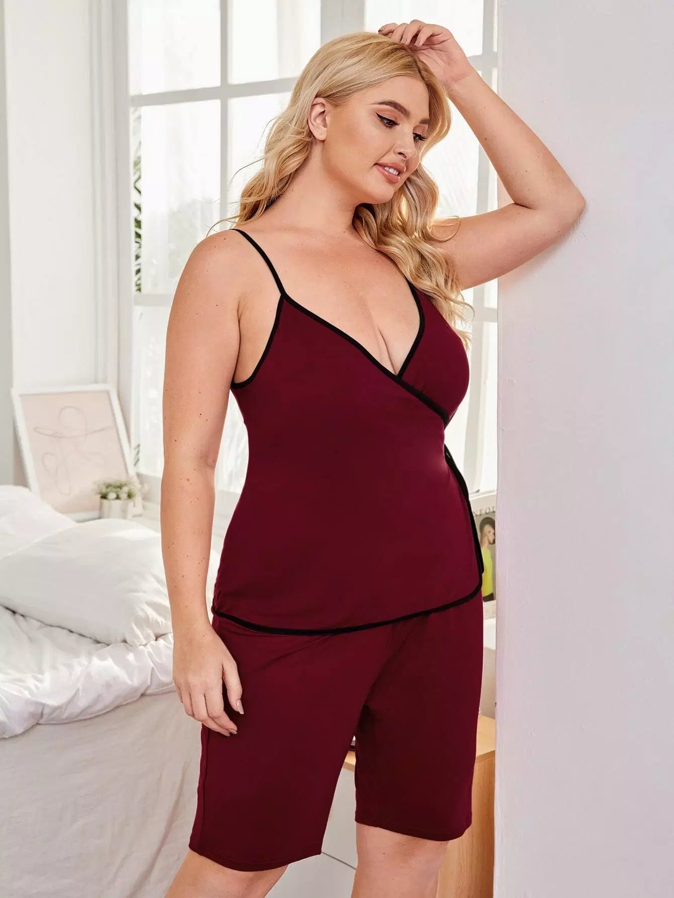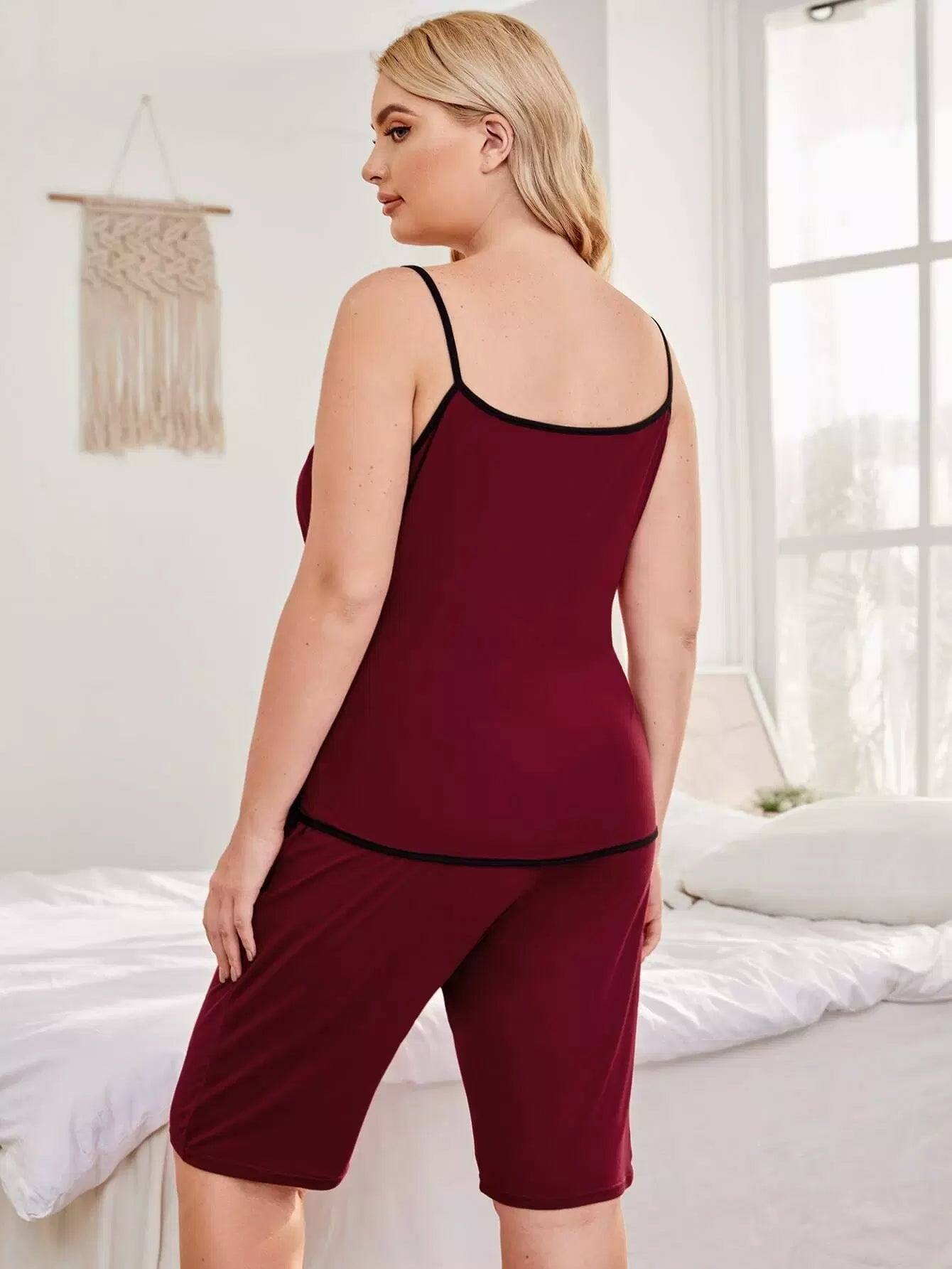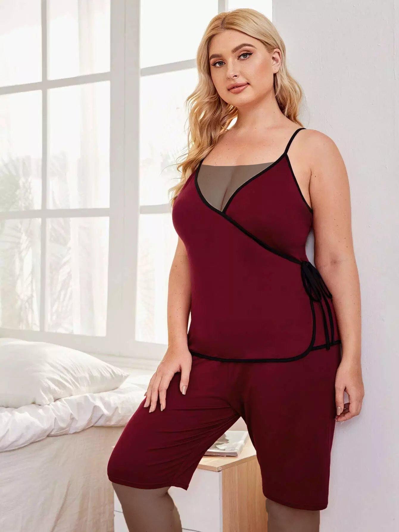 Plus Contrast Binding Cami Pajama Set