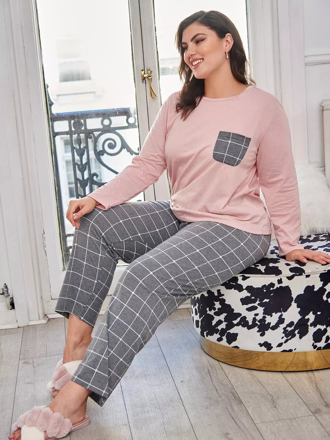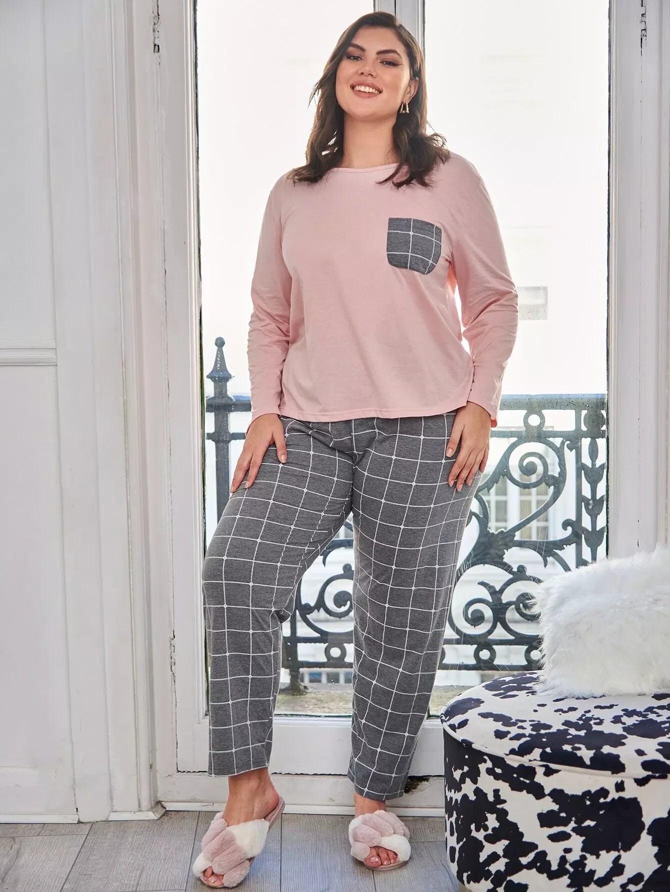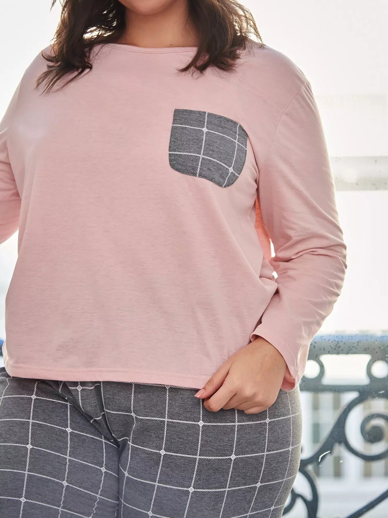 Plus Contrast Grid Pocket Top & Pants