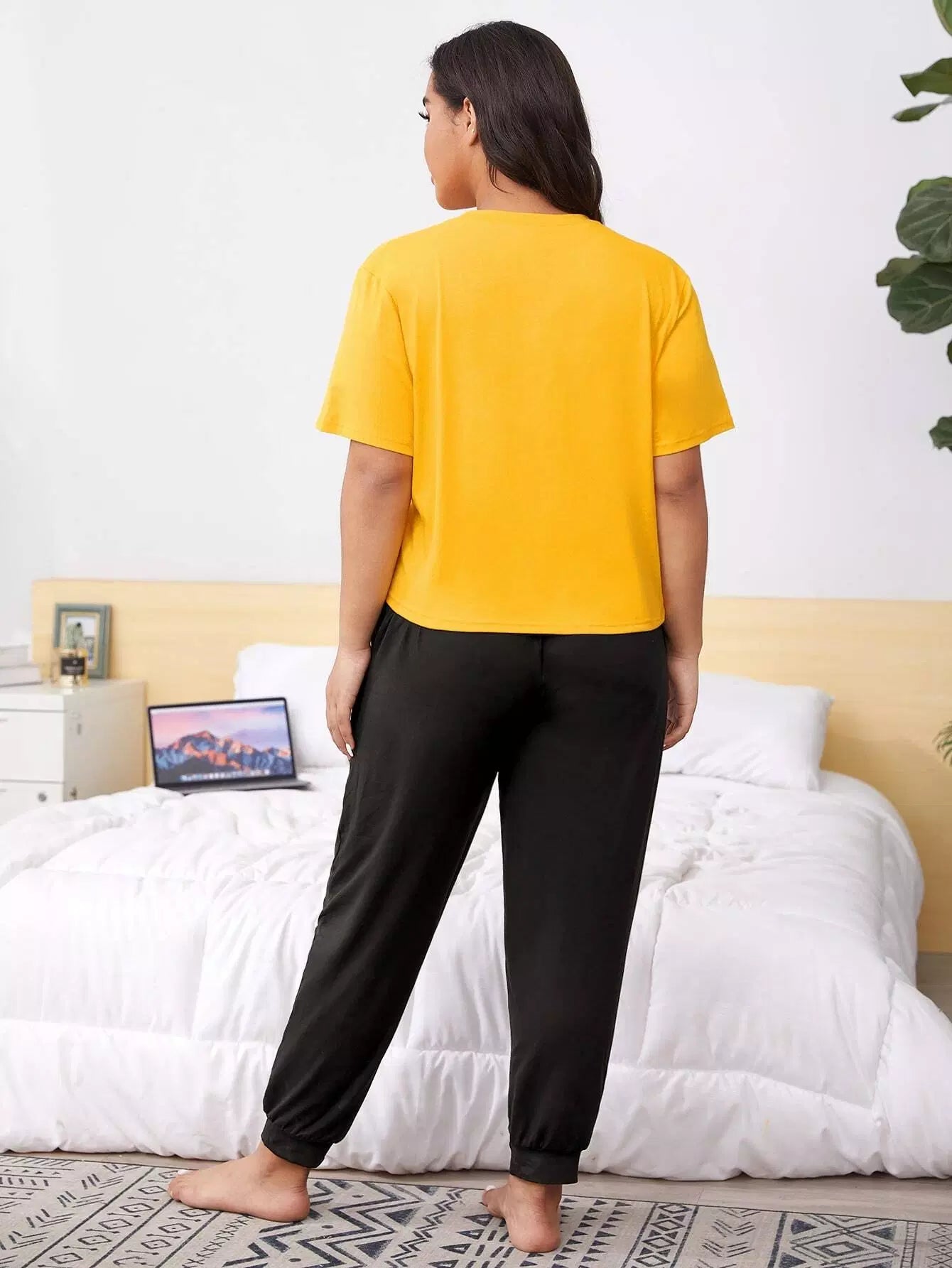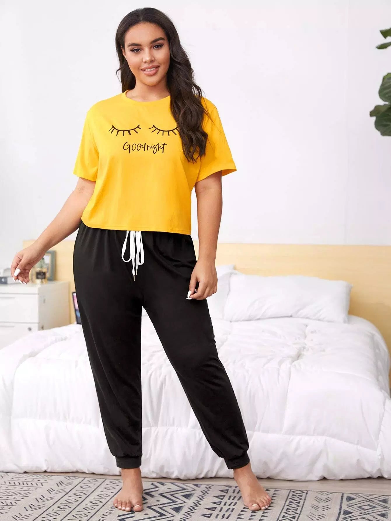 Plus Figure Graphic Tee With Pants PJ Set