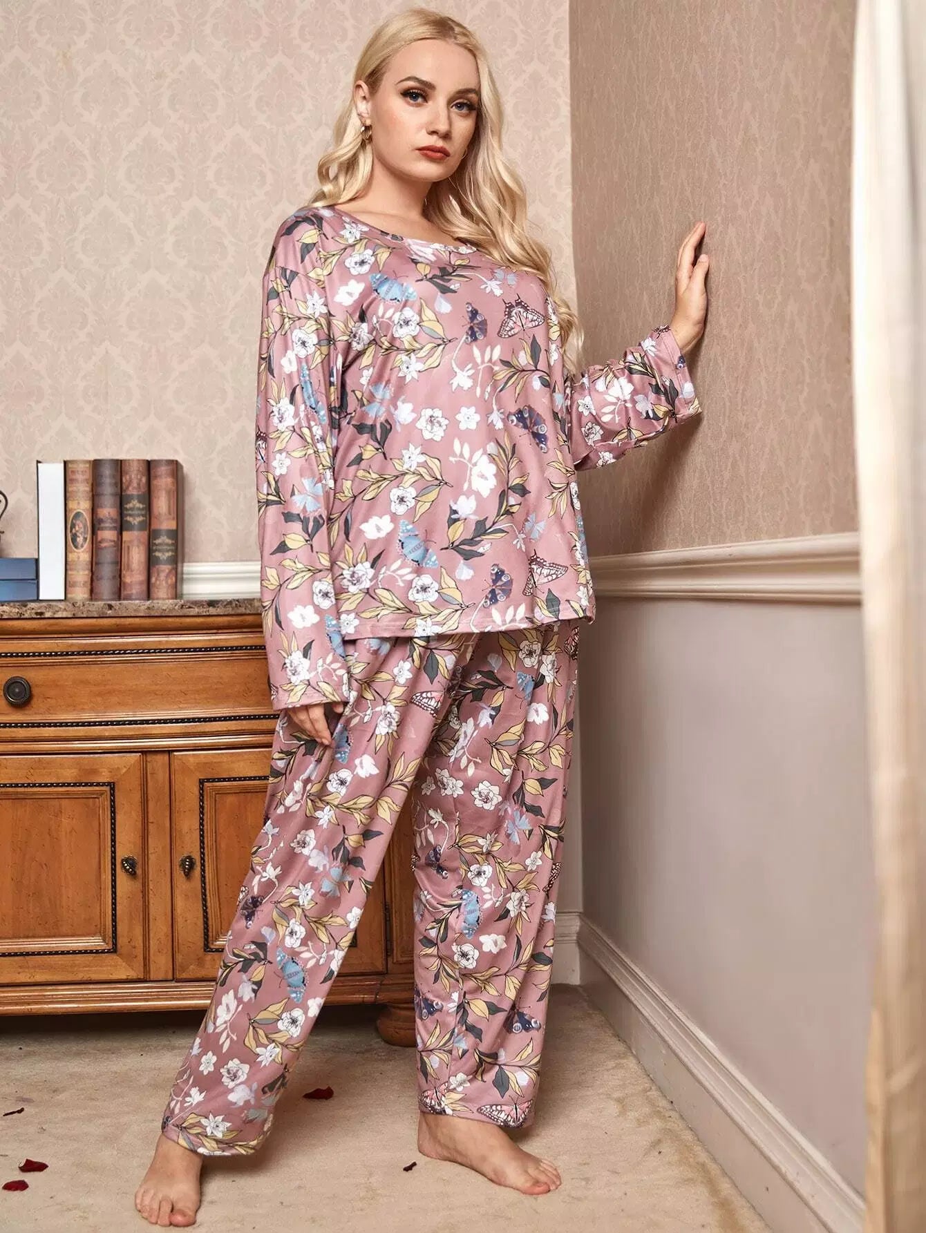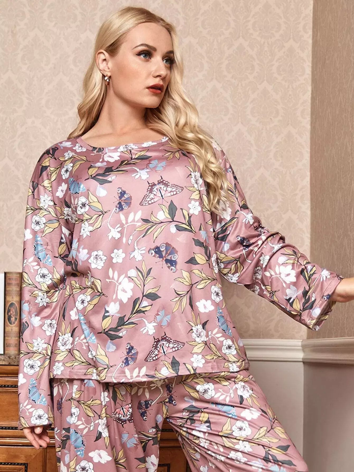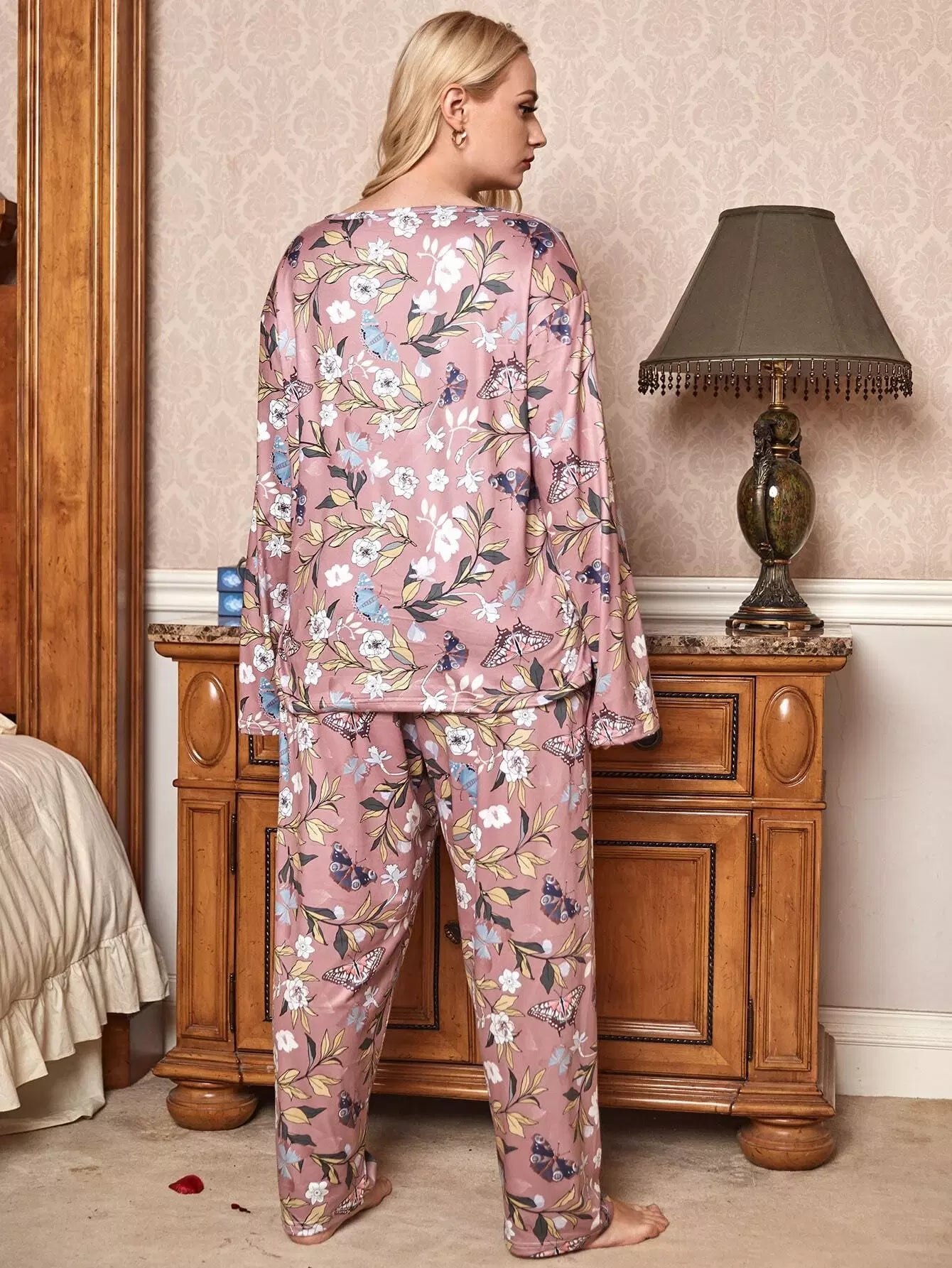 Plus Floral & Butterfly Print Pajama Set