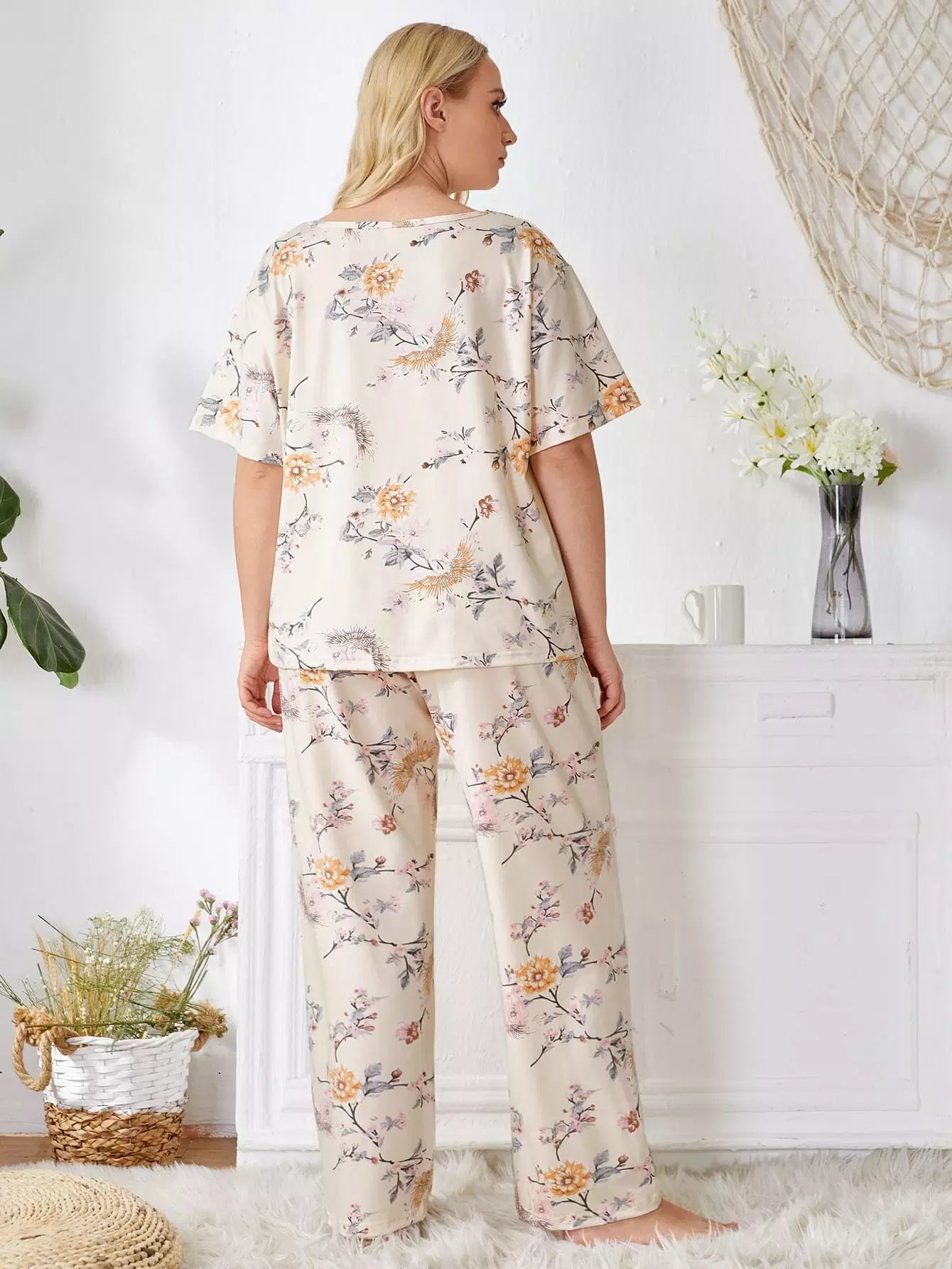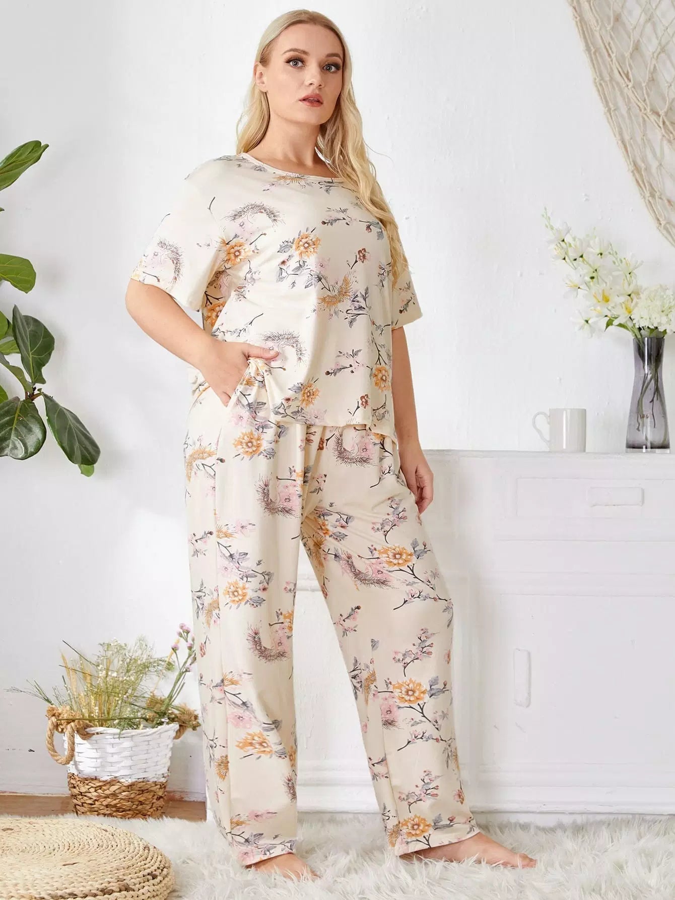 Plus Floral Print Tee & Pants PJ Set
