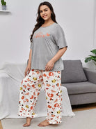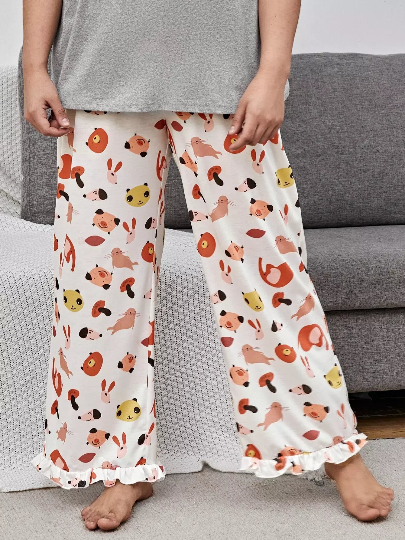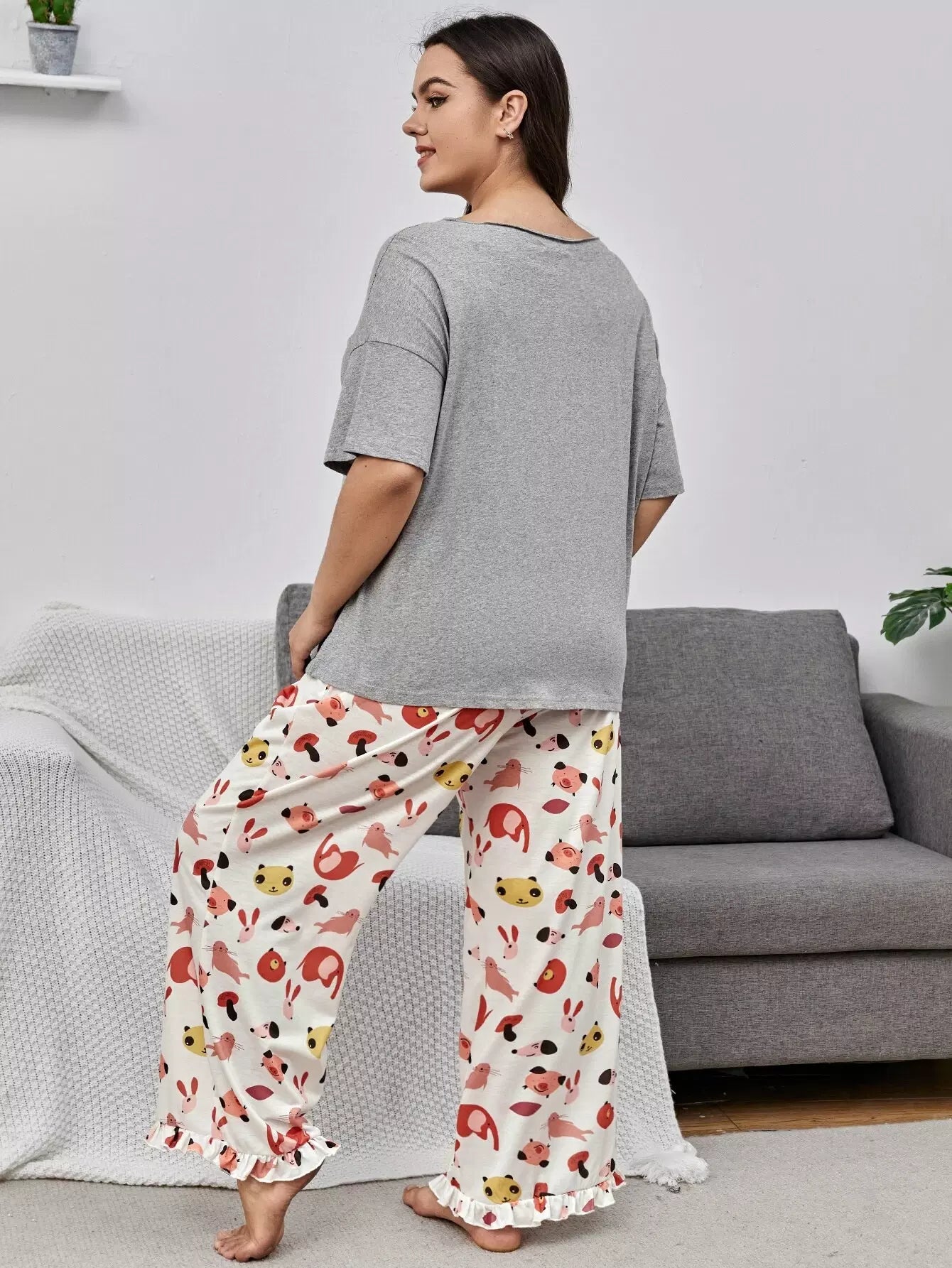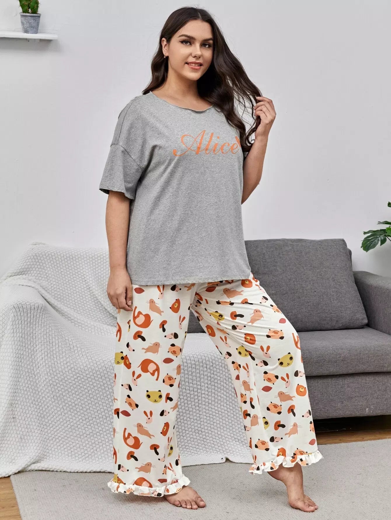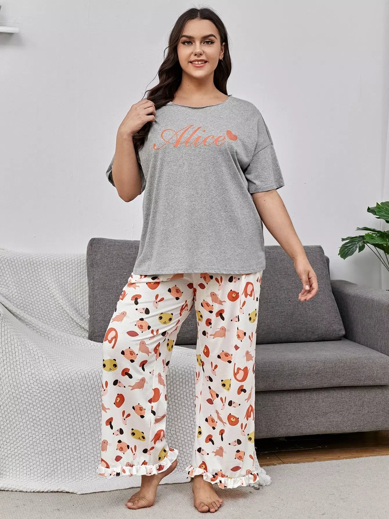 Plus Heart & Letter Graphic Tee And Ruffle Hem Pants PJ Set