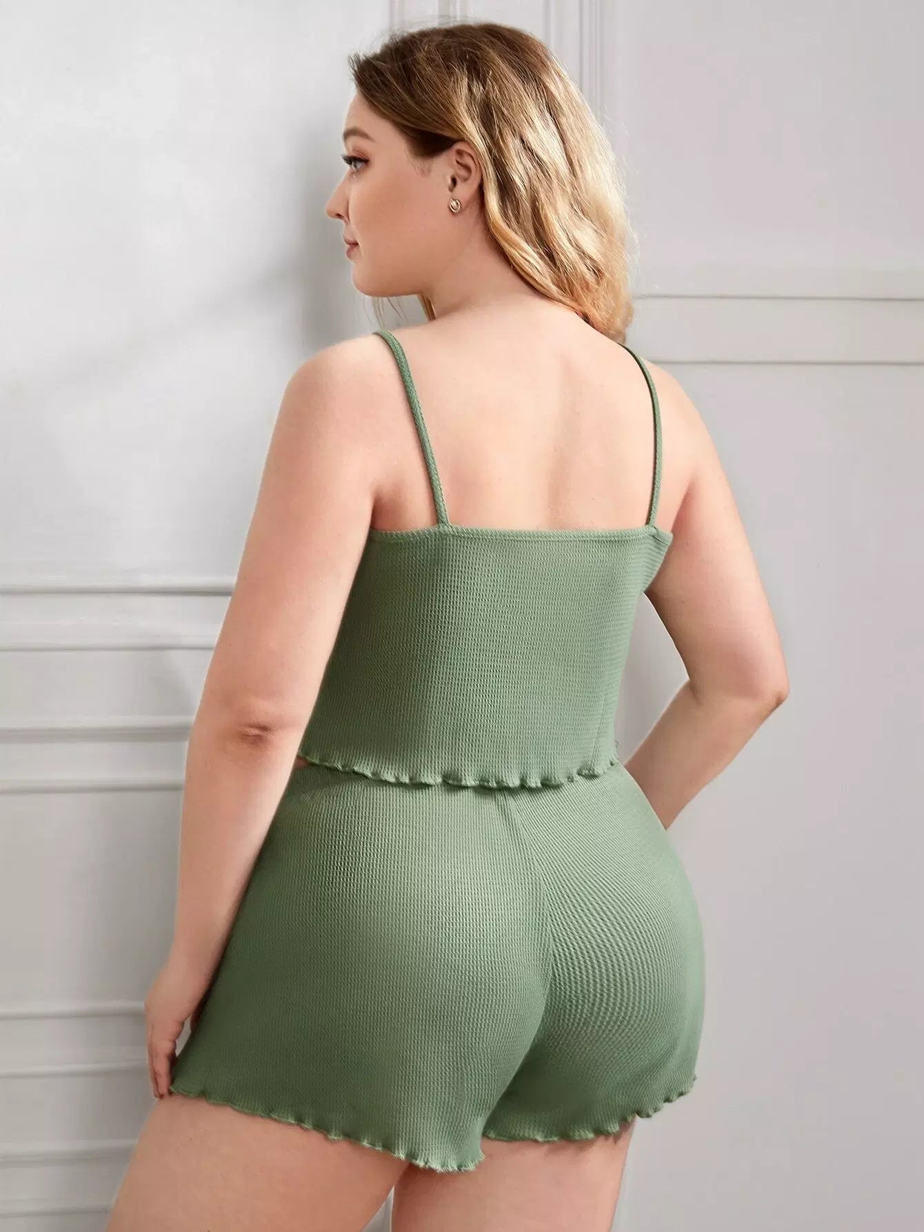 Plus Knot Front Lettuce Trim Cami Top & Shorts PJ Set