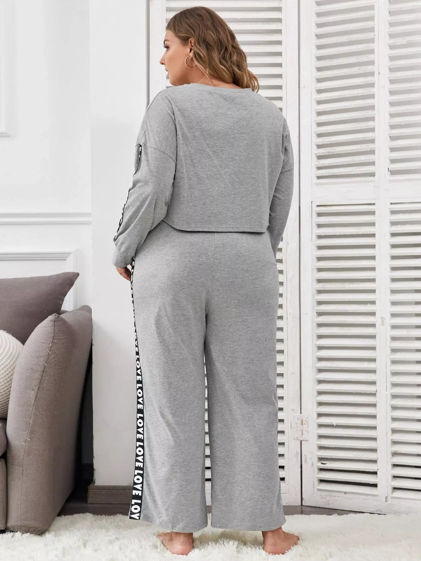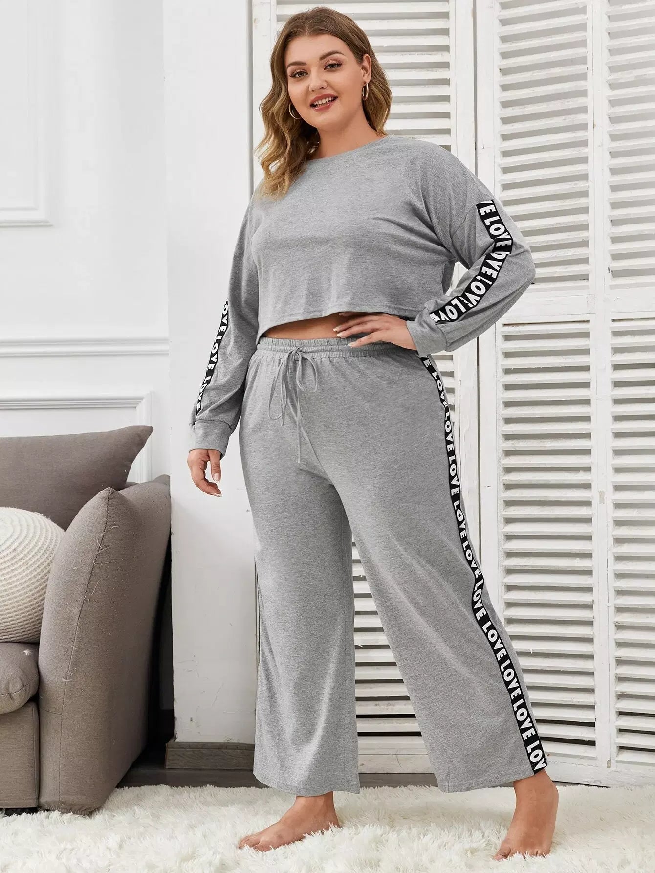 Plus Letter Graphic Crop Top & Drawstring Pants Pajama Set