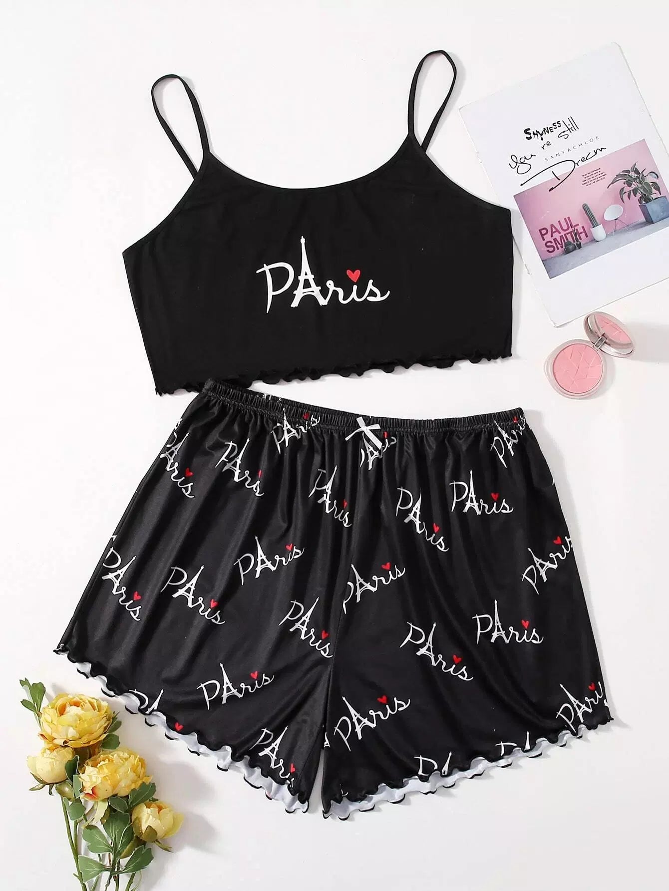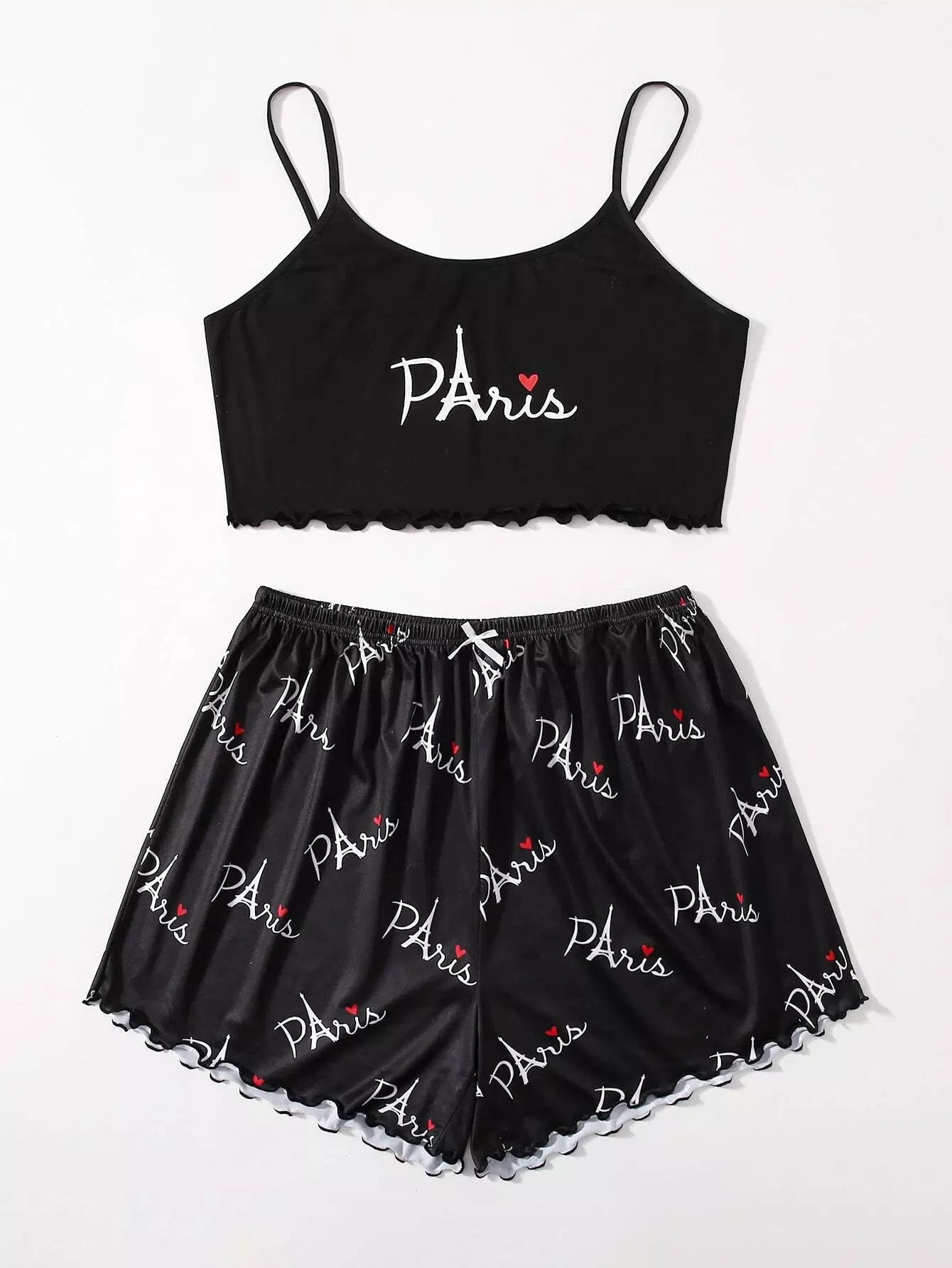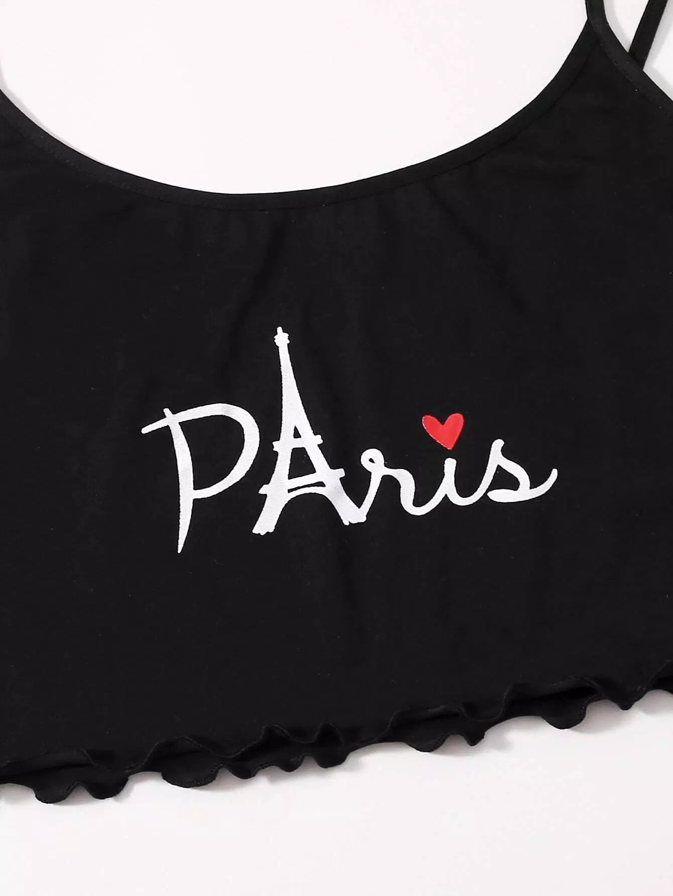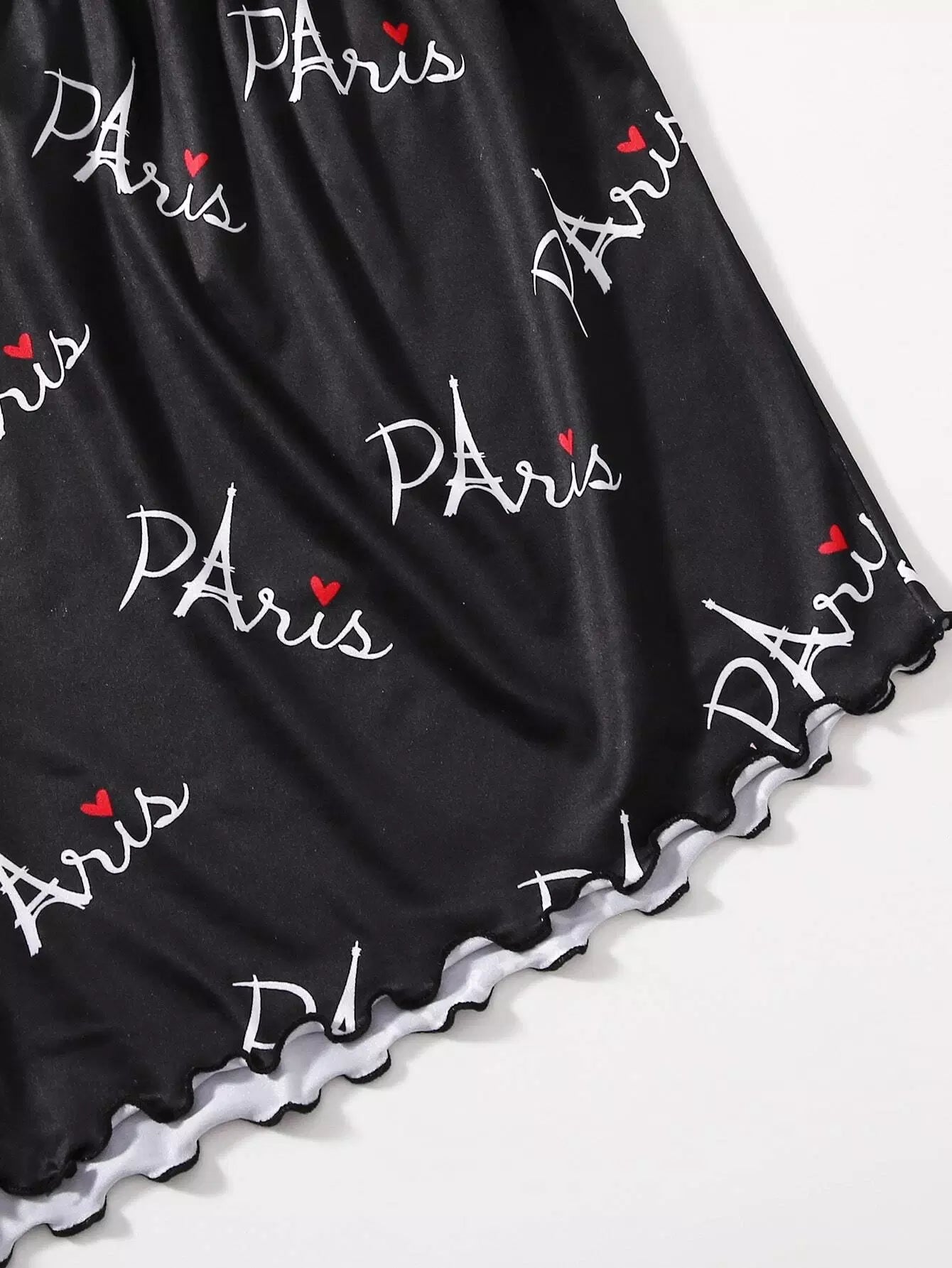 Plus Letter & Heart Print Lettuce Trim PJ Set