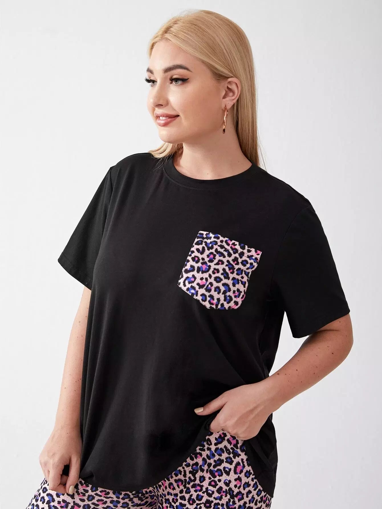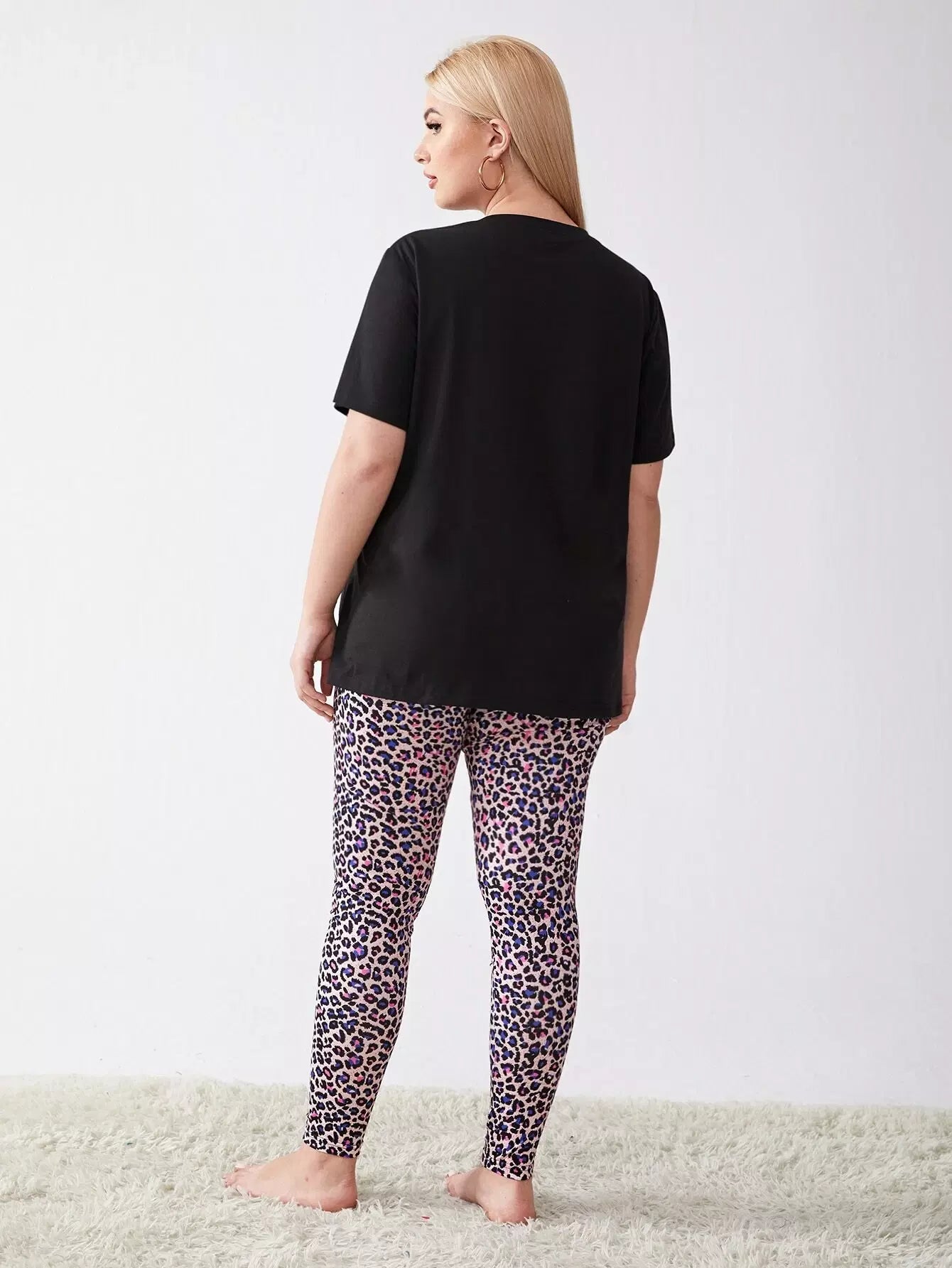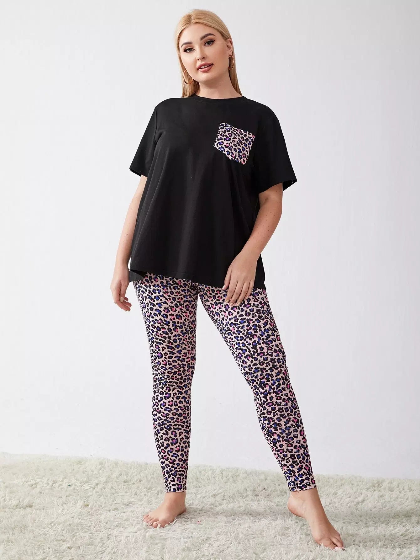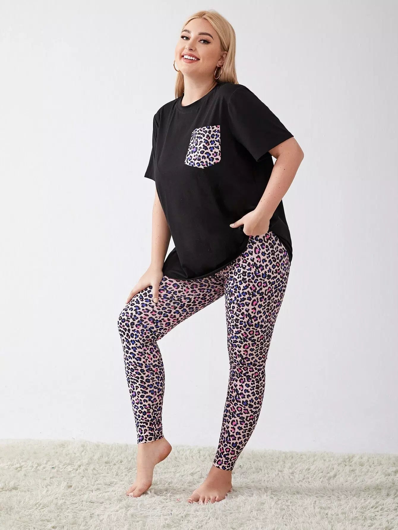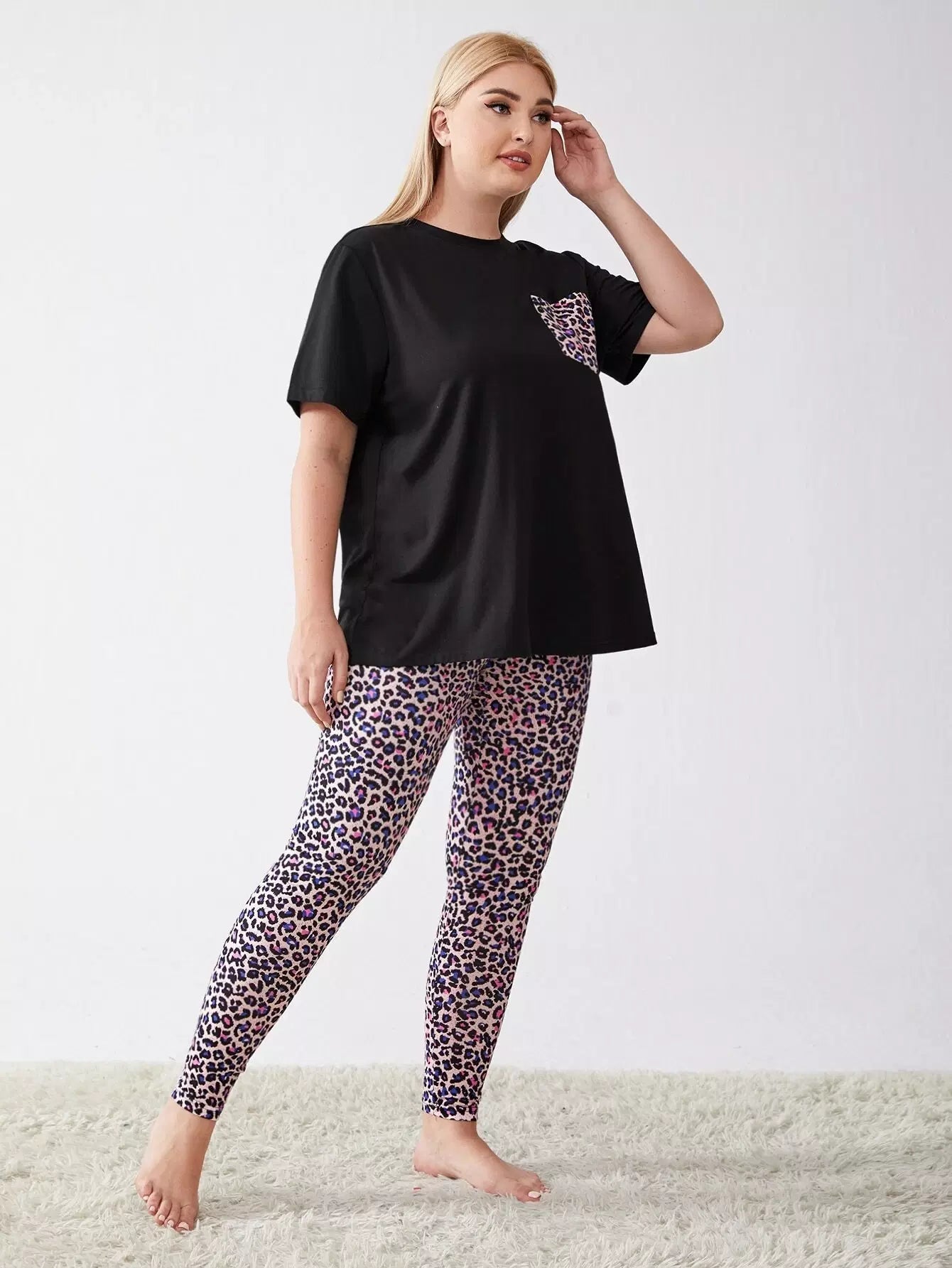 Plus Patch Pocket Tee & All Over Print Leggings PJ Set