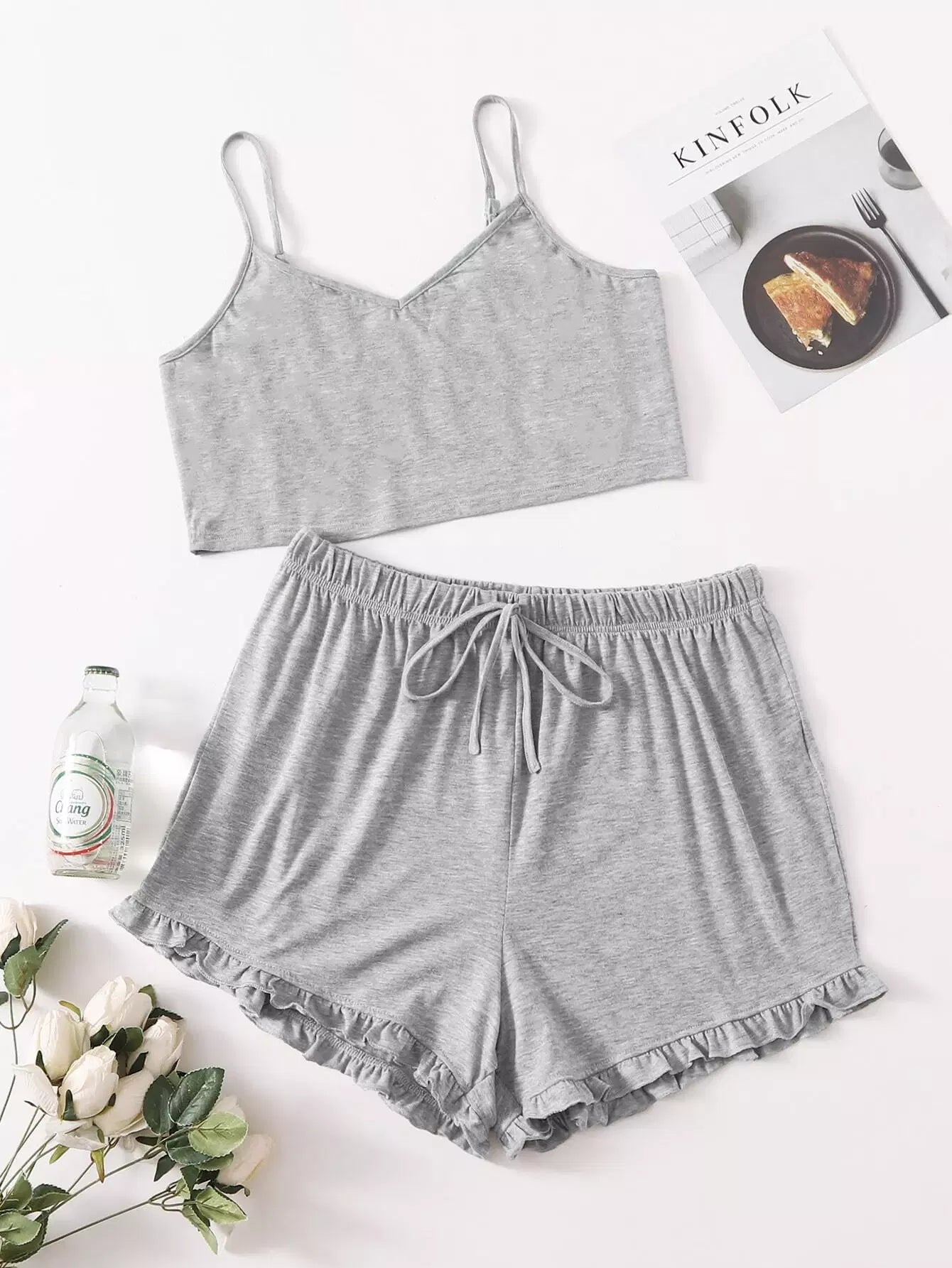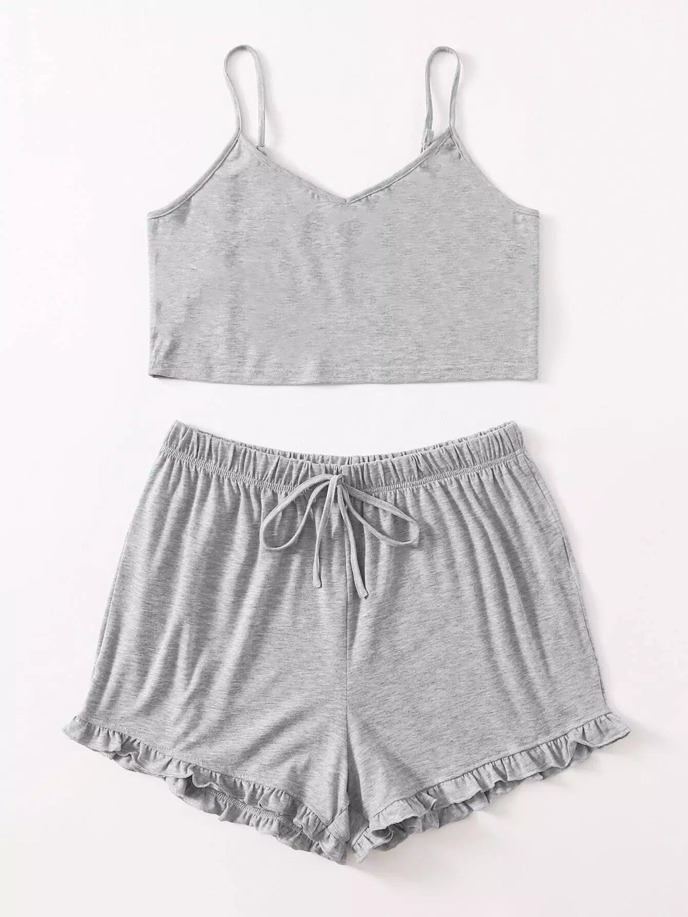 Plus Ruffle Hem Cami Pajama Set