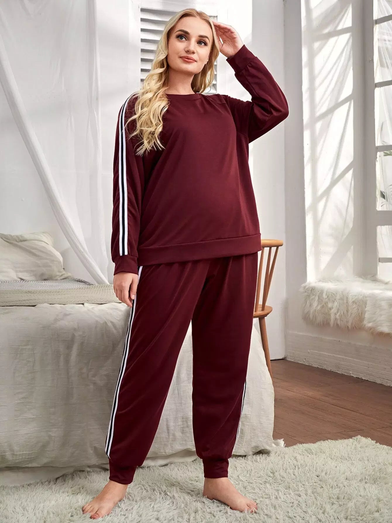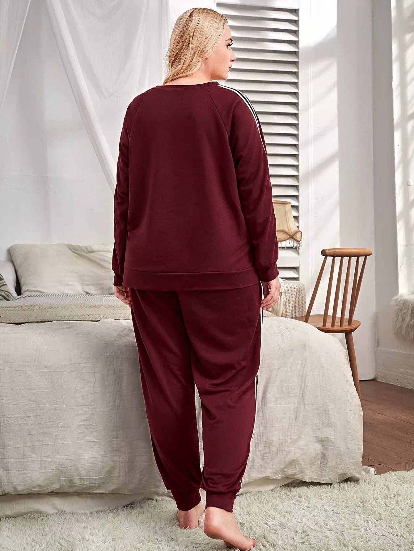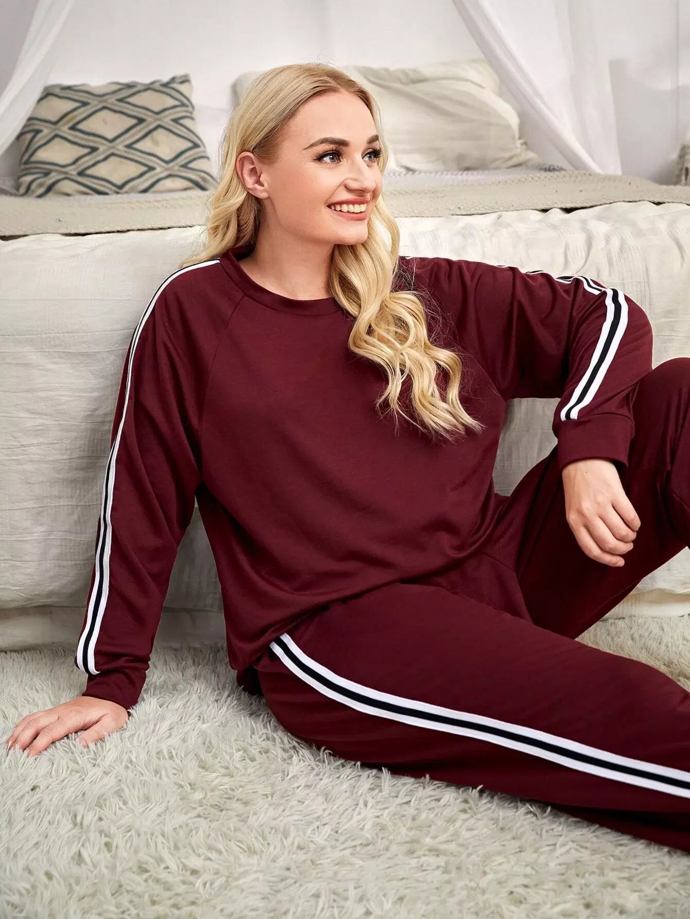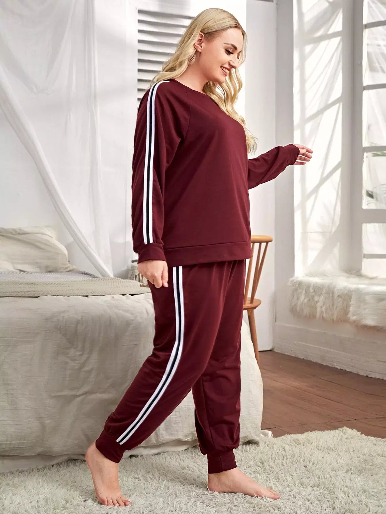 Plus Side Stripe Raglan Sleeve Sweatshirt With Sweatpants