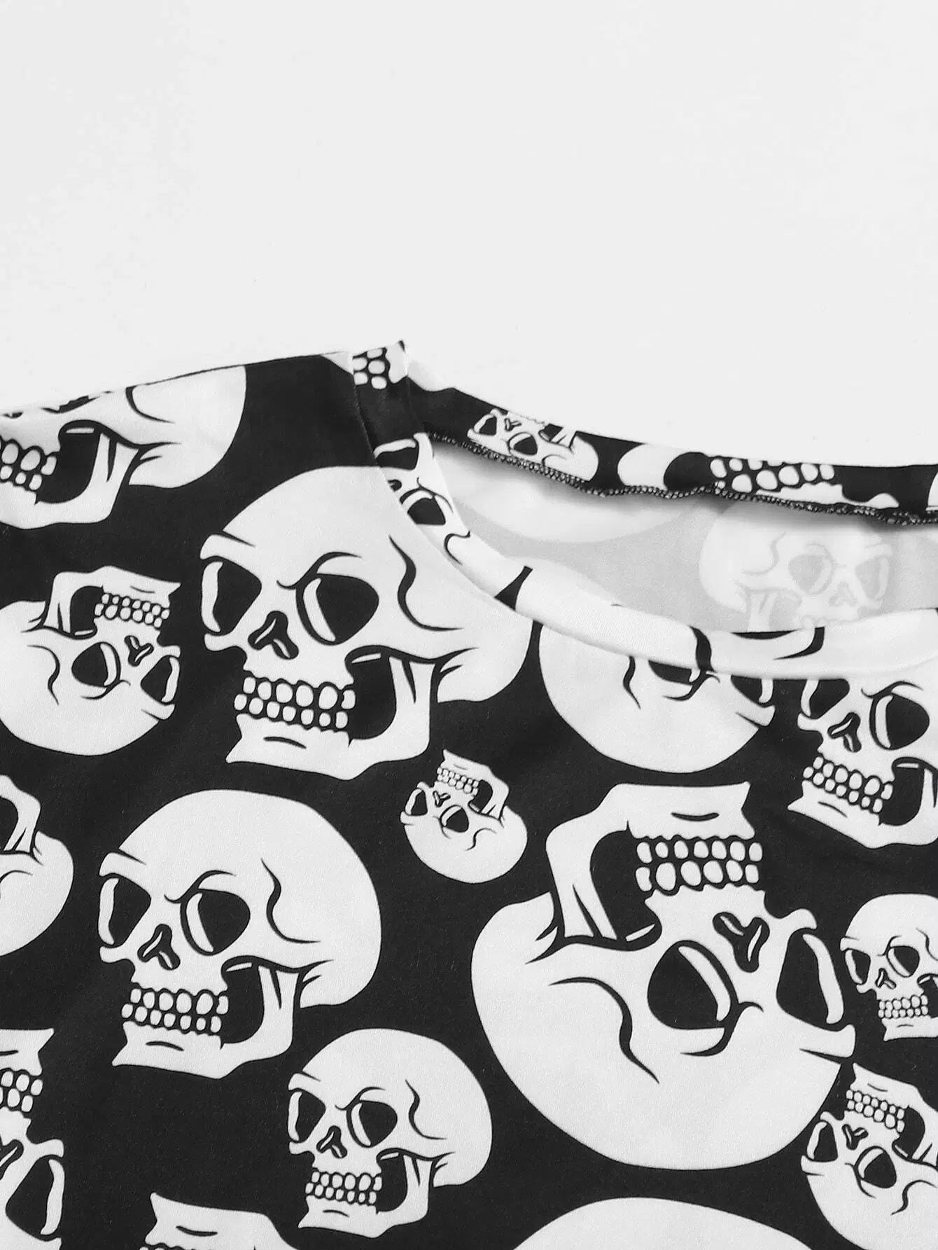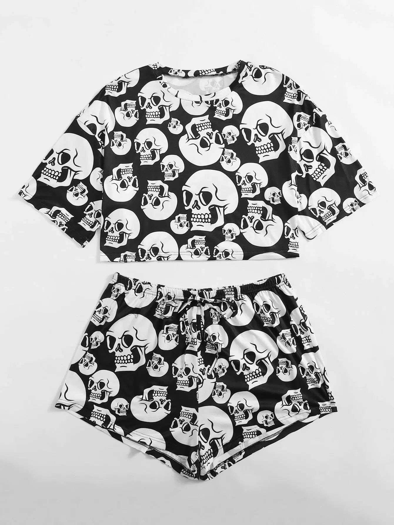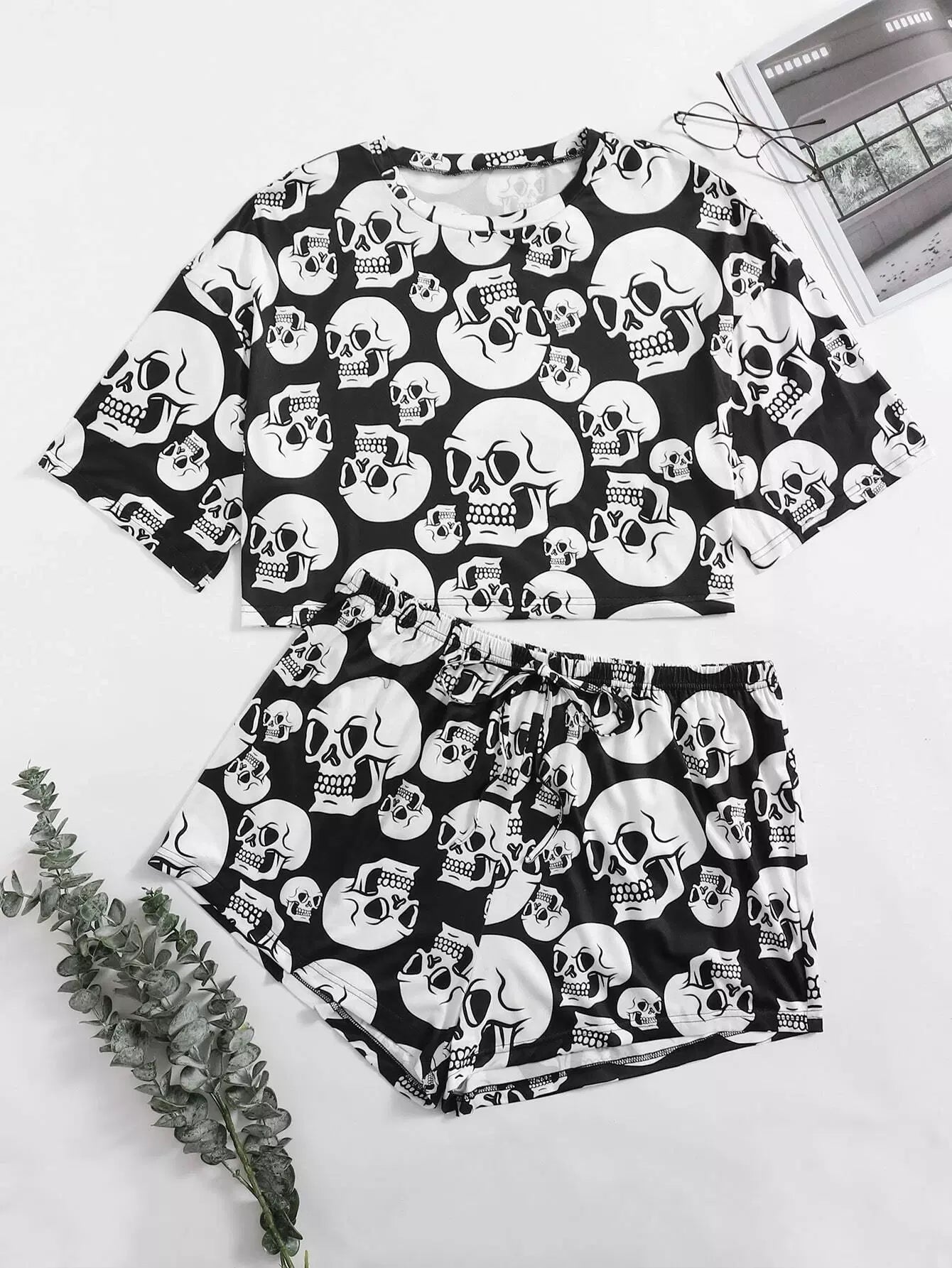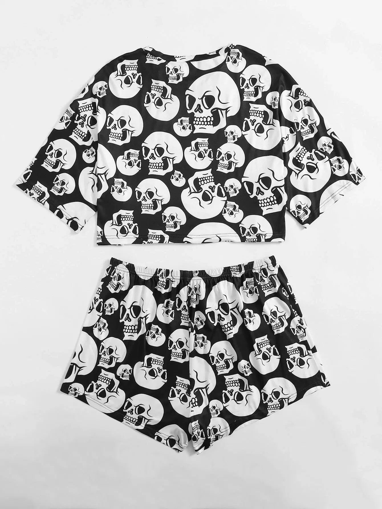 Plus Skull Print Tee & Tie Front Shorts Pajama Set