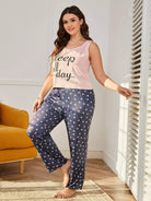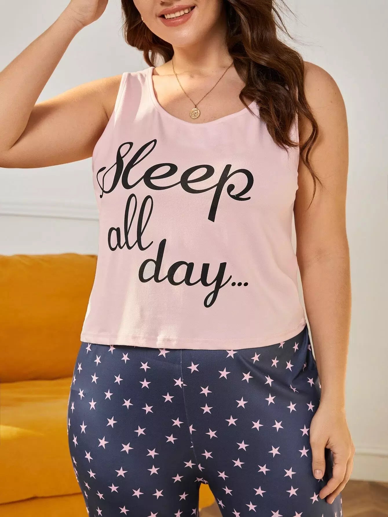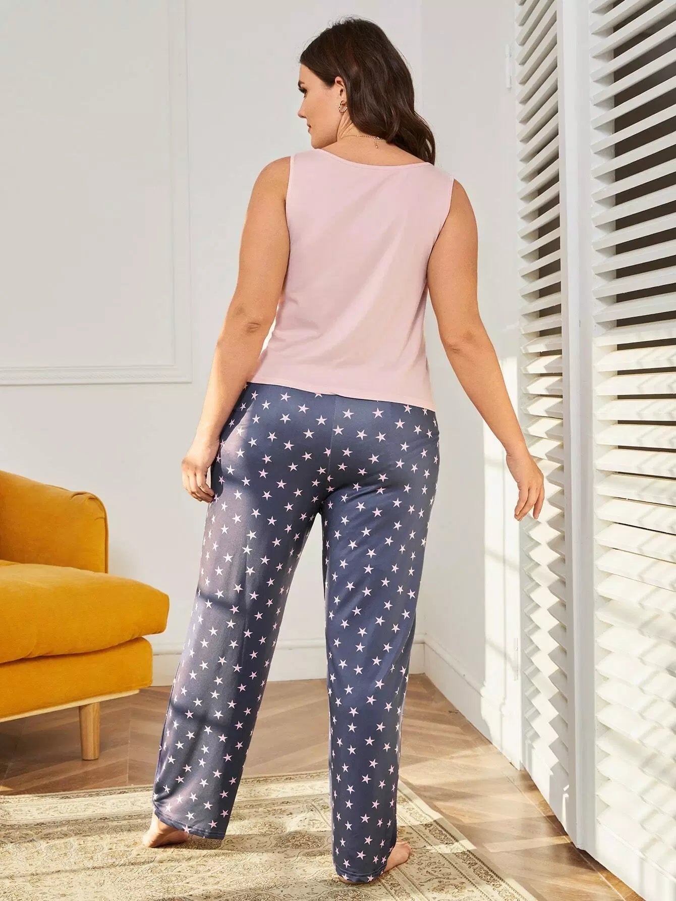 Plus Slogan Graphic Tank Top & Star Print Pants PJ Set