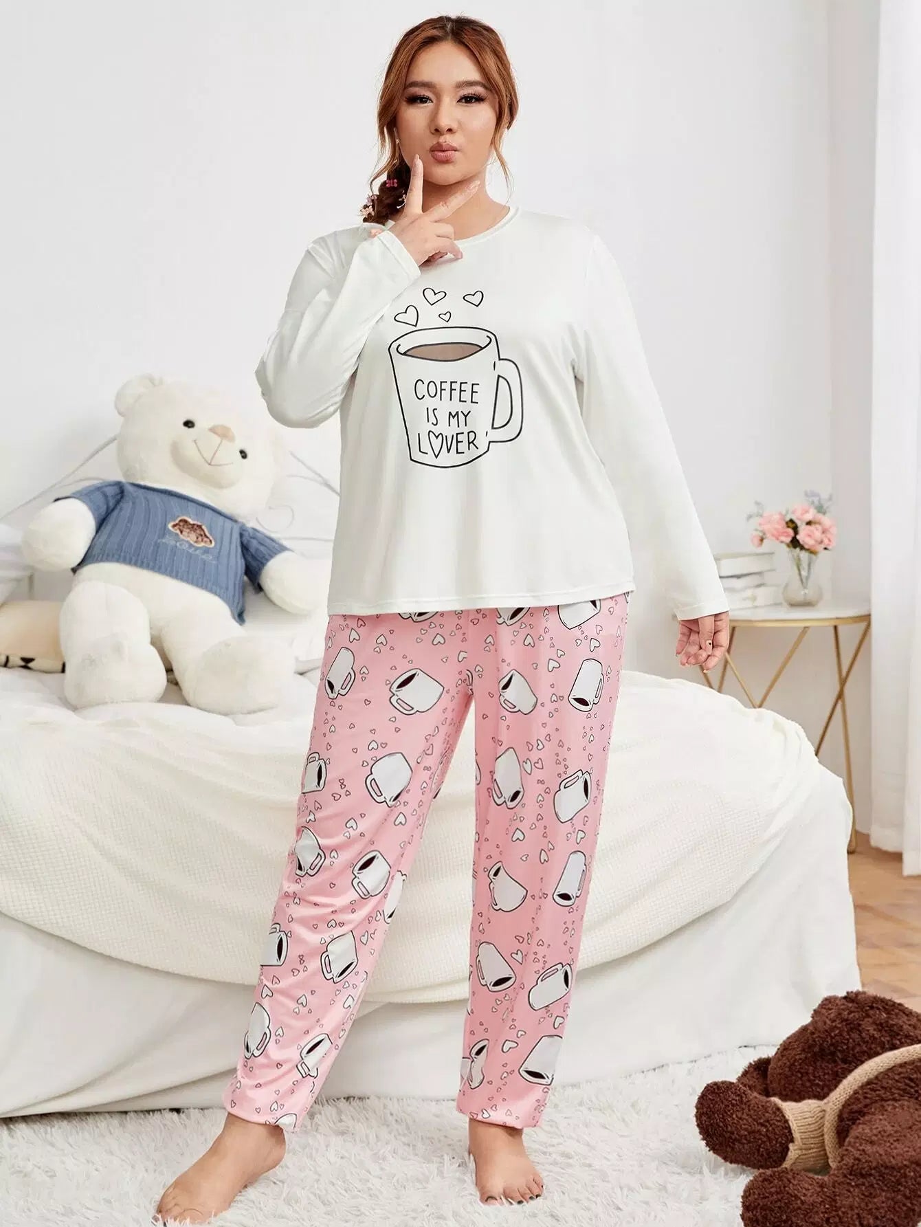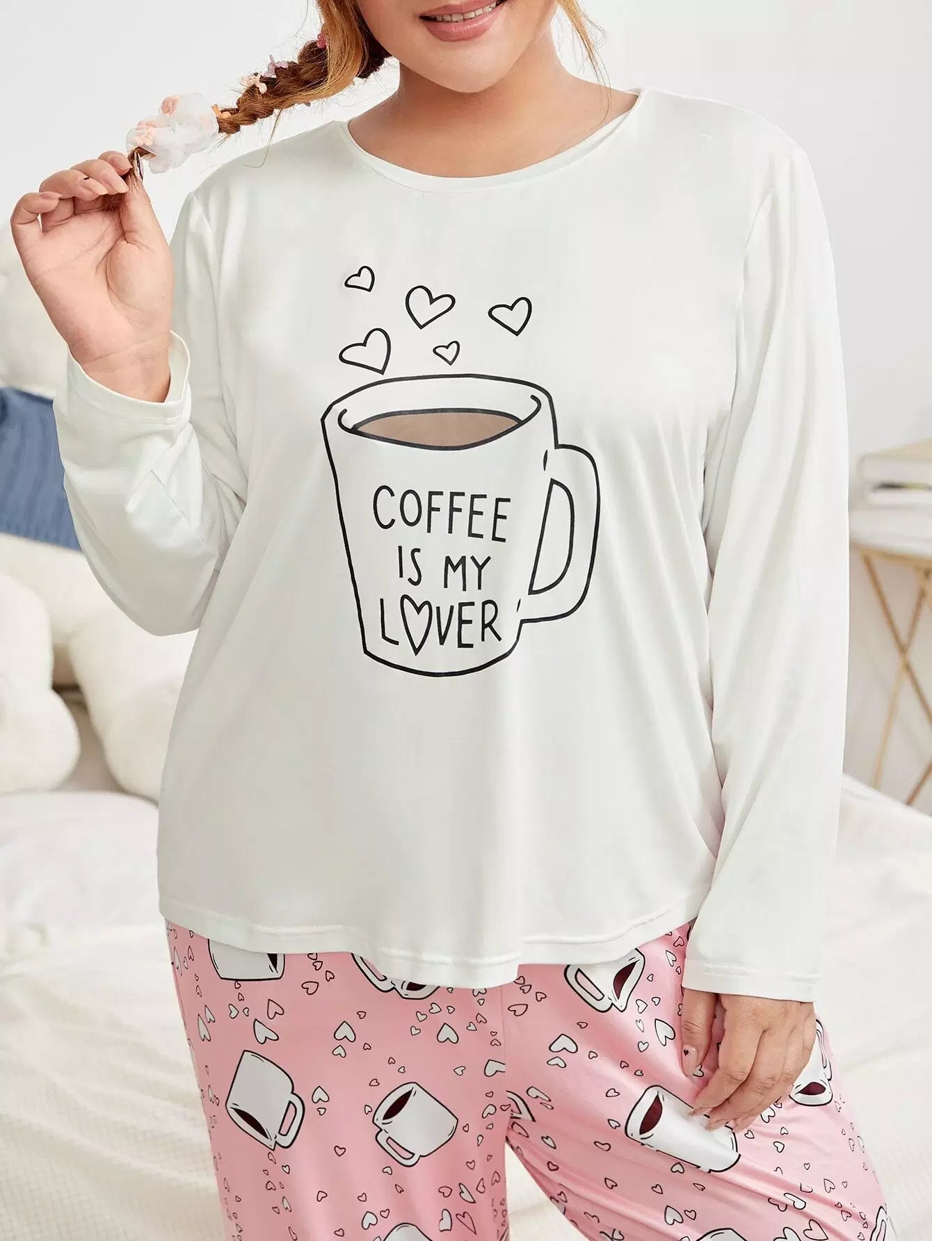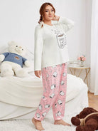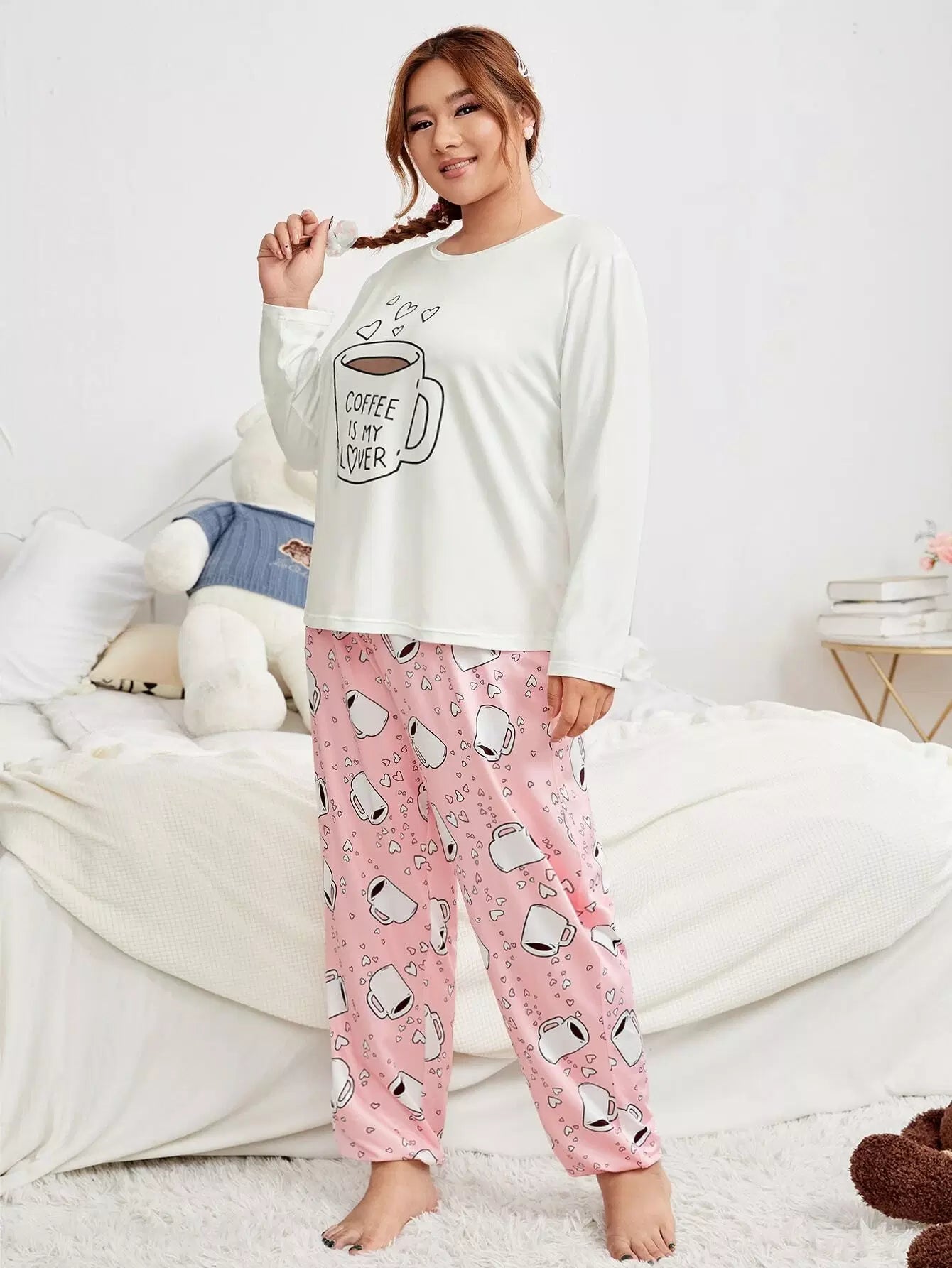 Plus Slogan & Heart Print PJ Set
