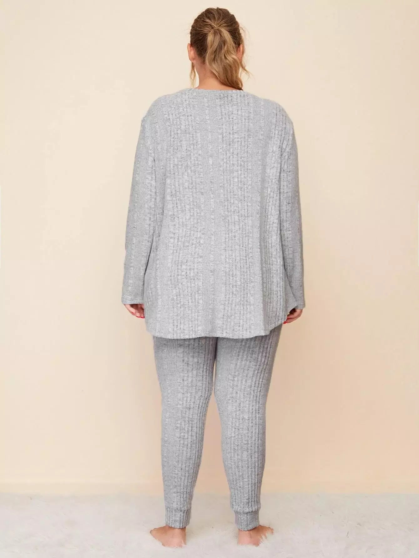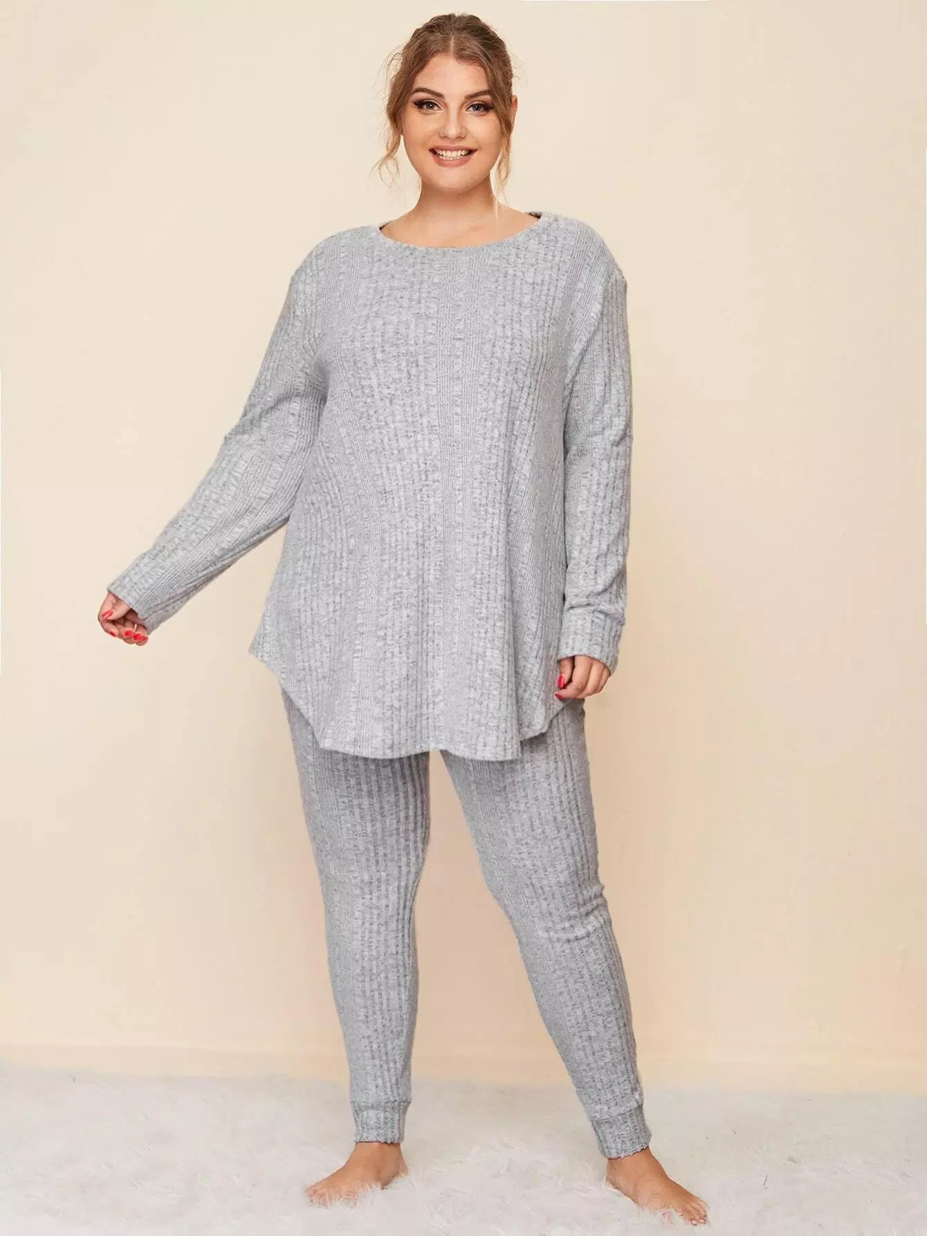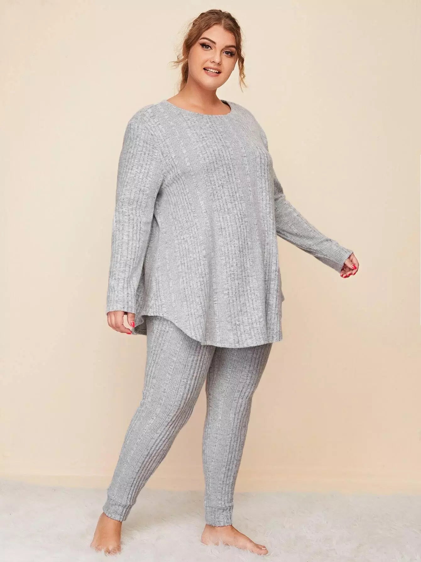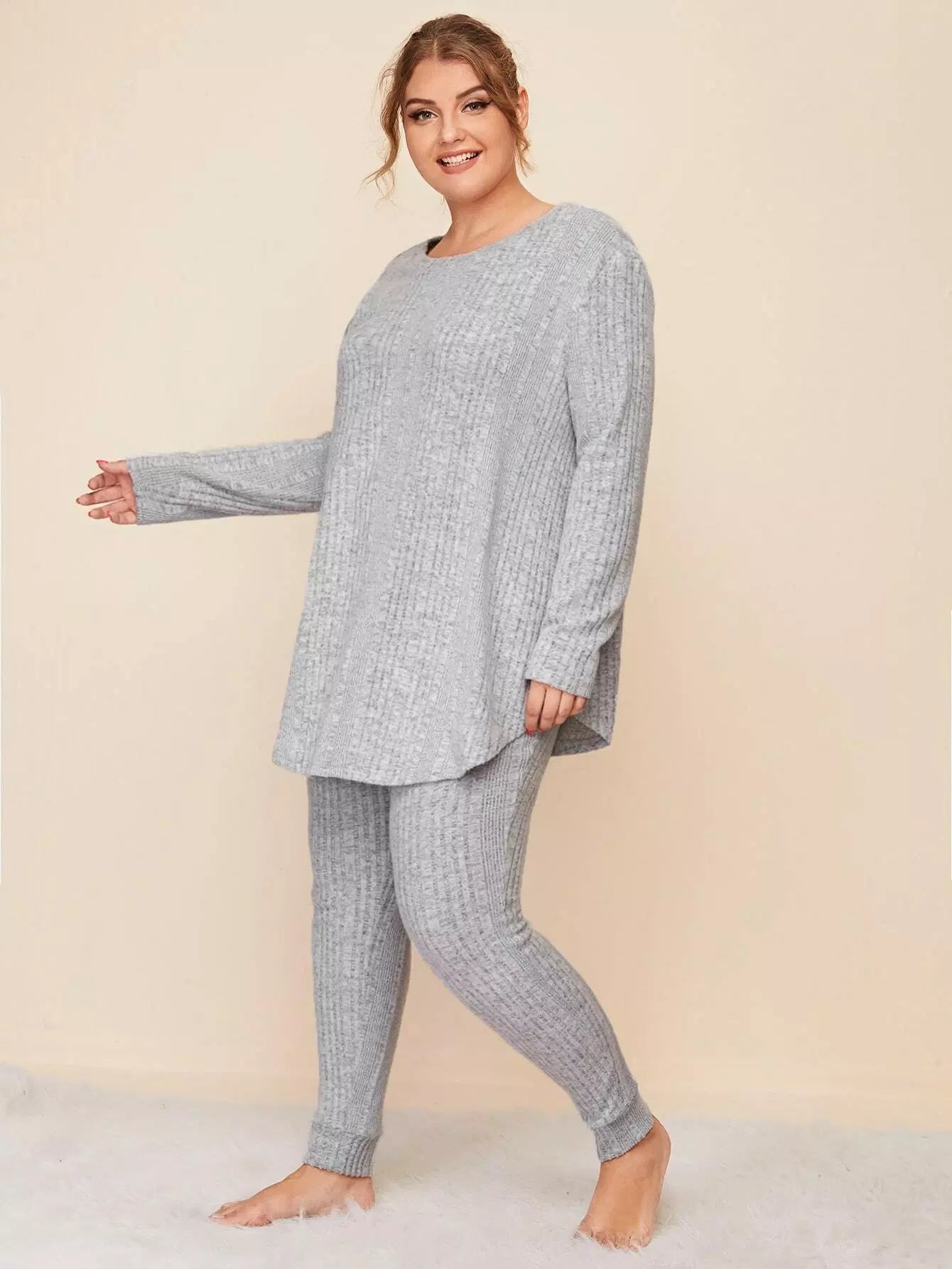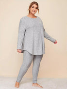 Plus Solid Curved Hem Tee and Leggings PJ Set