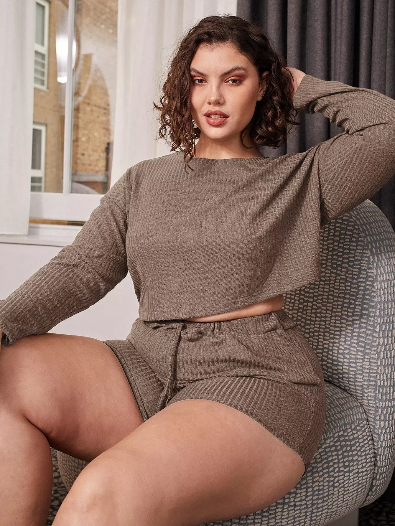 Plus Solid Rib Knot Pajama Set