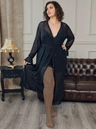 Plus Lace Trimed Flounce Sleeve Sheer Mesh Robe