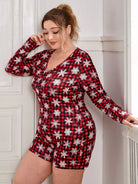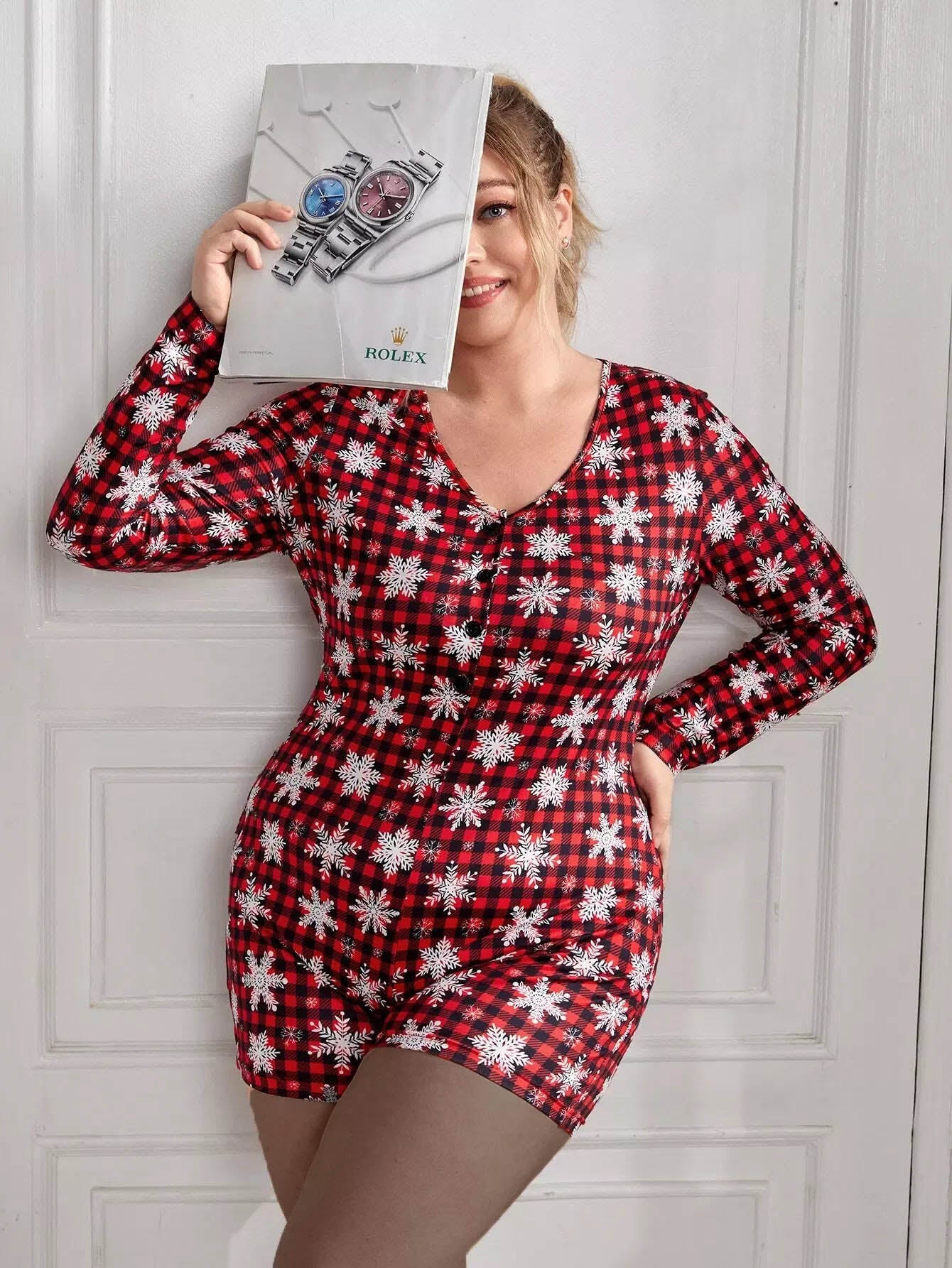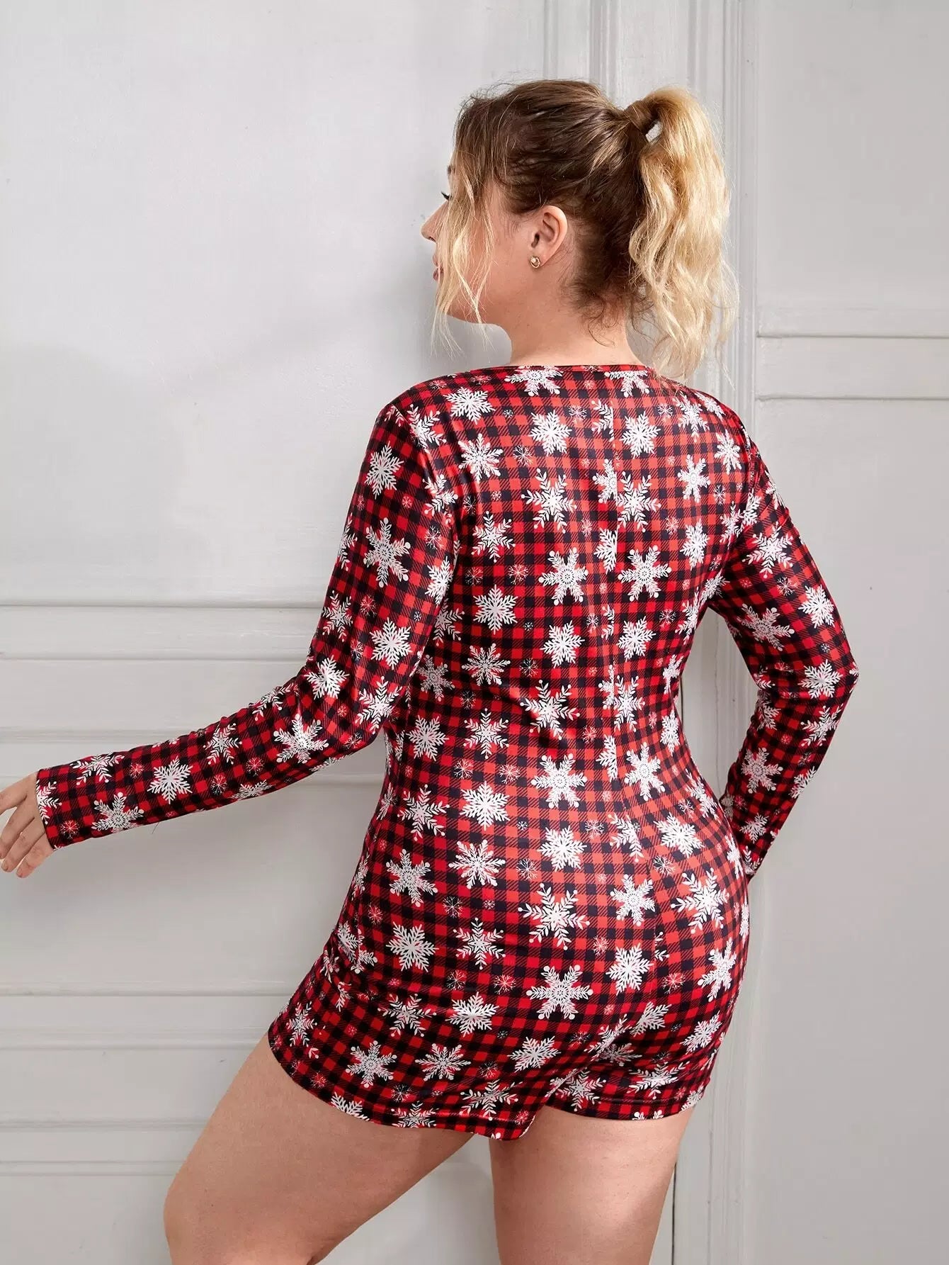 Plus Gingham & Christmas Snowflake Print Sleep Romper