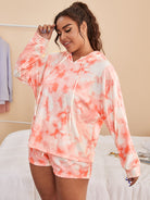 Plus 1pc Tie Dye Drawstring Hooded Sleep Top