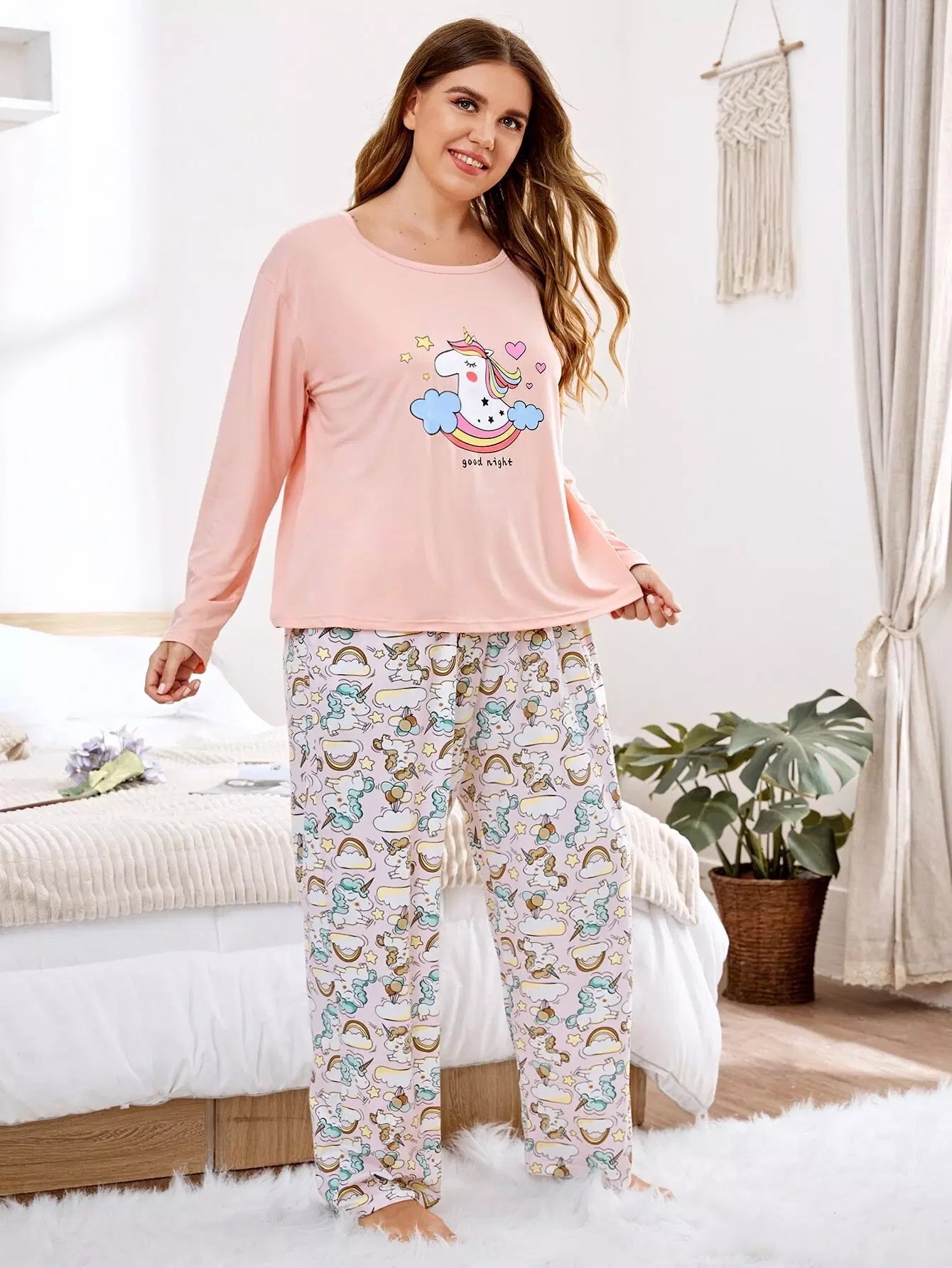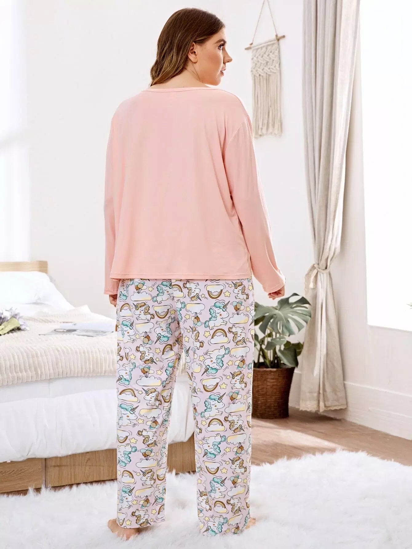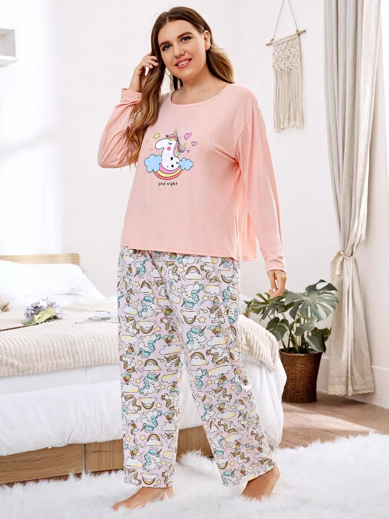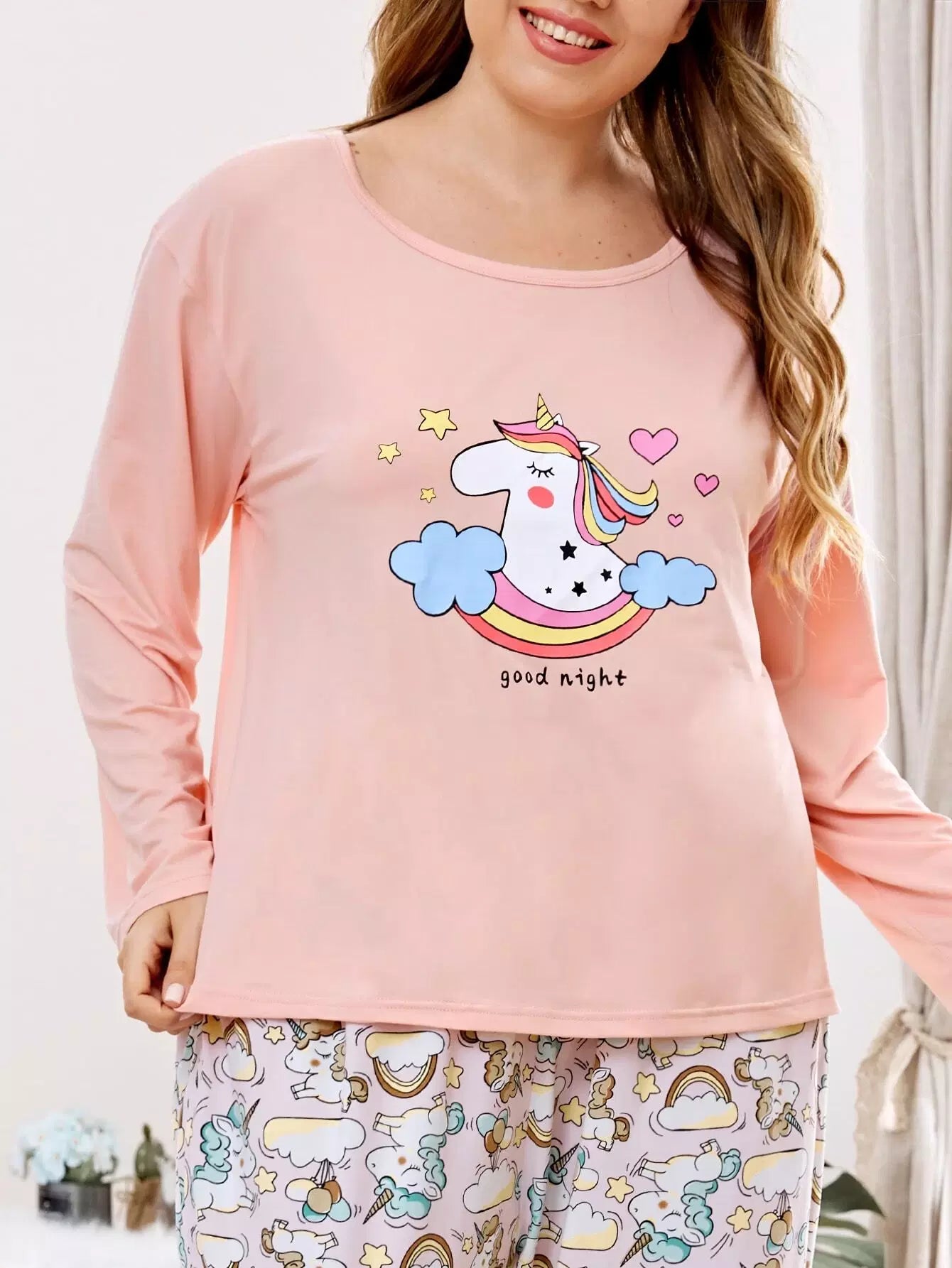 Women - Plus Slogan & Cartoon Graphic Sleep Top
