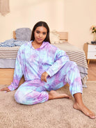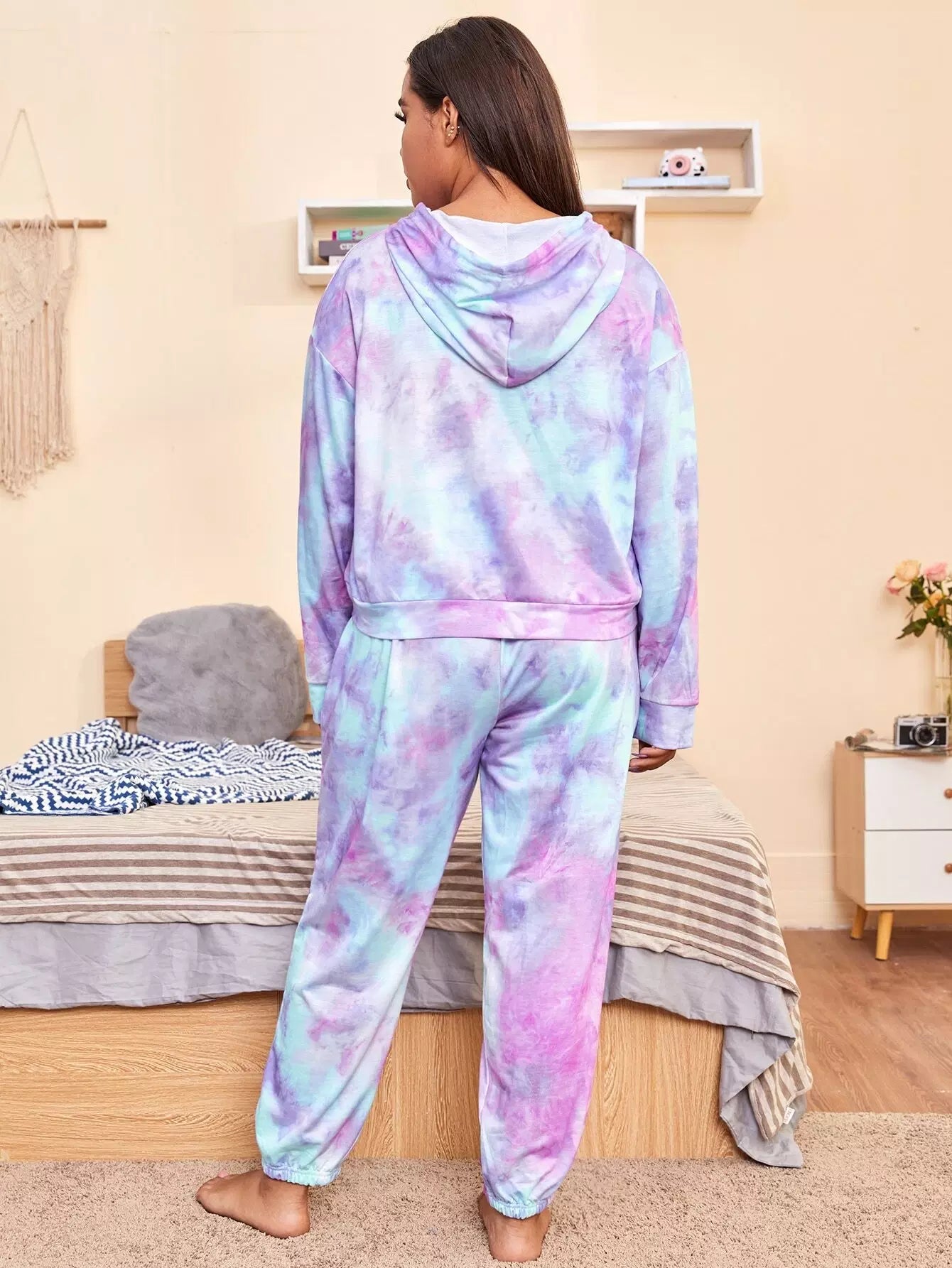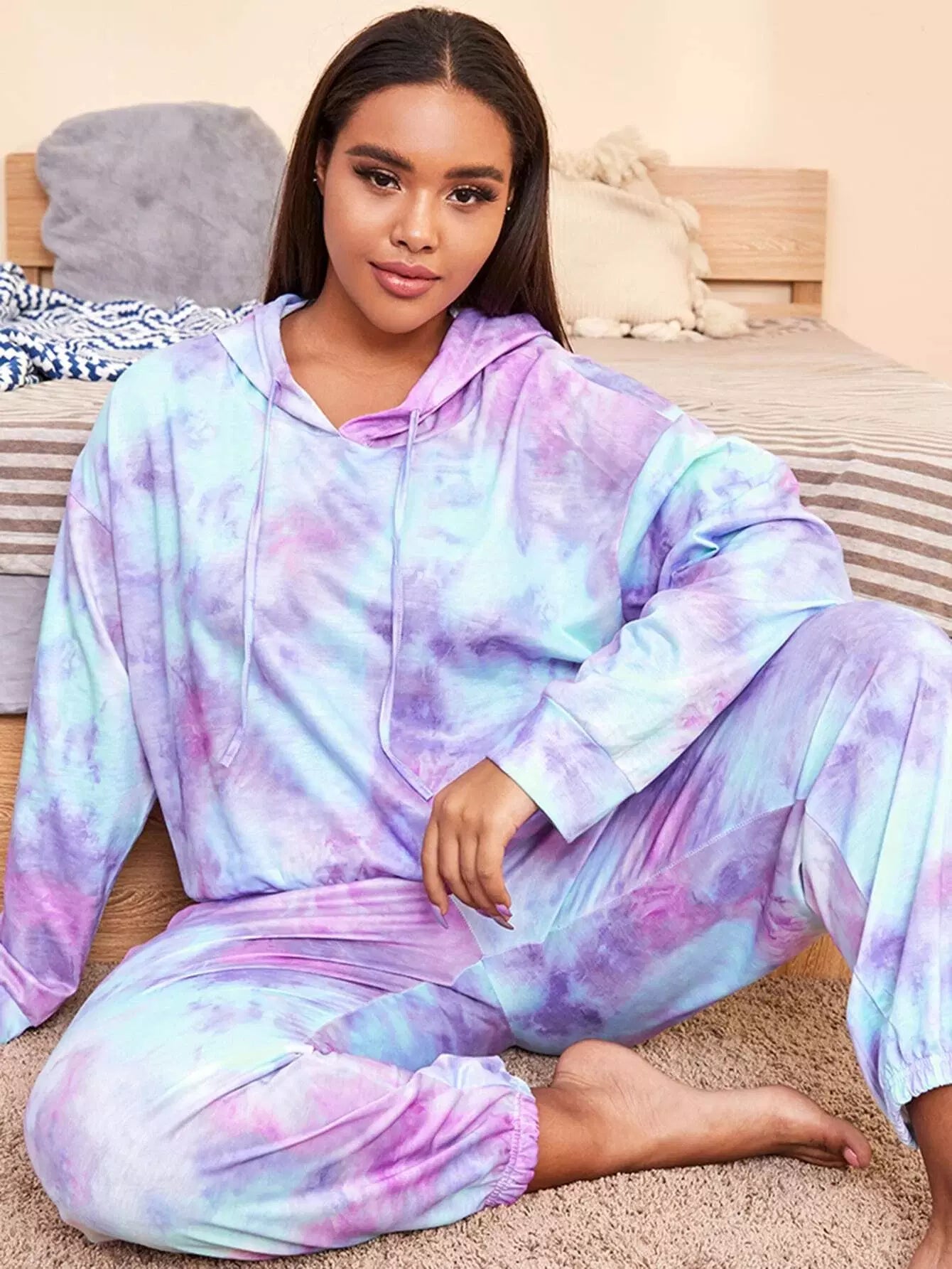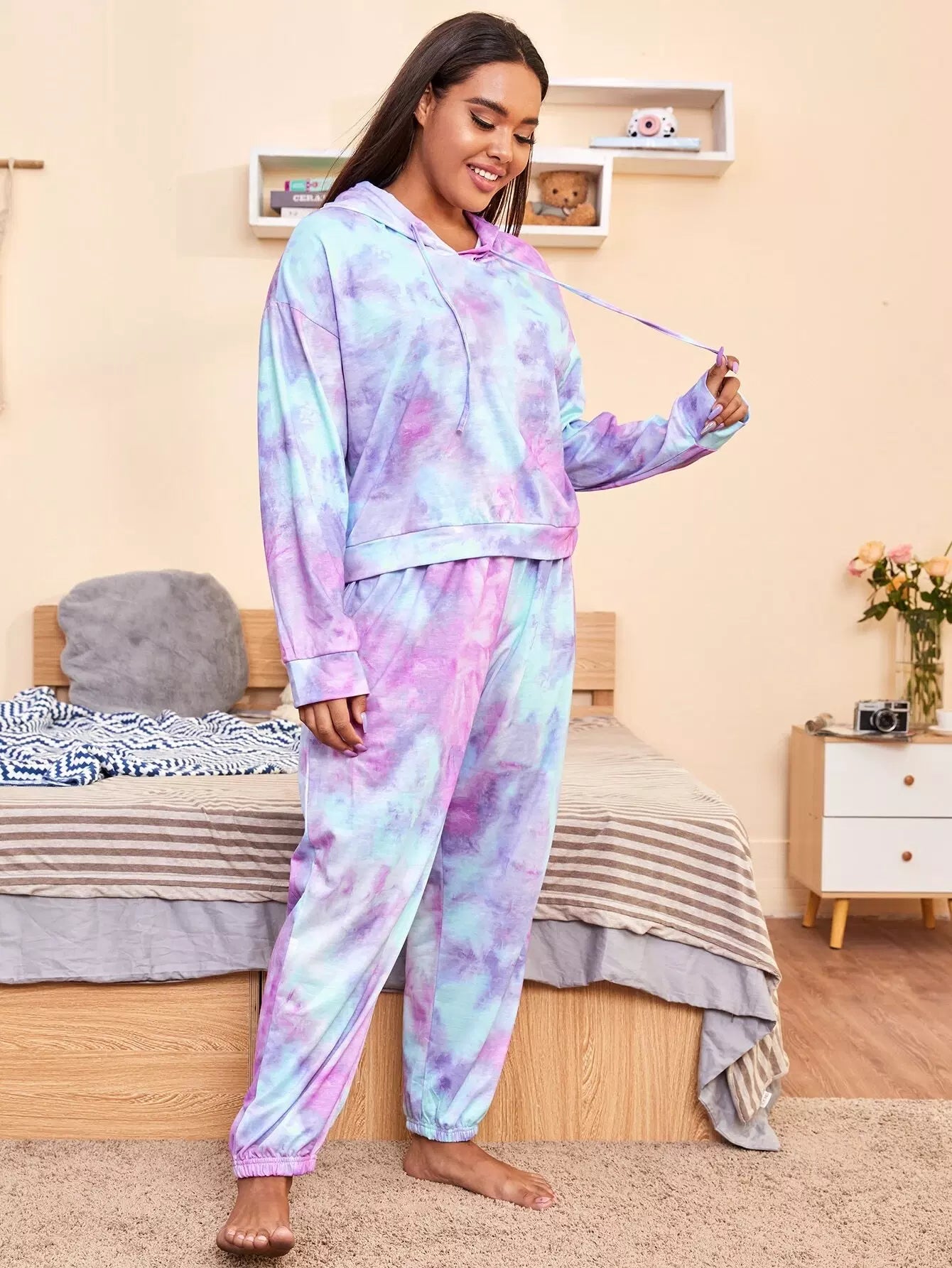 Plus Tie Dye Drawstring Hooded Sleep Top