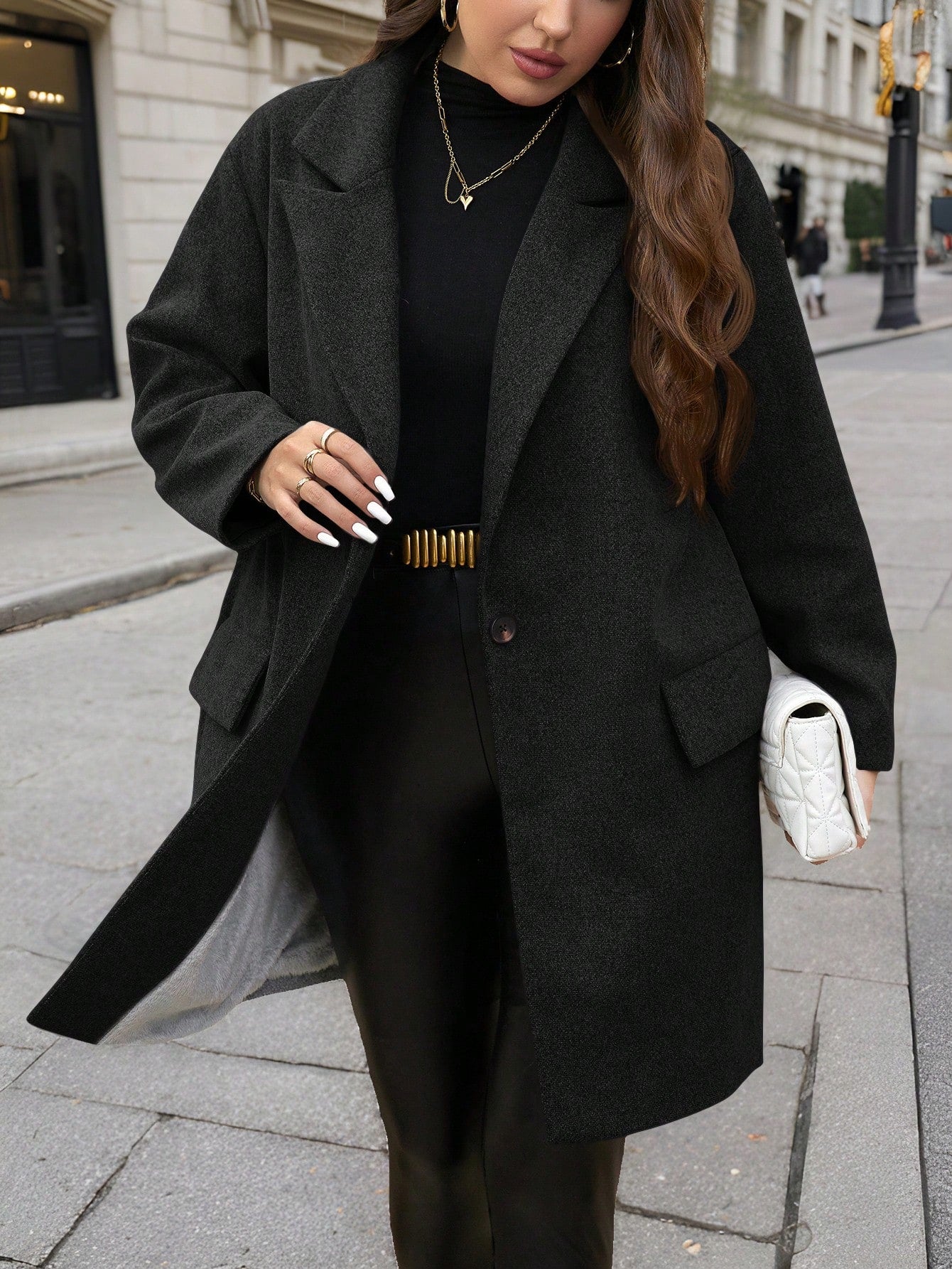 Clasi Plus Size Elegant Mid-Length Overcoat