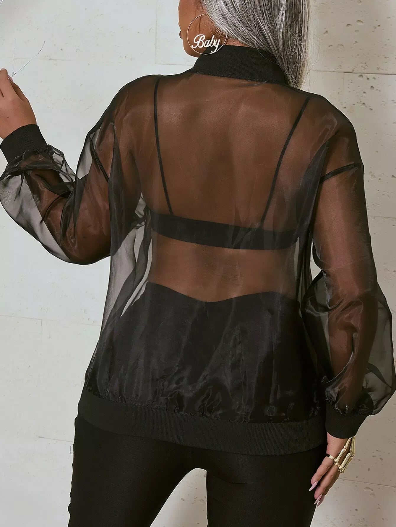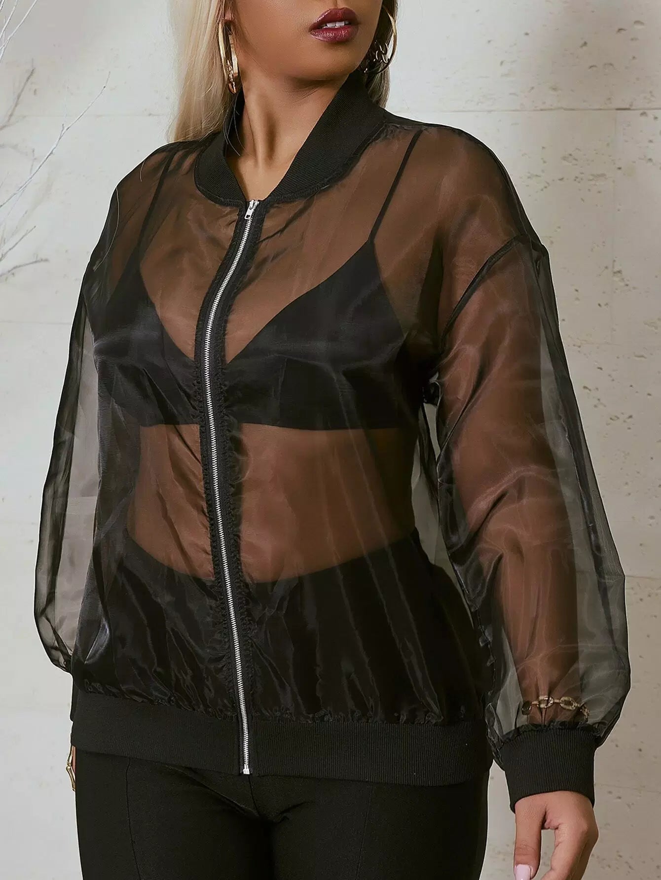 Plus 1pc Zip Up Sheer Organza Bomber Jacket