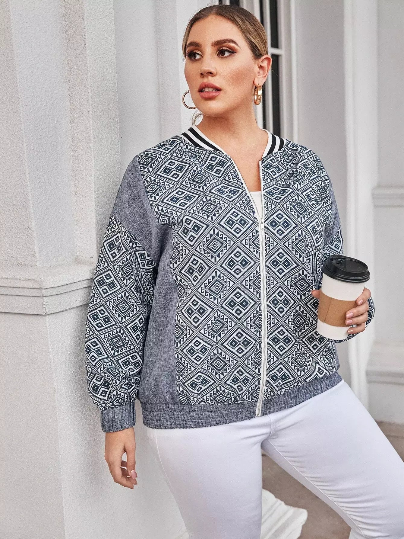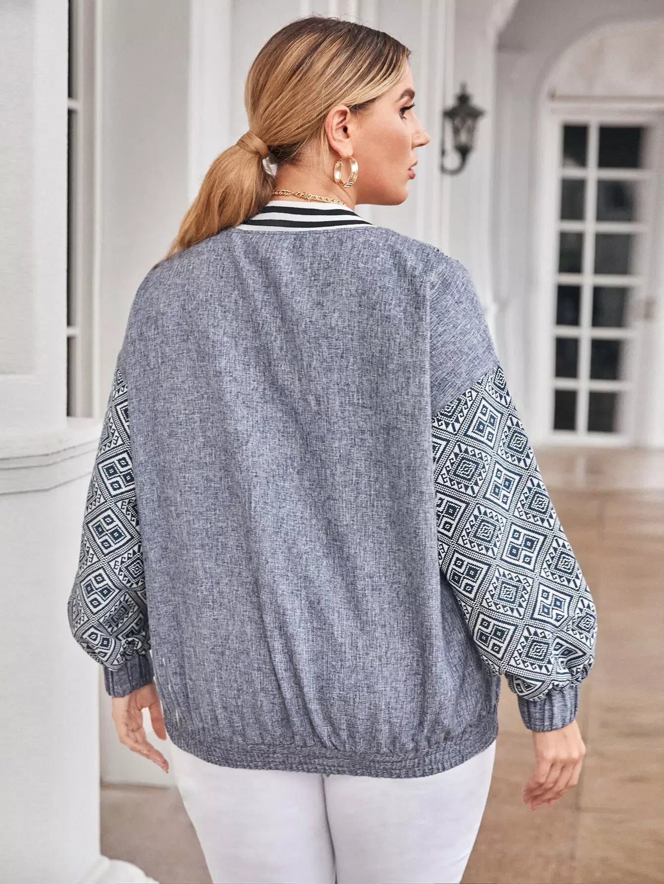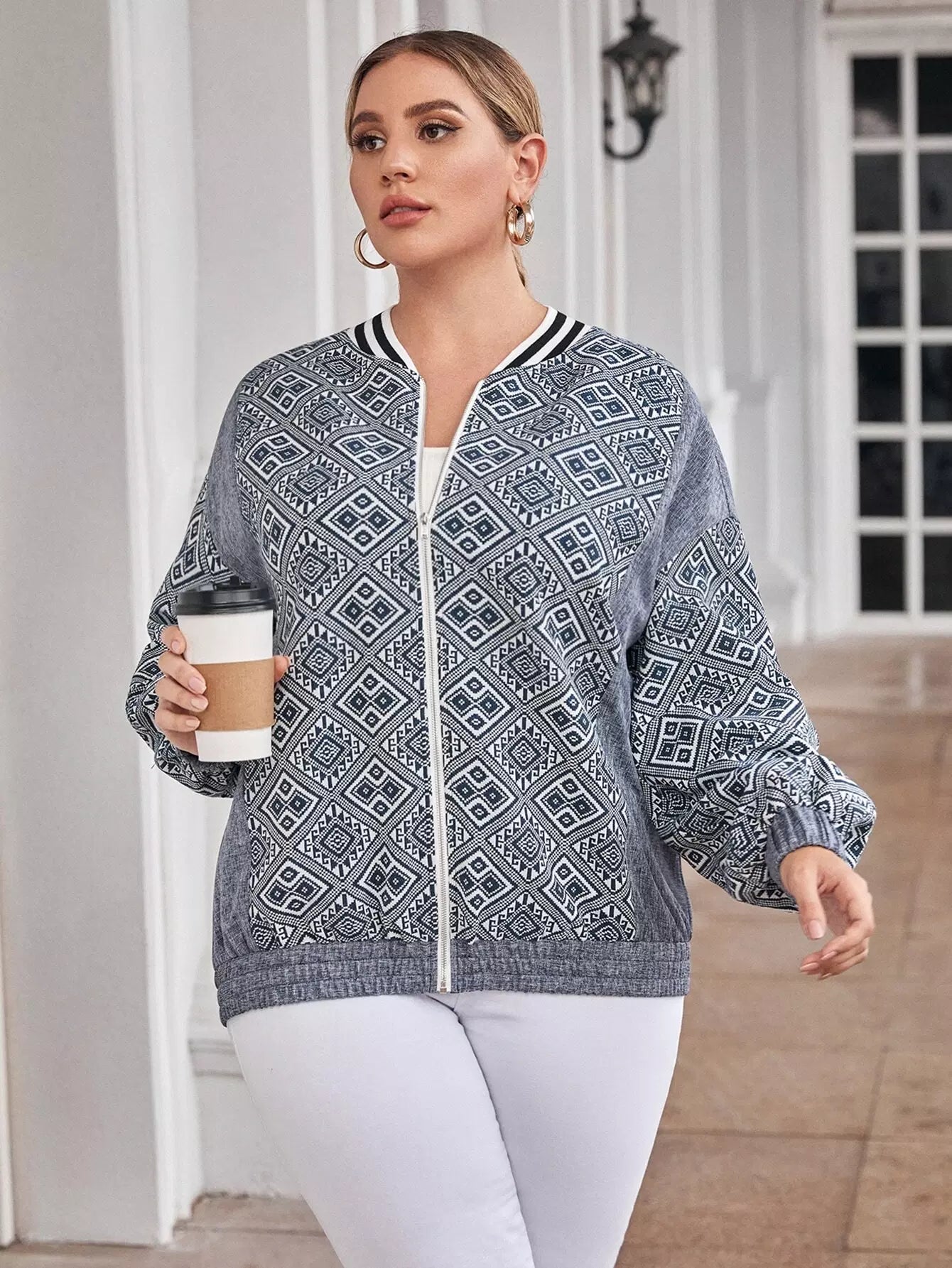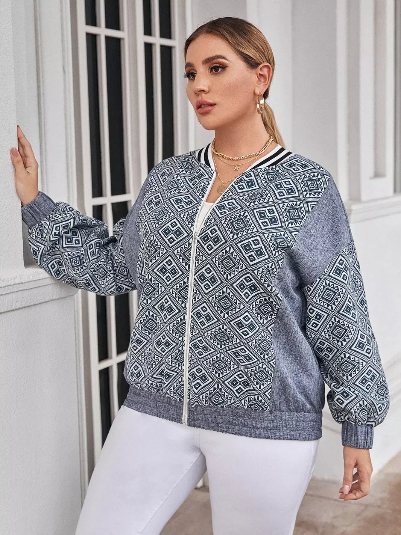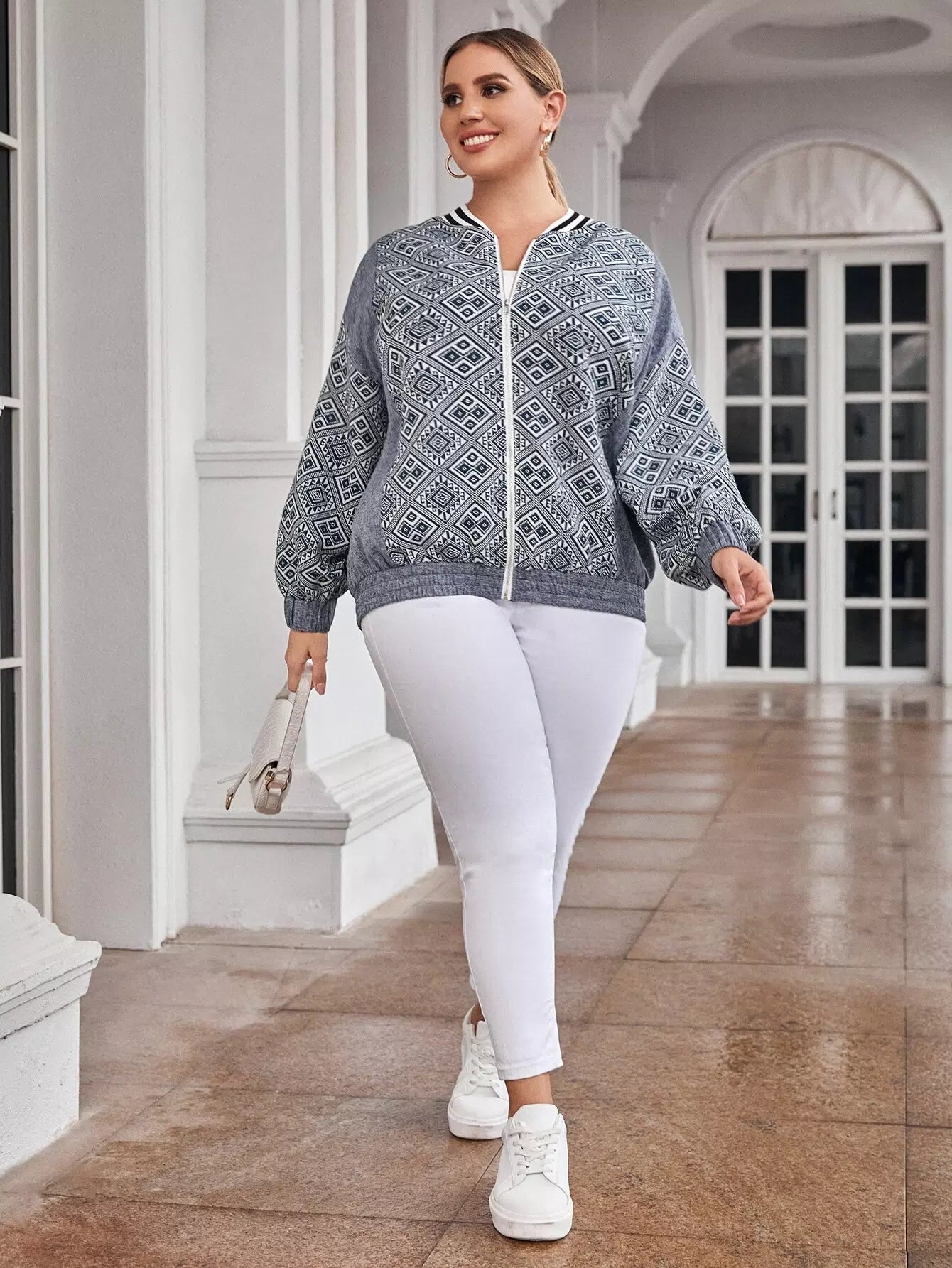 Plus Allover Geo Print Drop Shoulder Bishop Sleeve Jacket