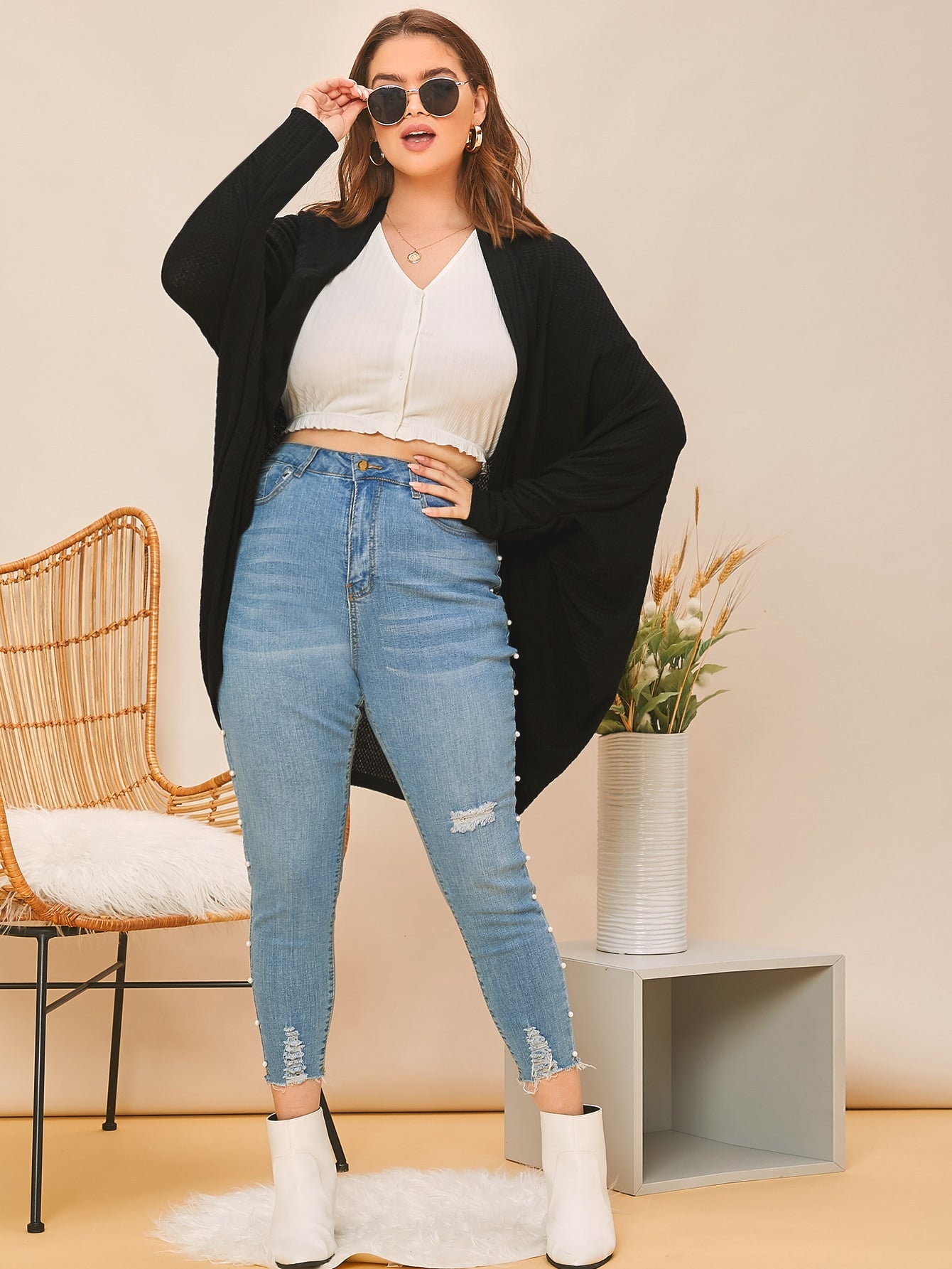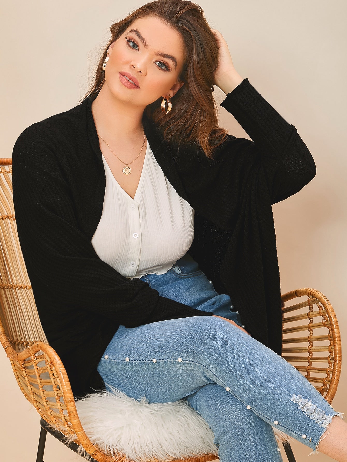 Plus Open-Front Dolman Sleeve Cardigan