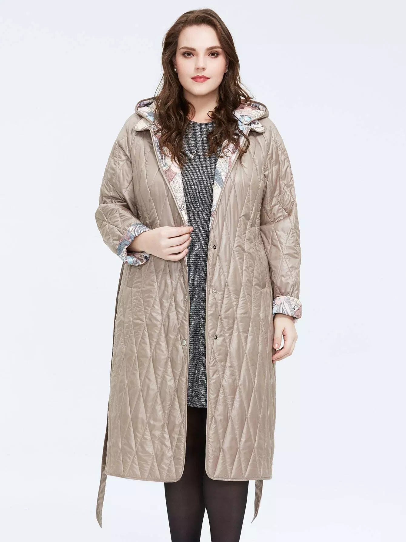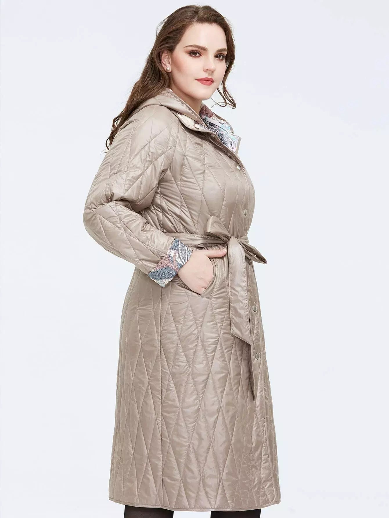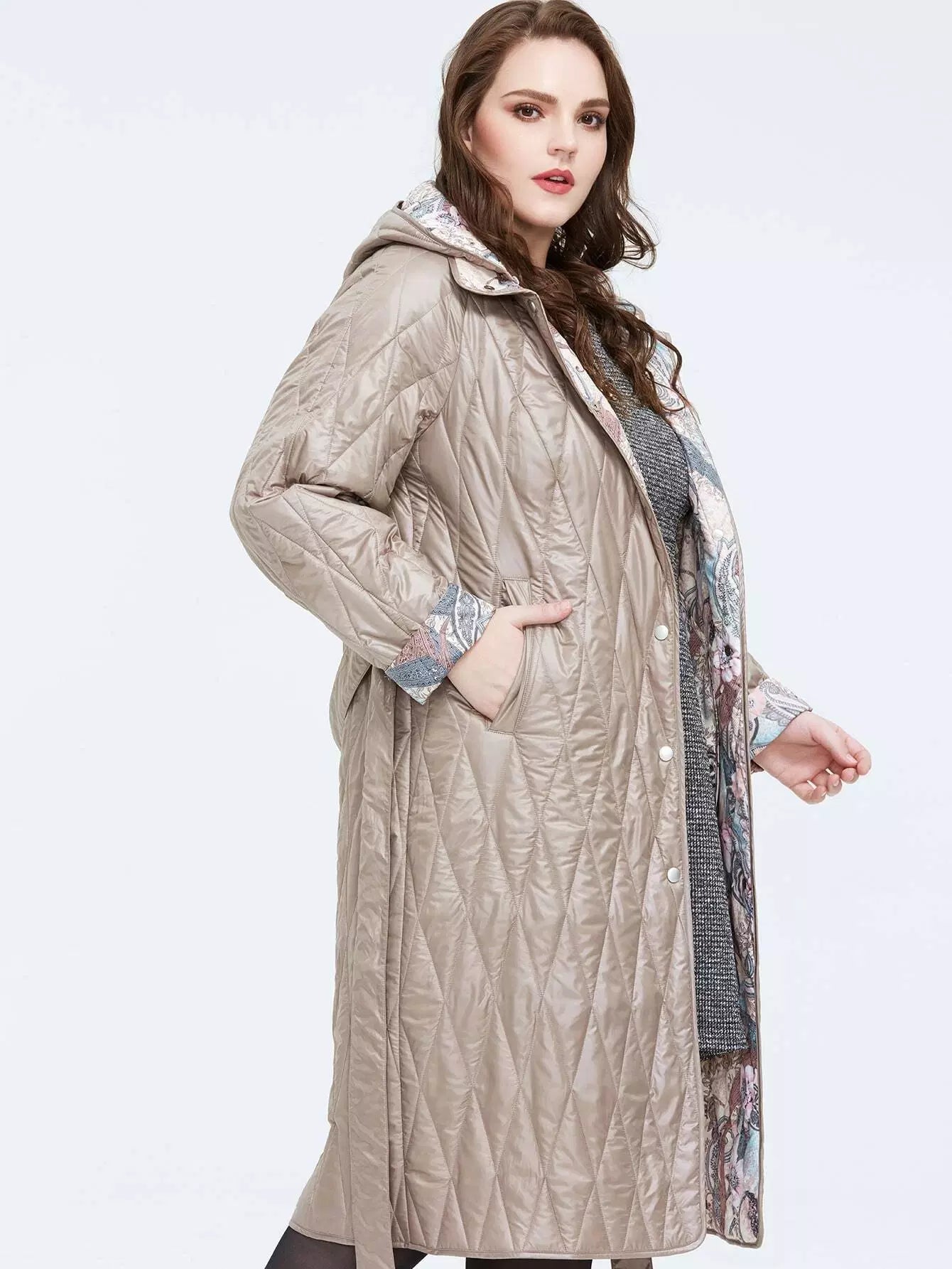 Astrid Plus Button Front Pocket Side Hooded Padded Coat