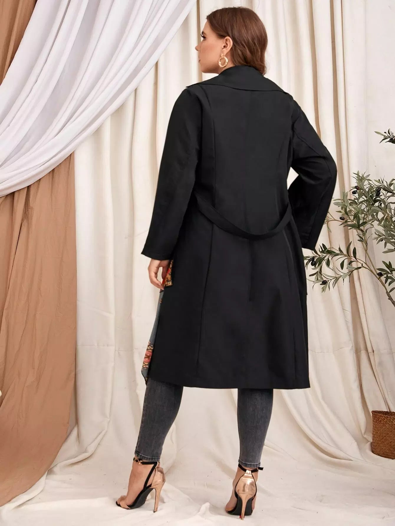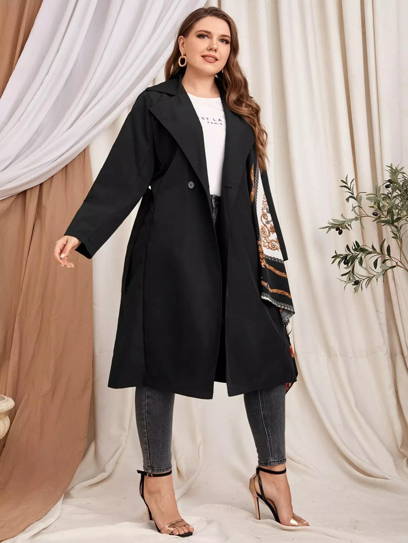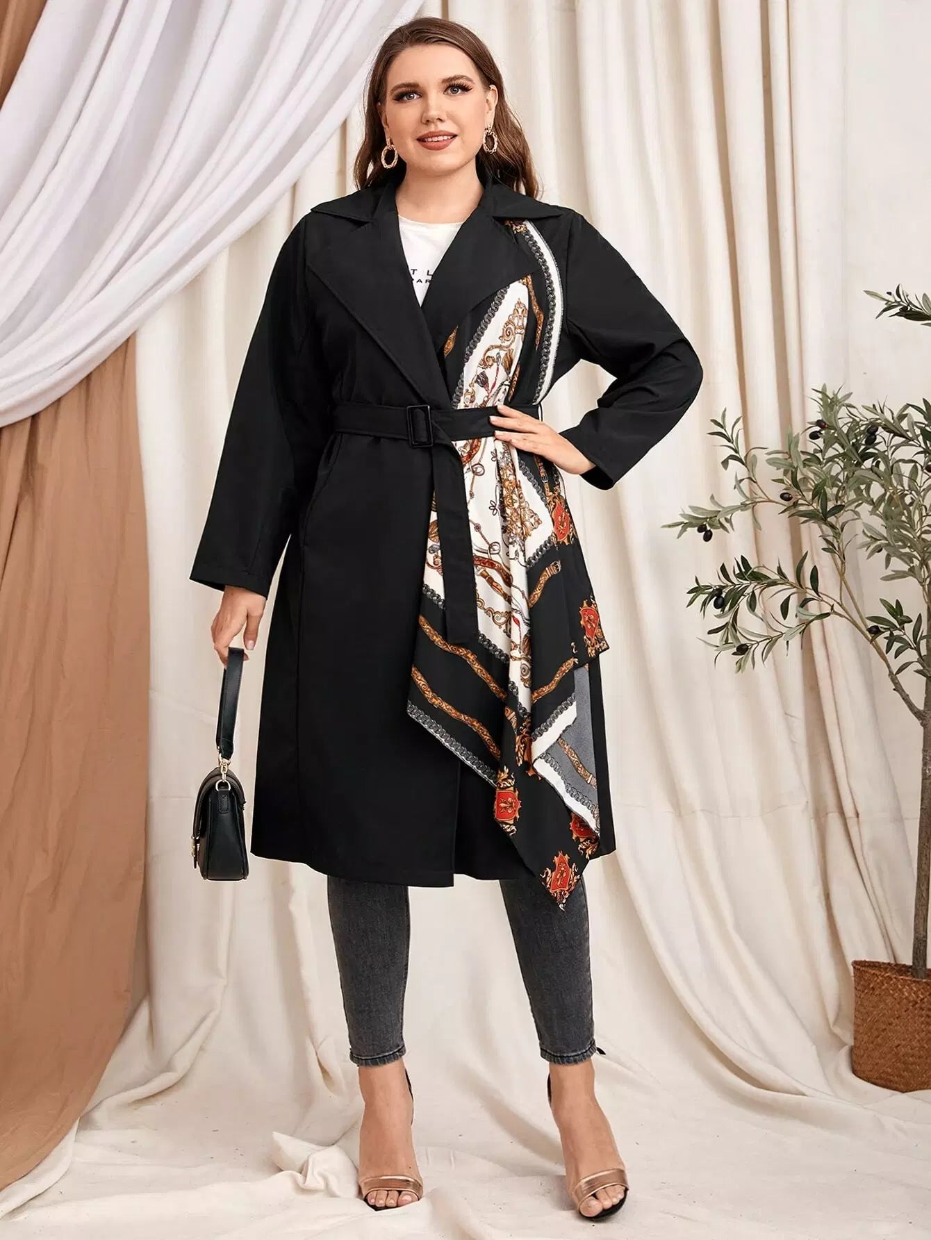 Plus Baroque Print Coat Without Belt