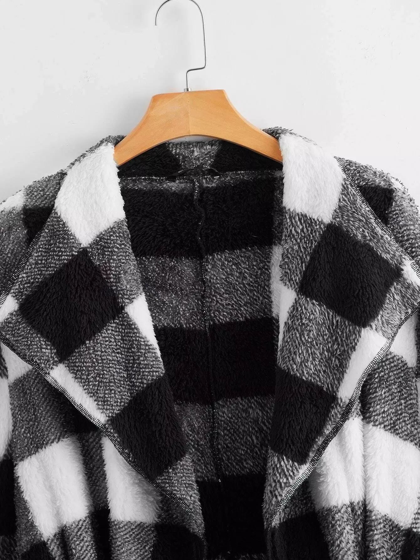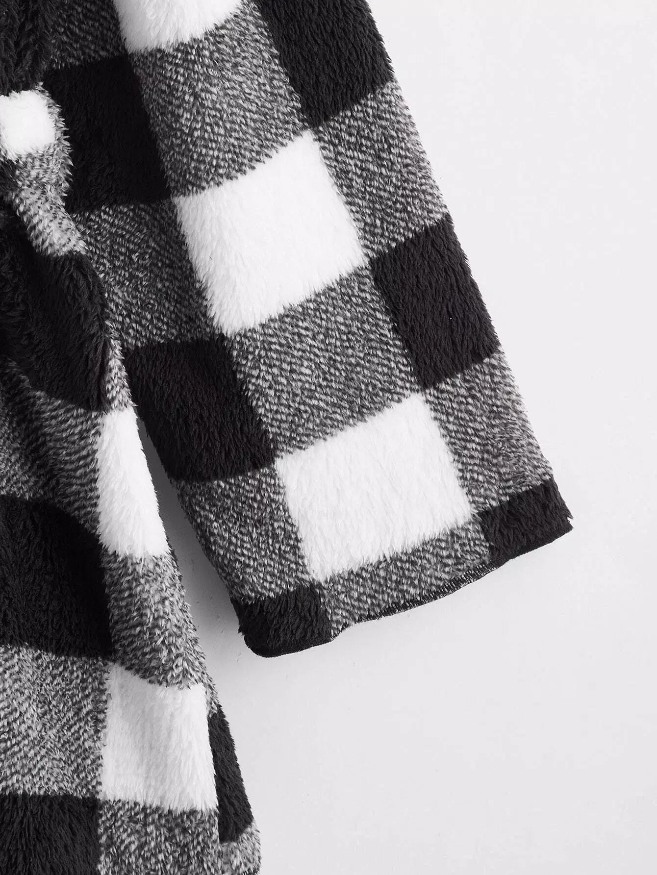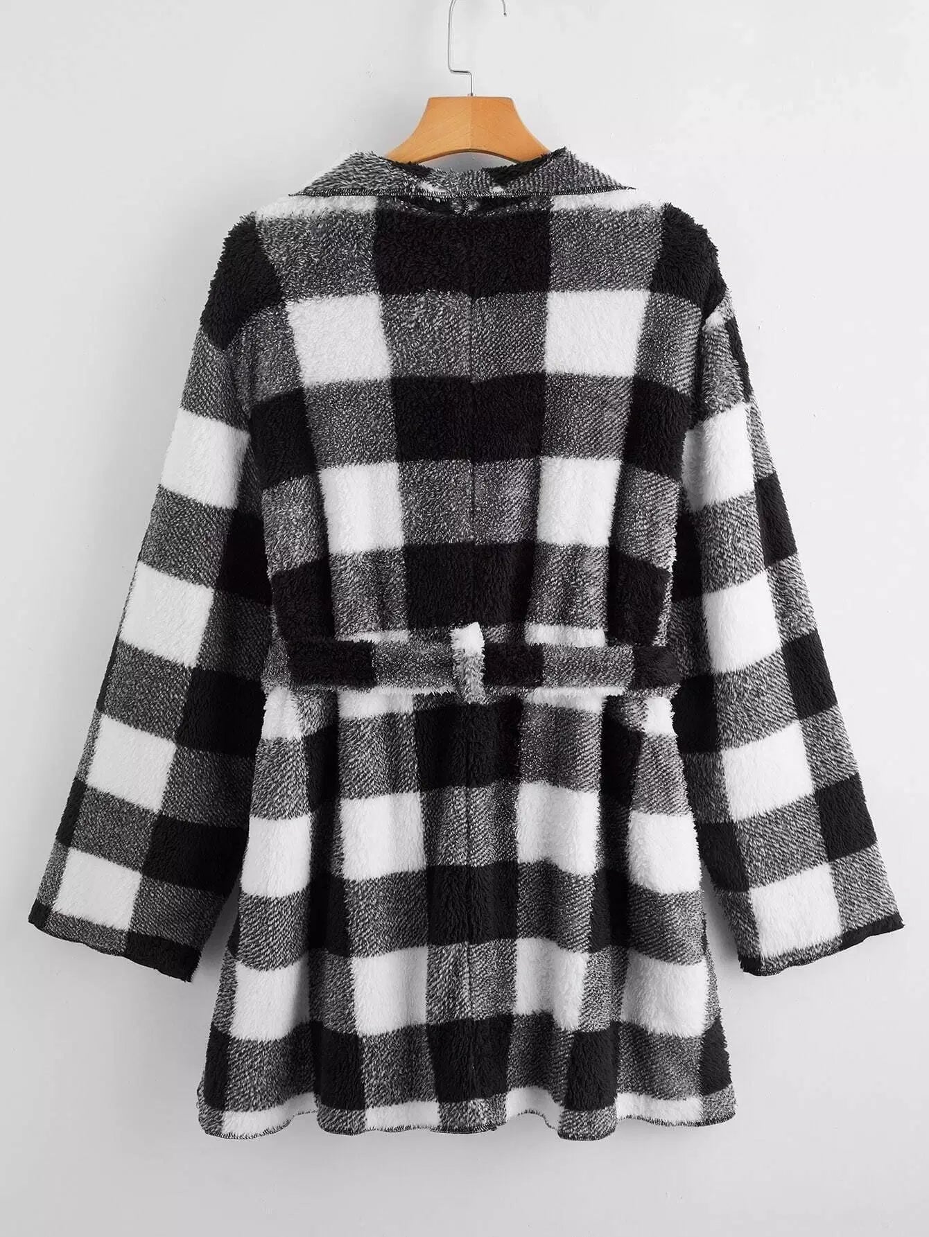 Plus Buffalo Plaid Teddy Coat Without Belt