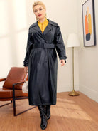 Women - Plus Double Breasted Buckle Belted PU Trench Coat