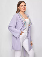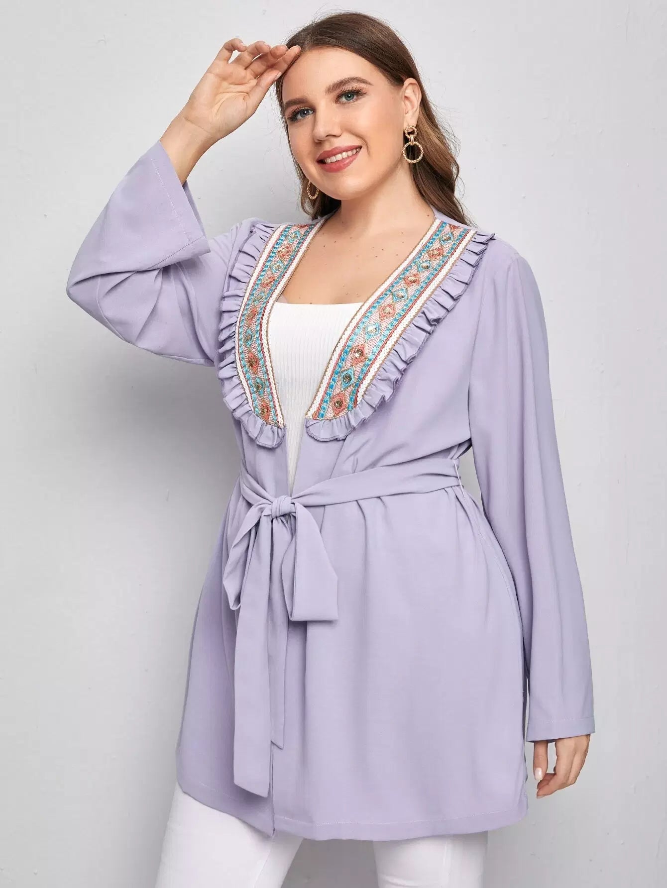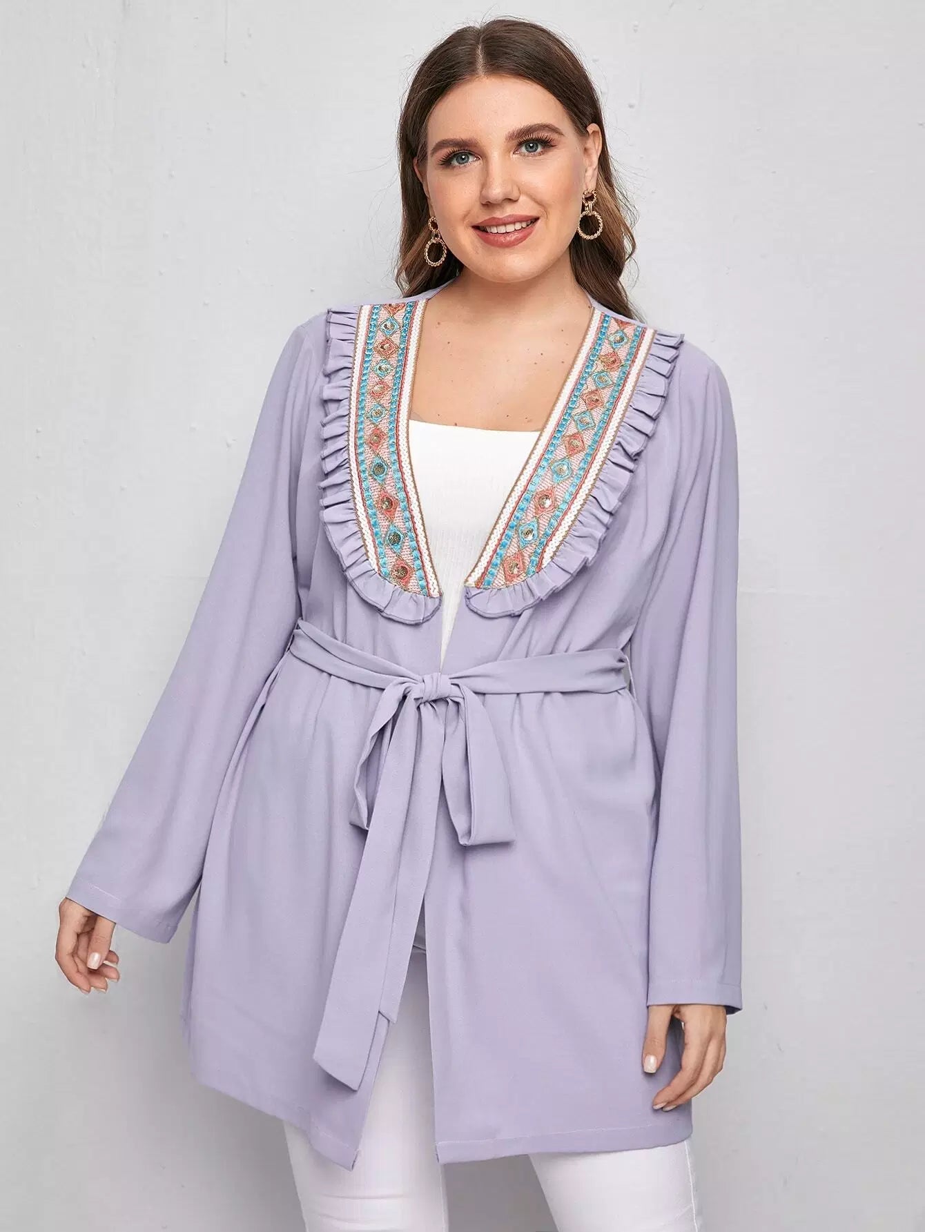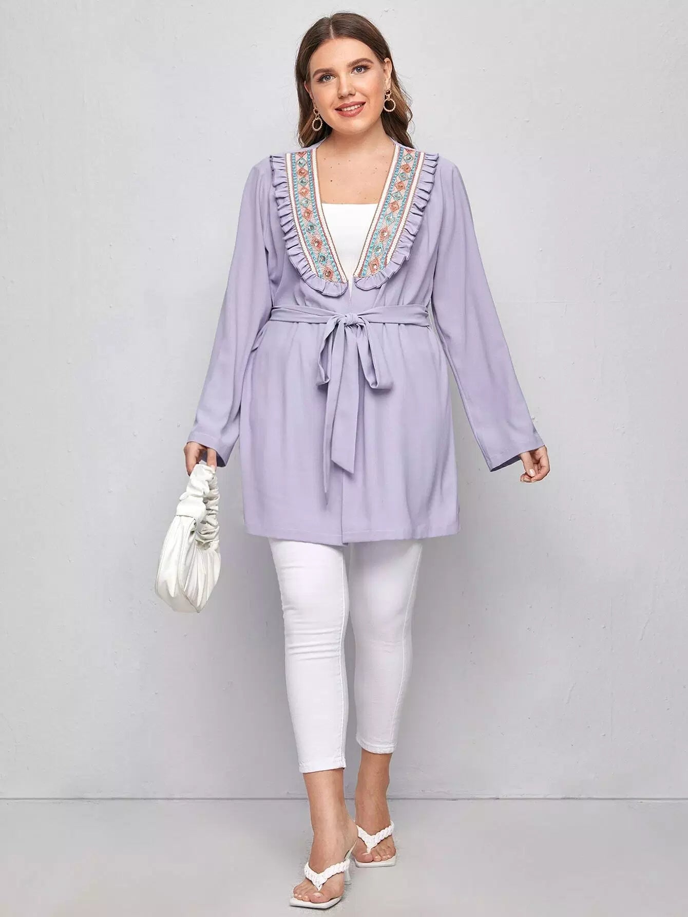 Plus Embroidery Frill Trim Self Coat Without Belt