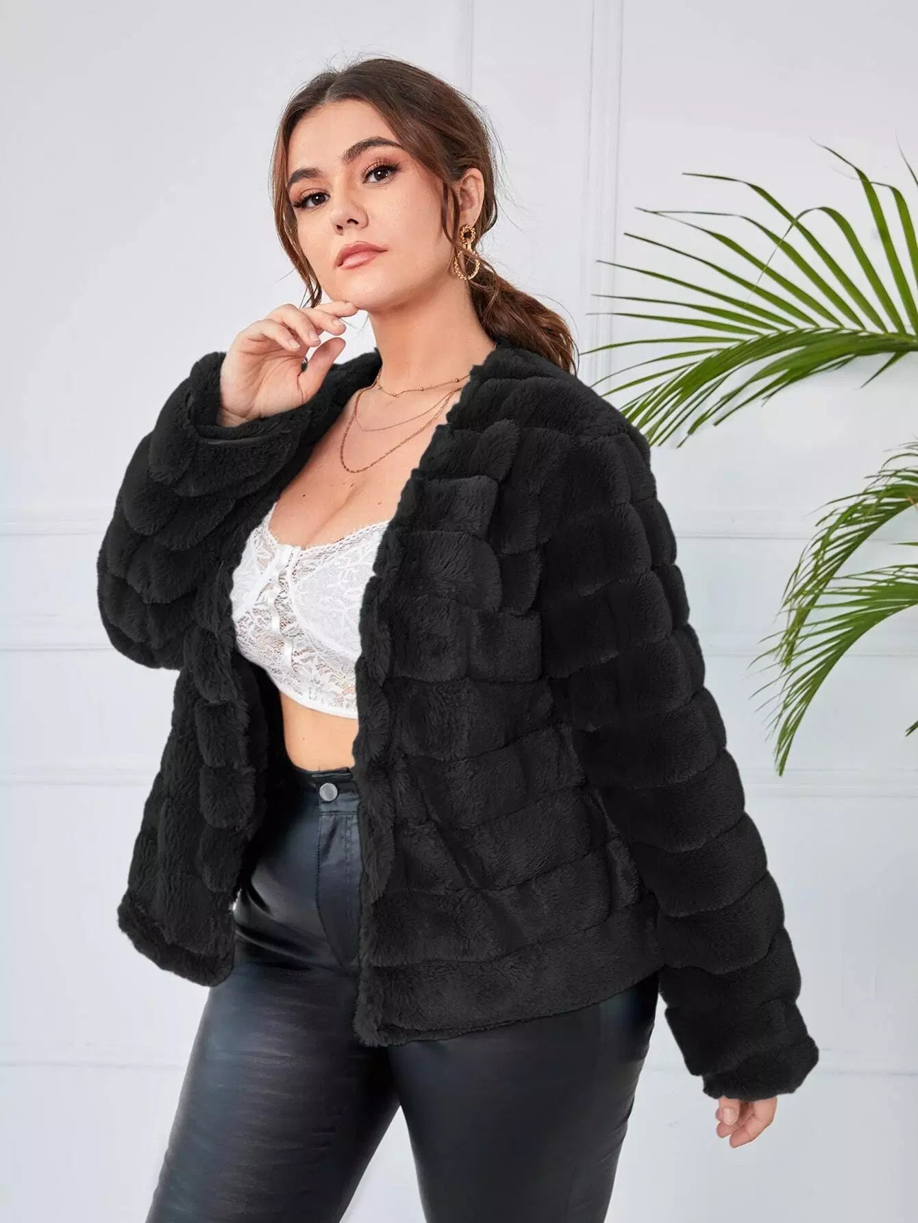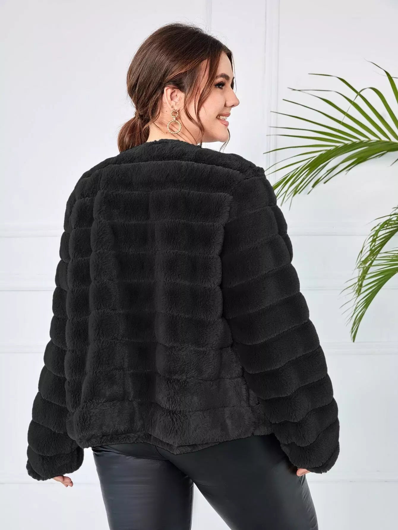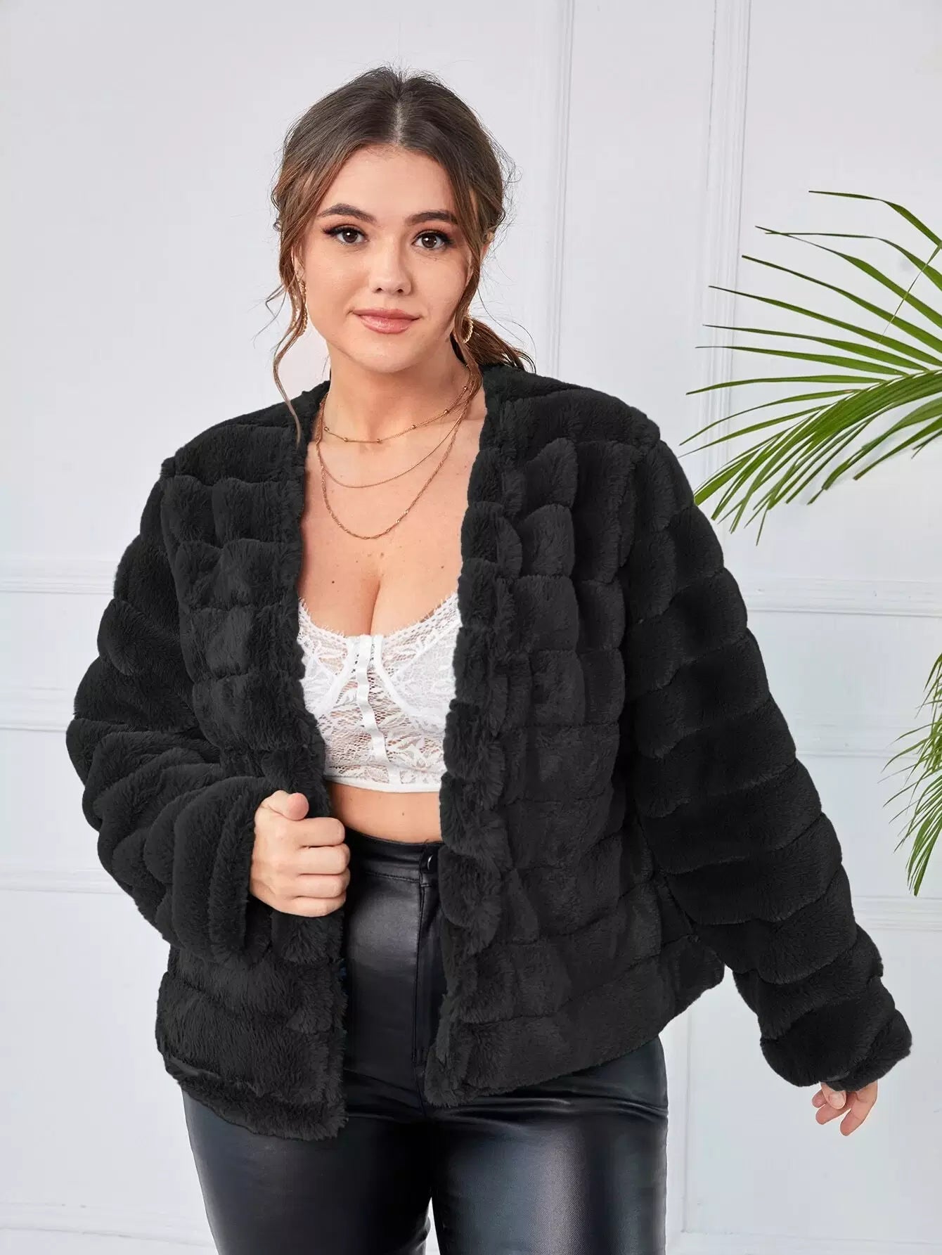 Plus Open Front Fuzzy Coat