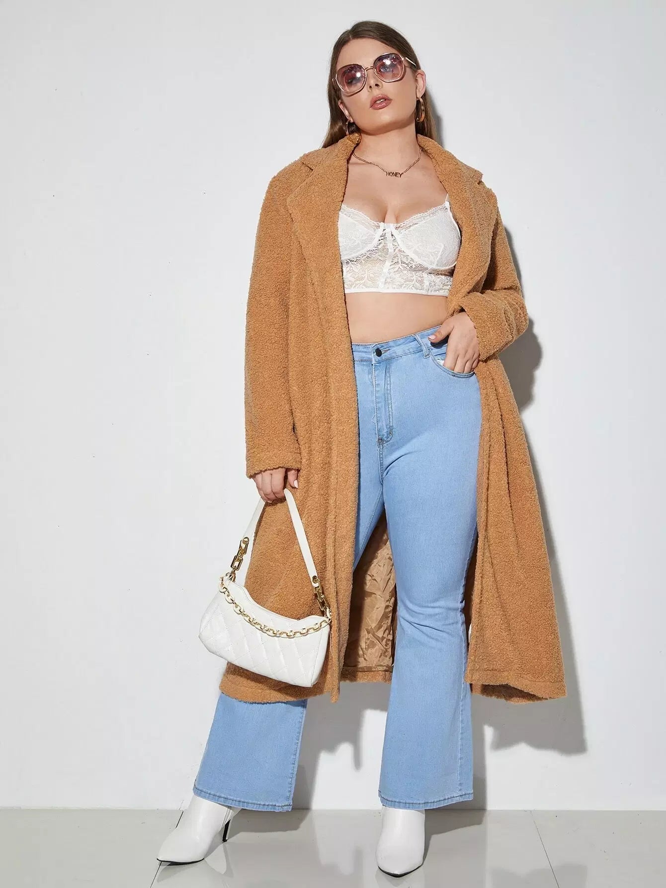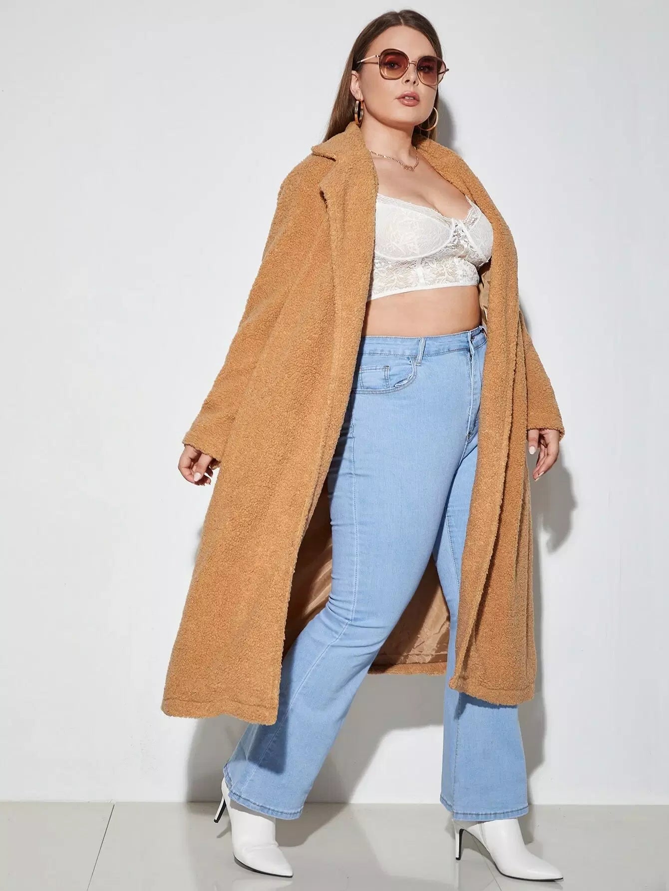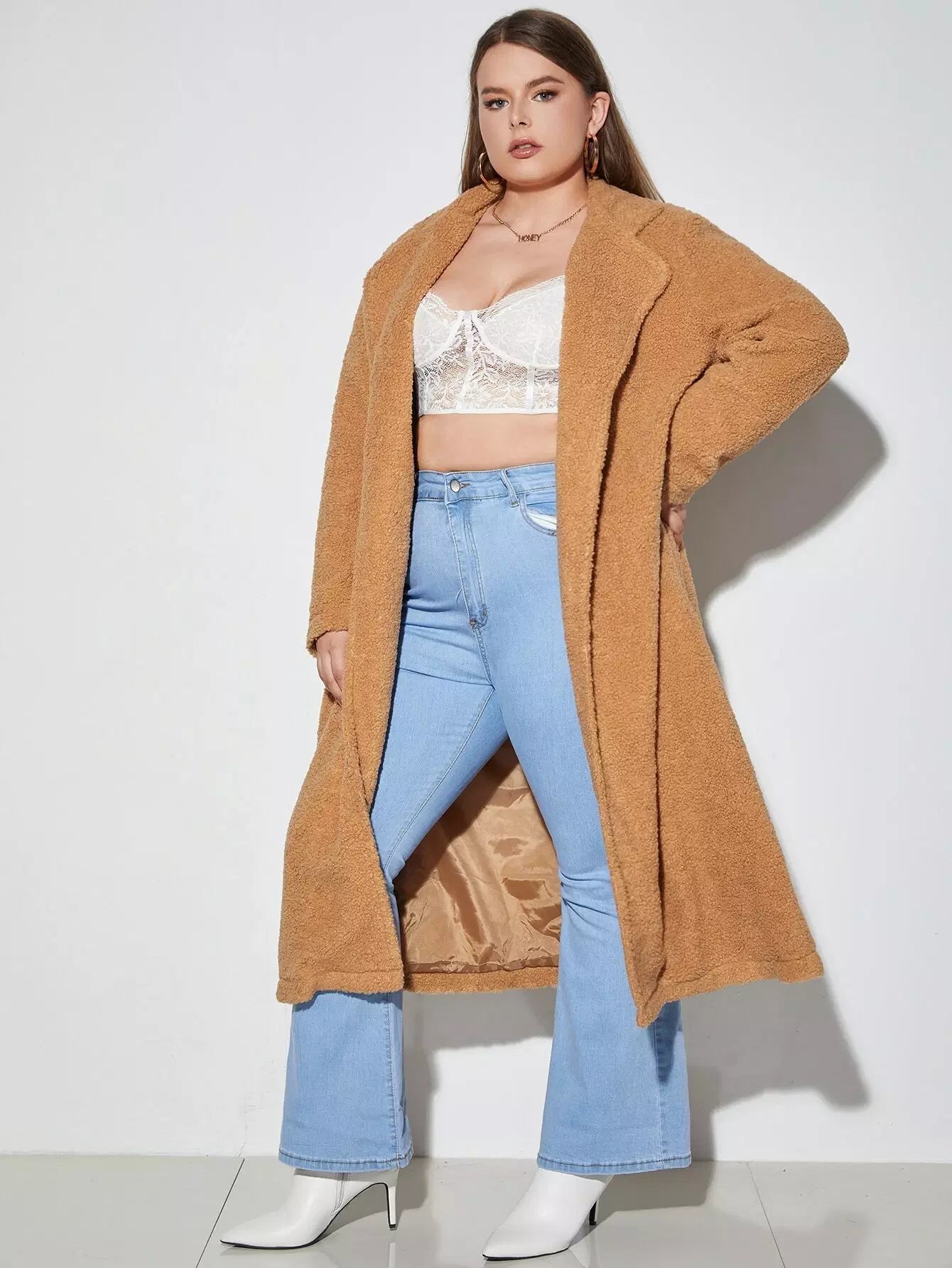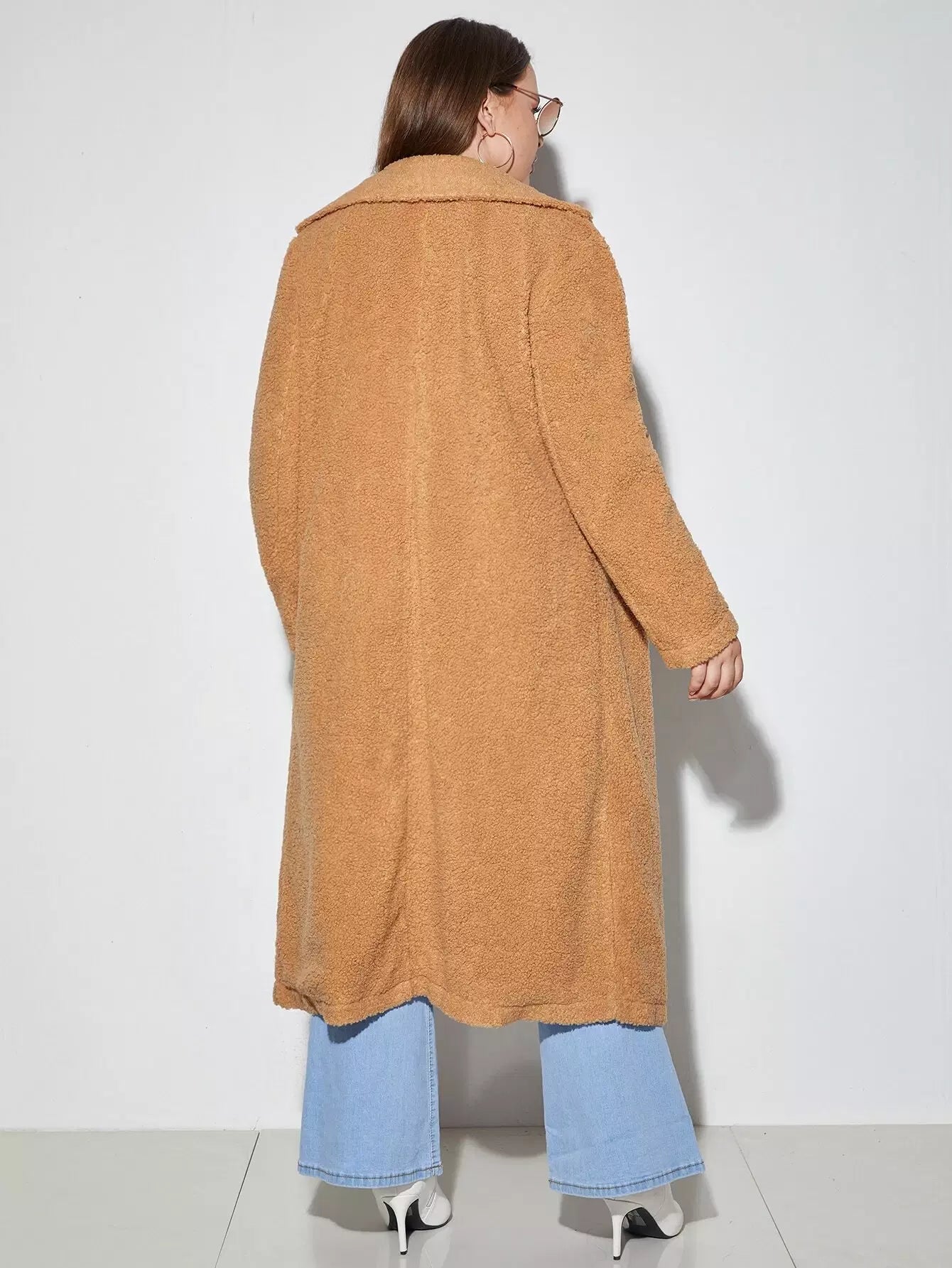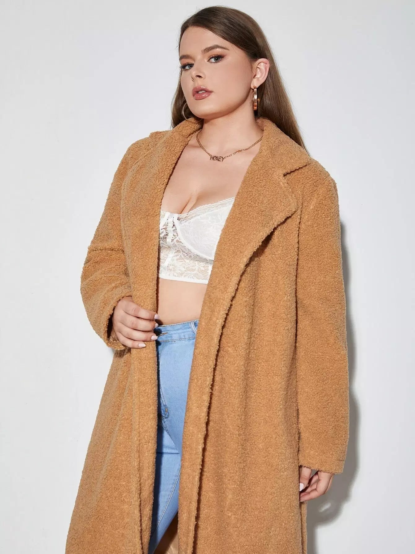 Plus Open Front Longline Teddy Coat