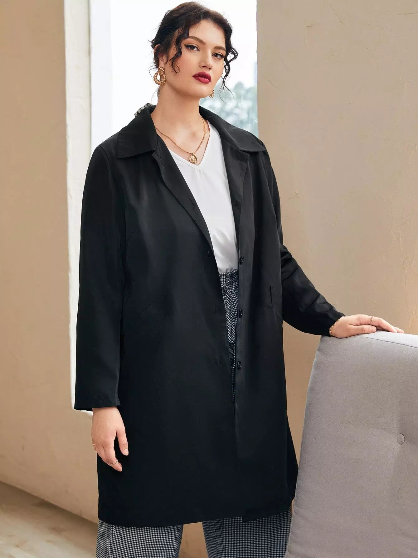 Plus Slant Pocket Button Front Coat