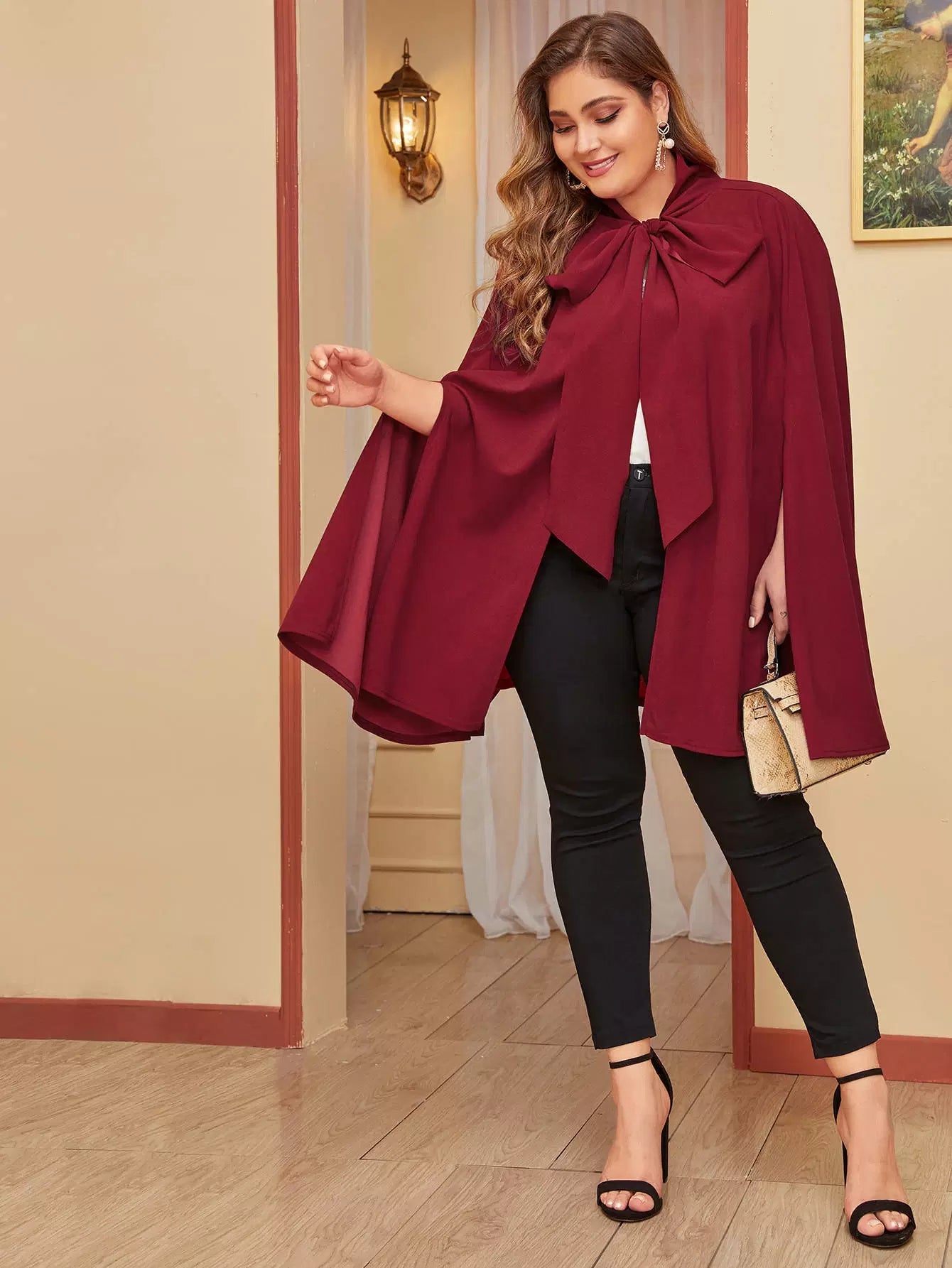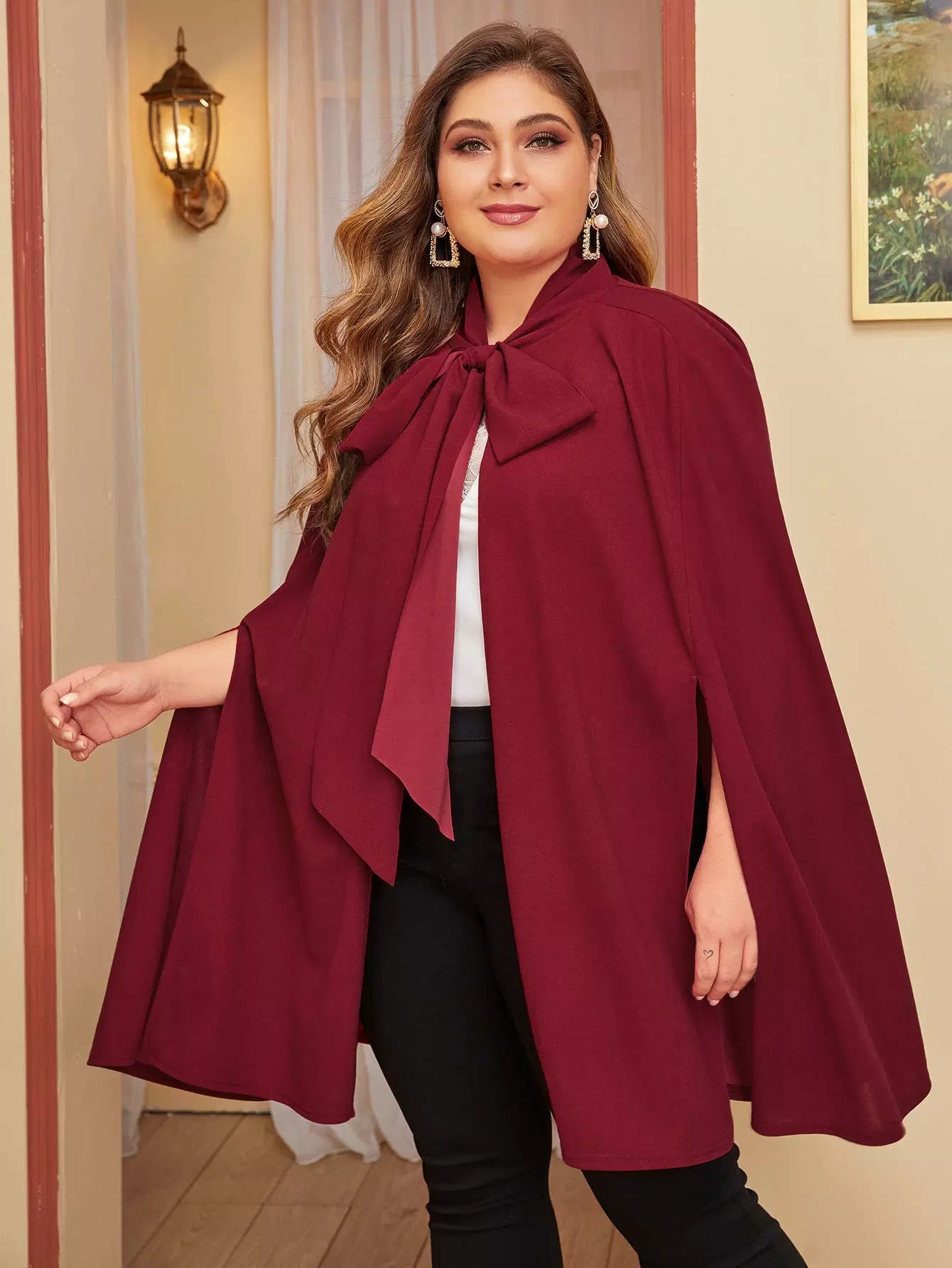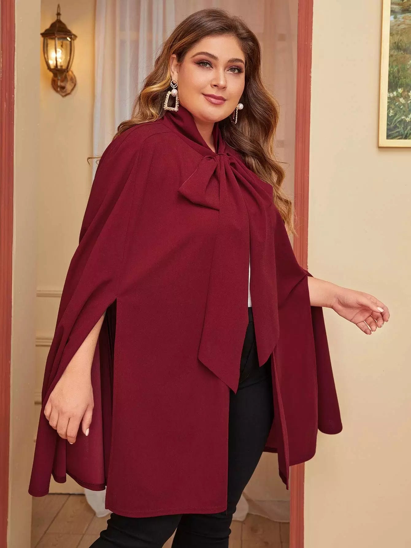 Plus Tie Neck Cape Coat
