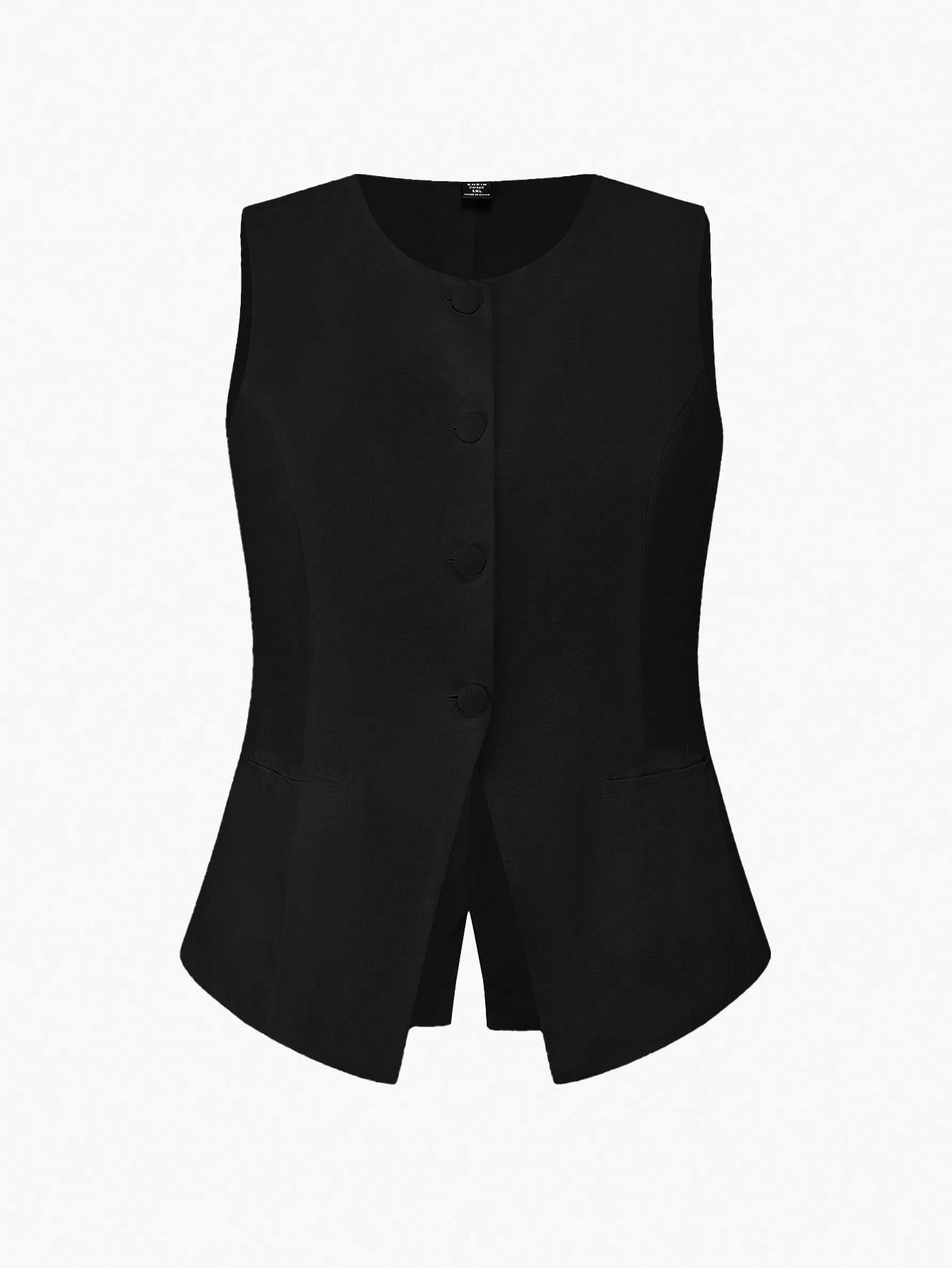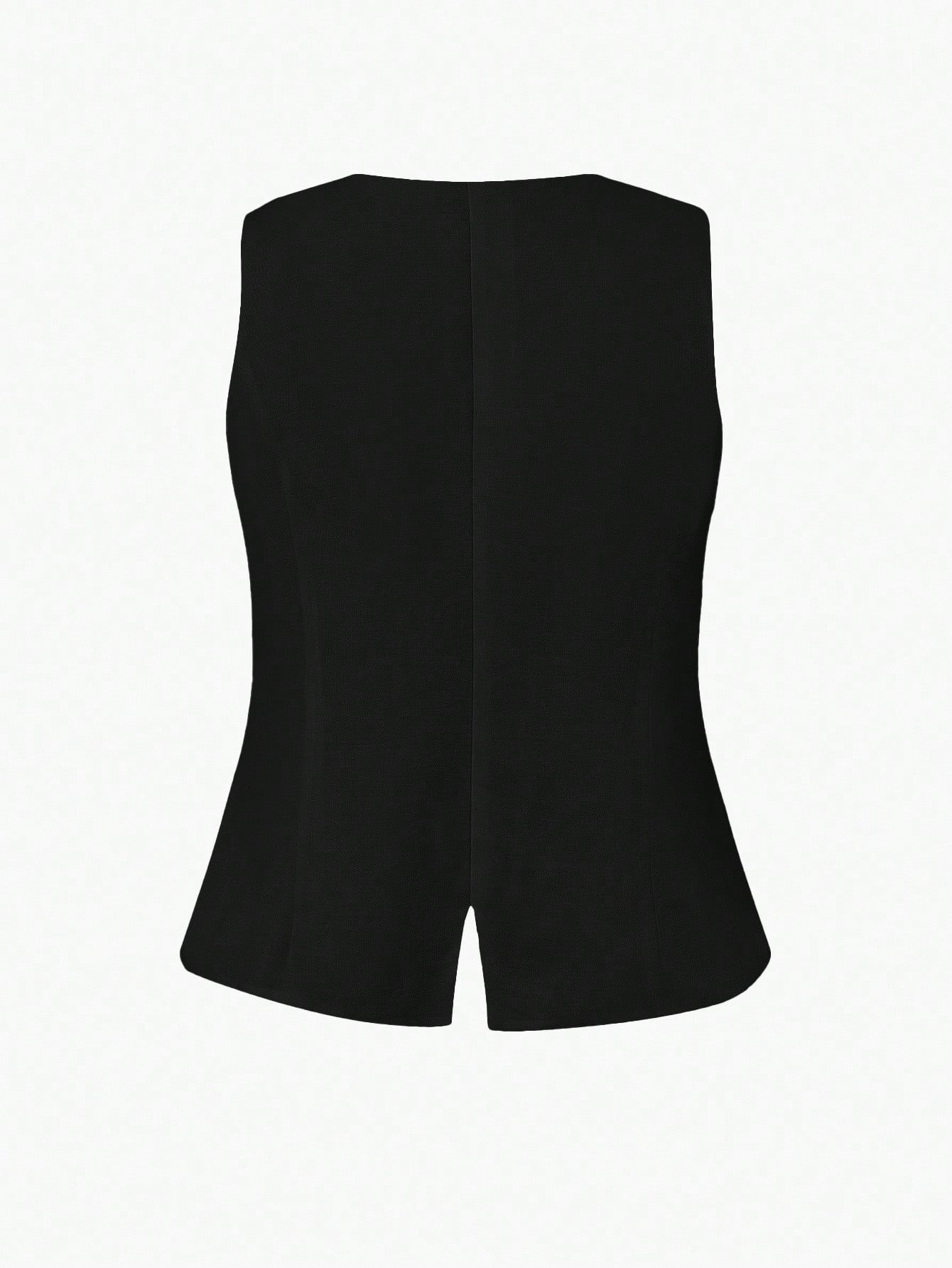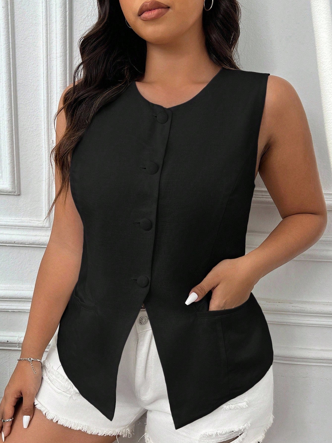 EZwear Plus Size Black Sleeveless Casual Waist Coat Vest For Holiday, Spring/Summer,Business Casual Woman