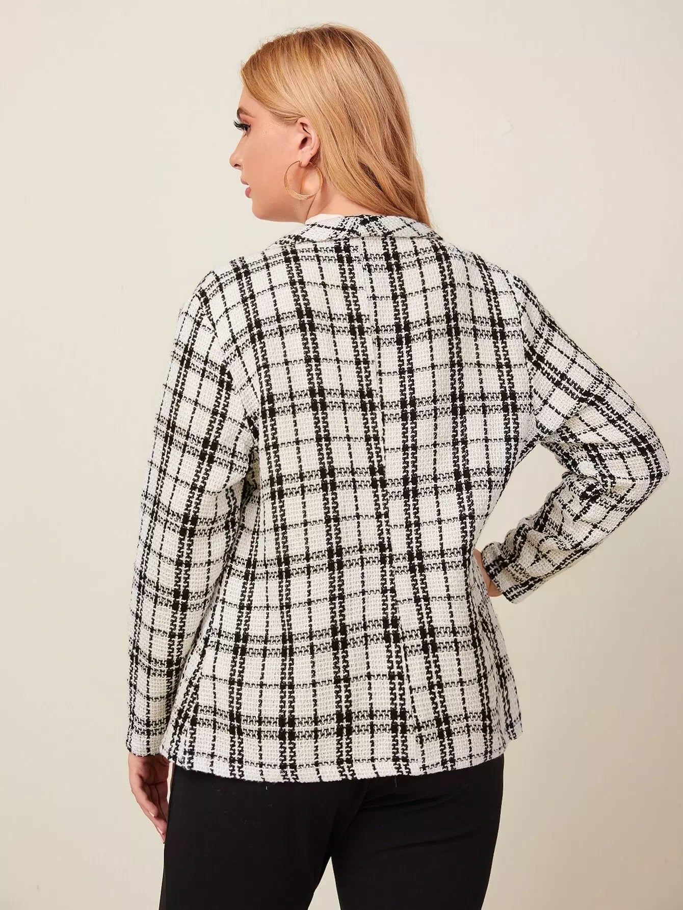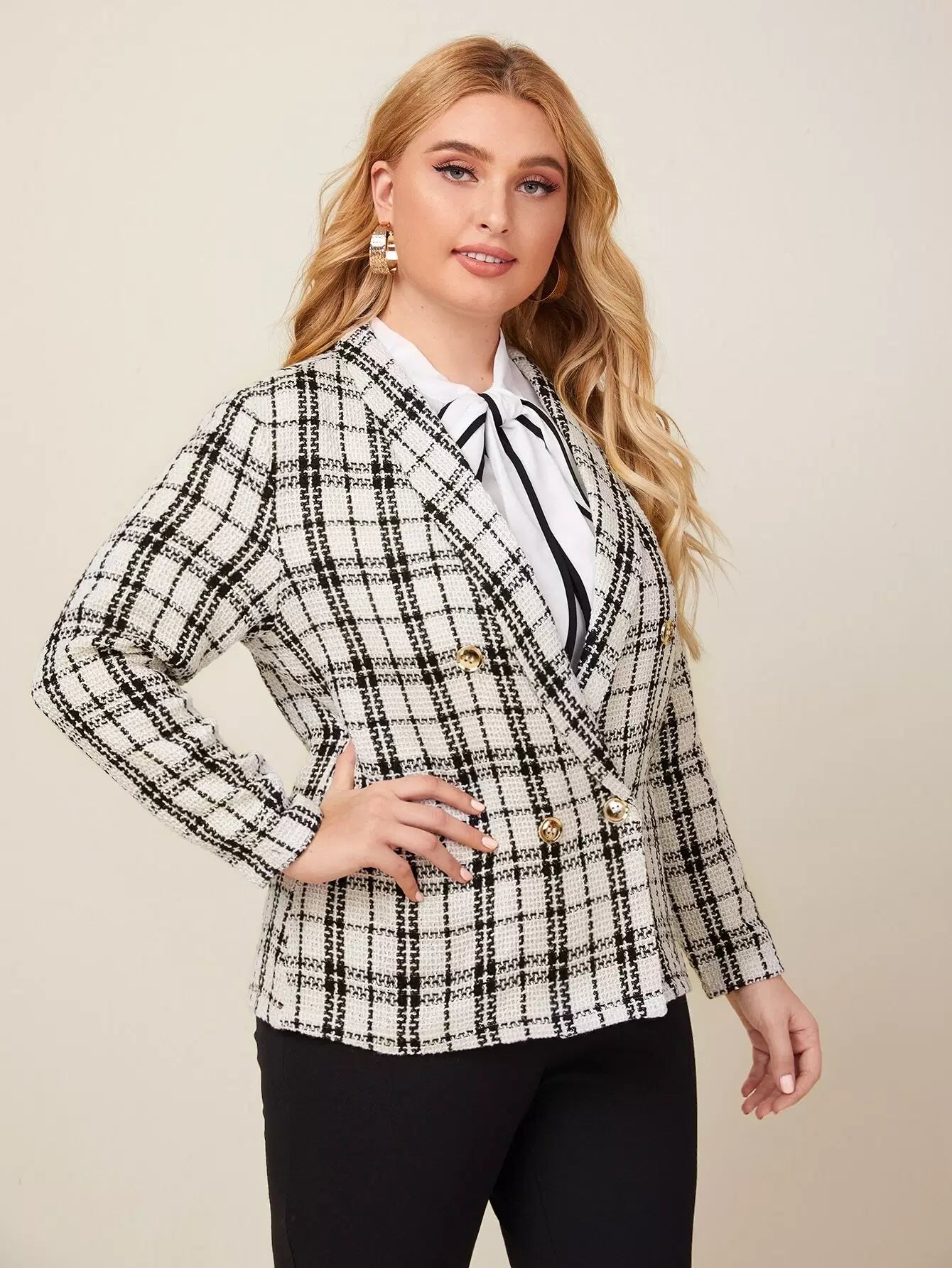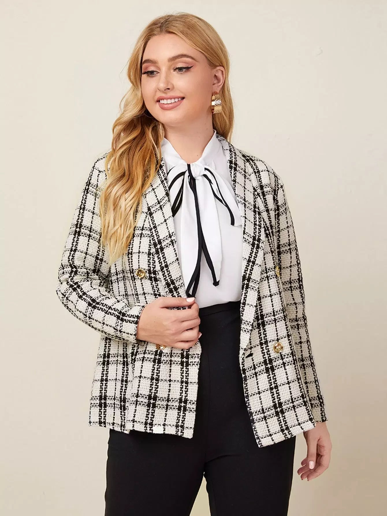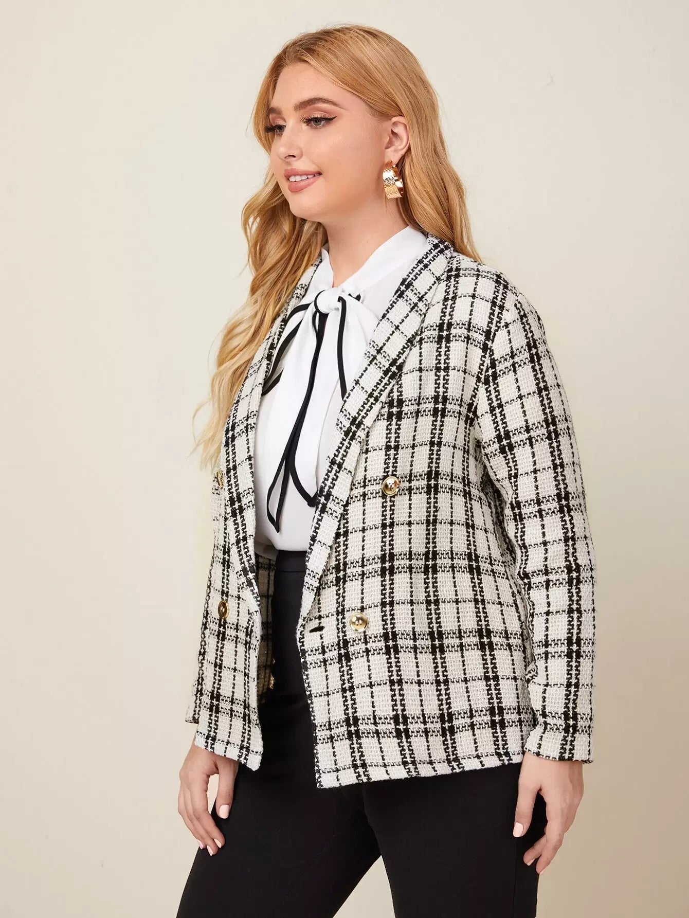 Plus Plaid Shawl Collar Double-breasted Blazer