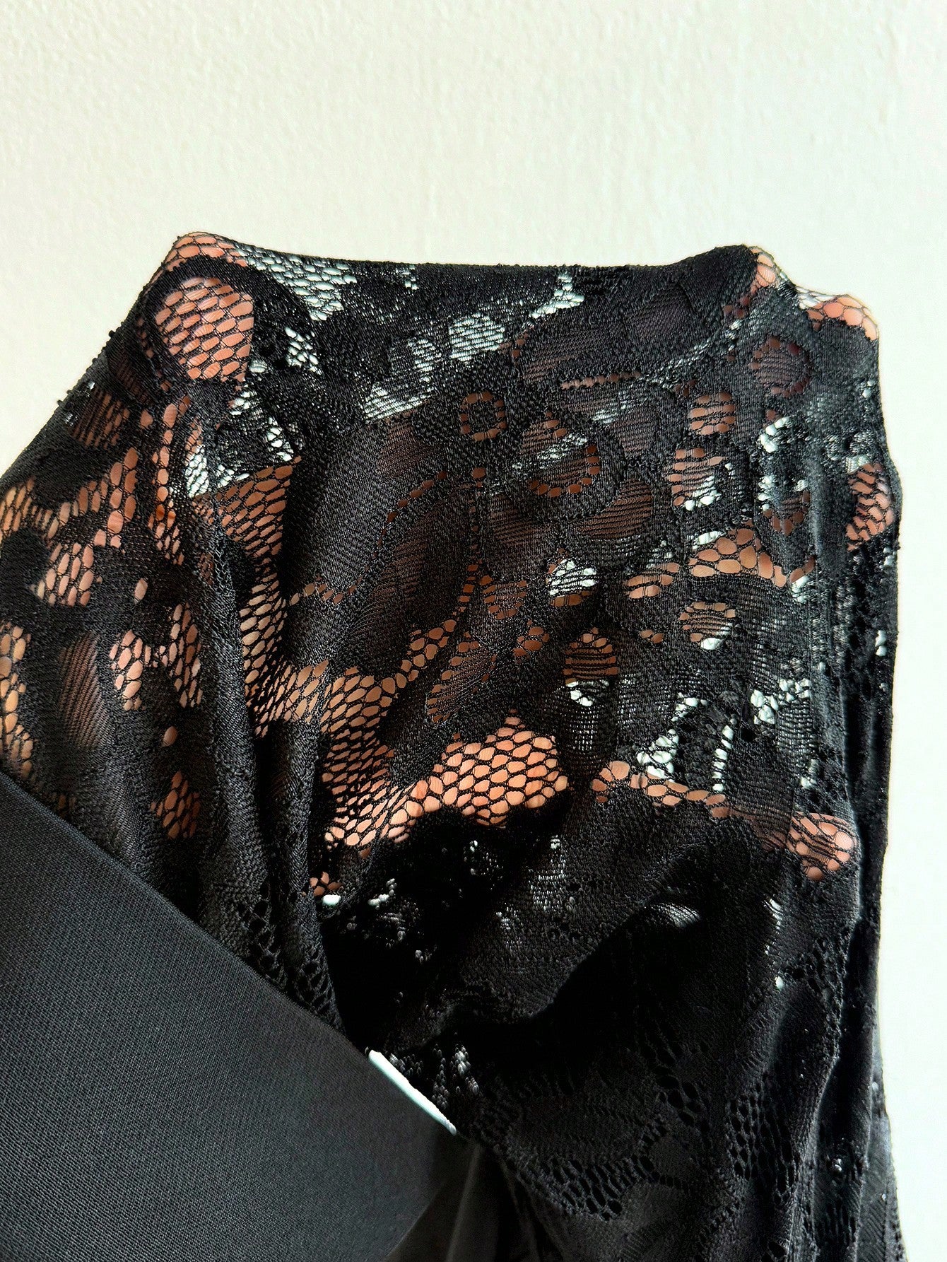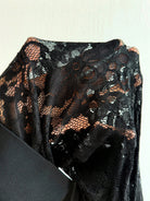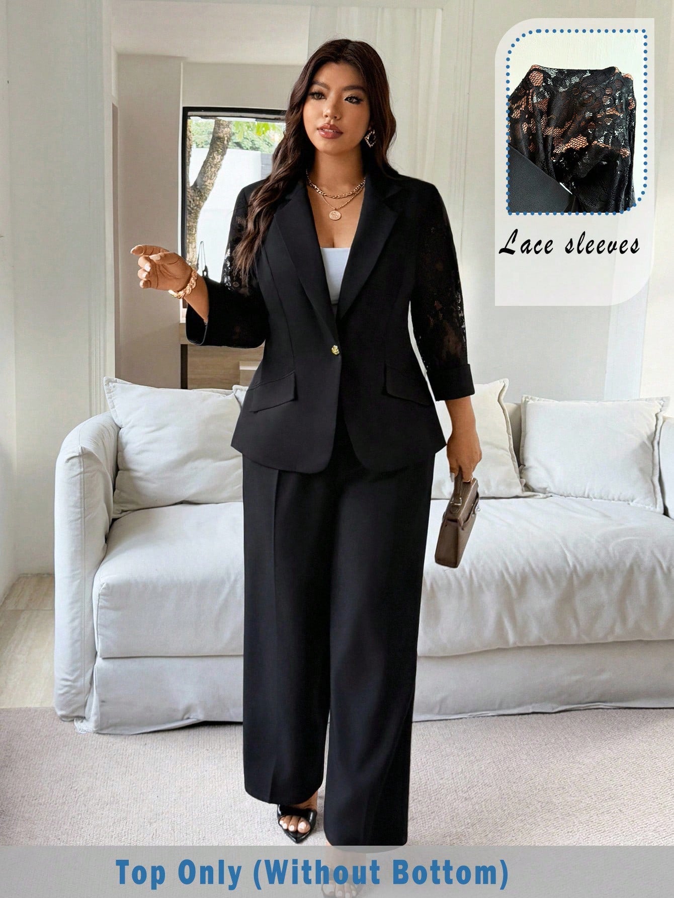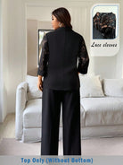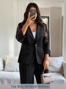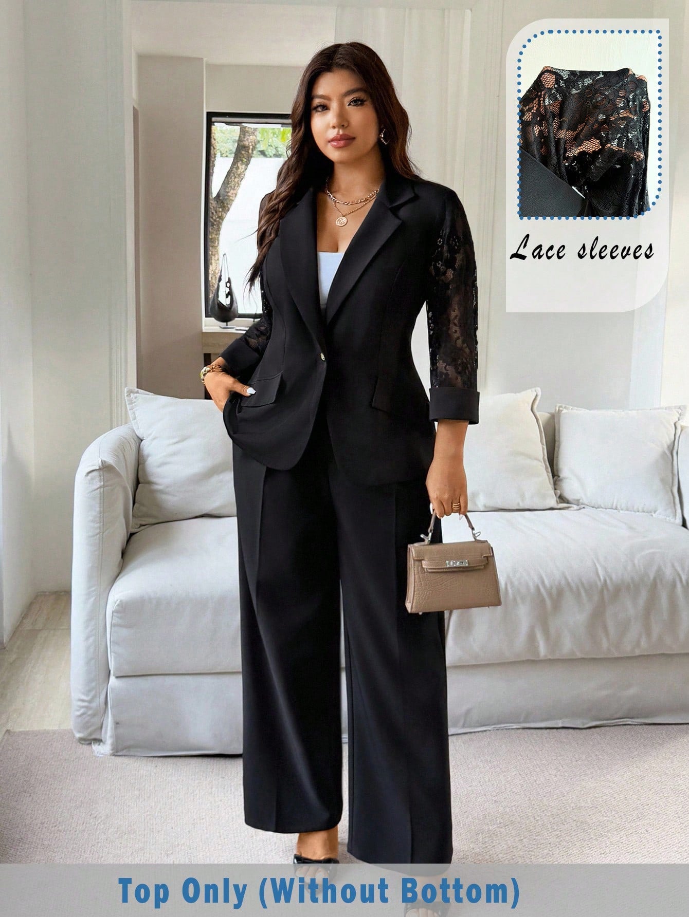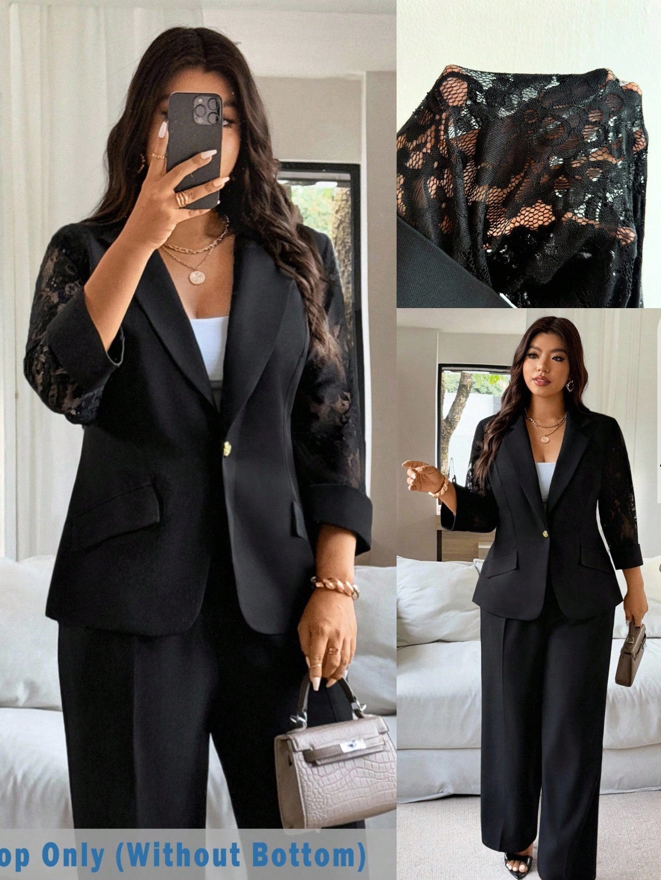 Vionelle Fashionable Casual French Retro Elegant 3/4 Sleeve Office Lace & Mesh Panel Blazer Black Pantsuit
