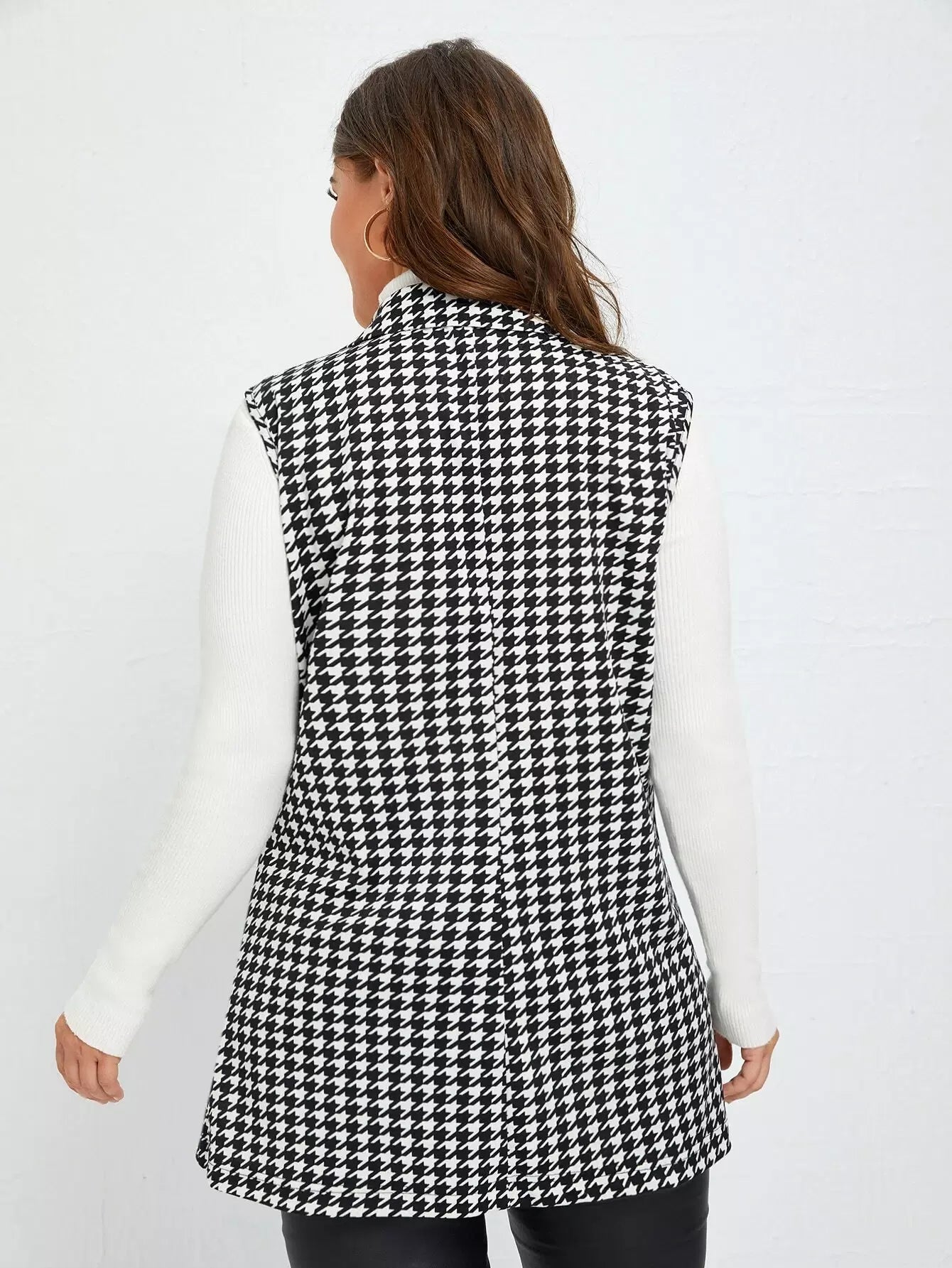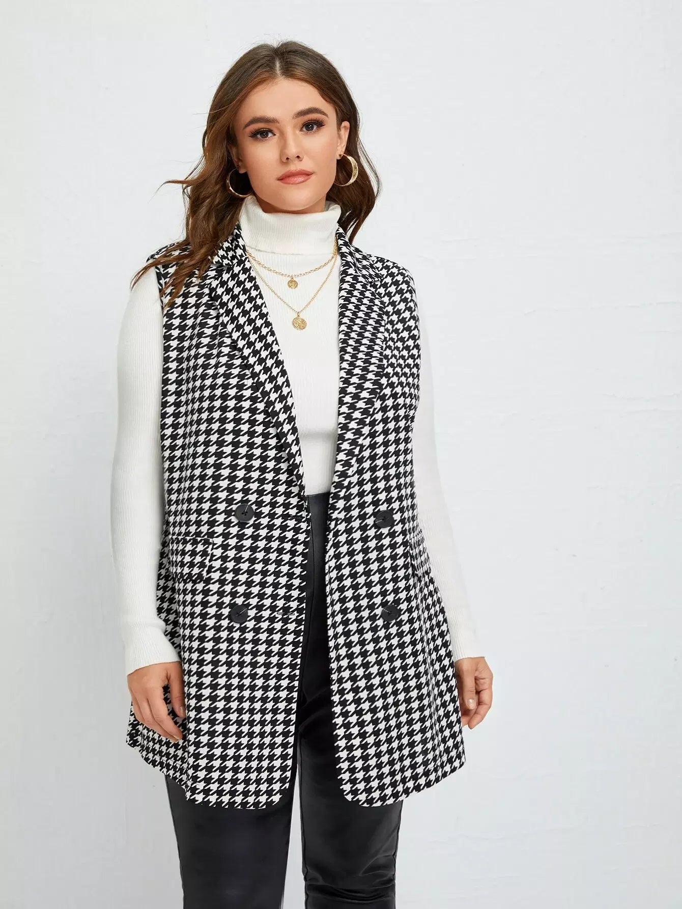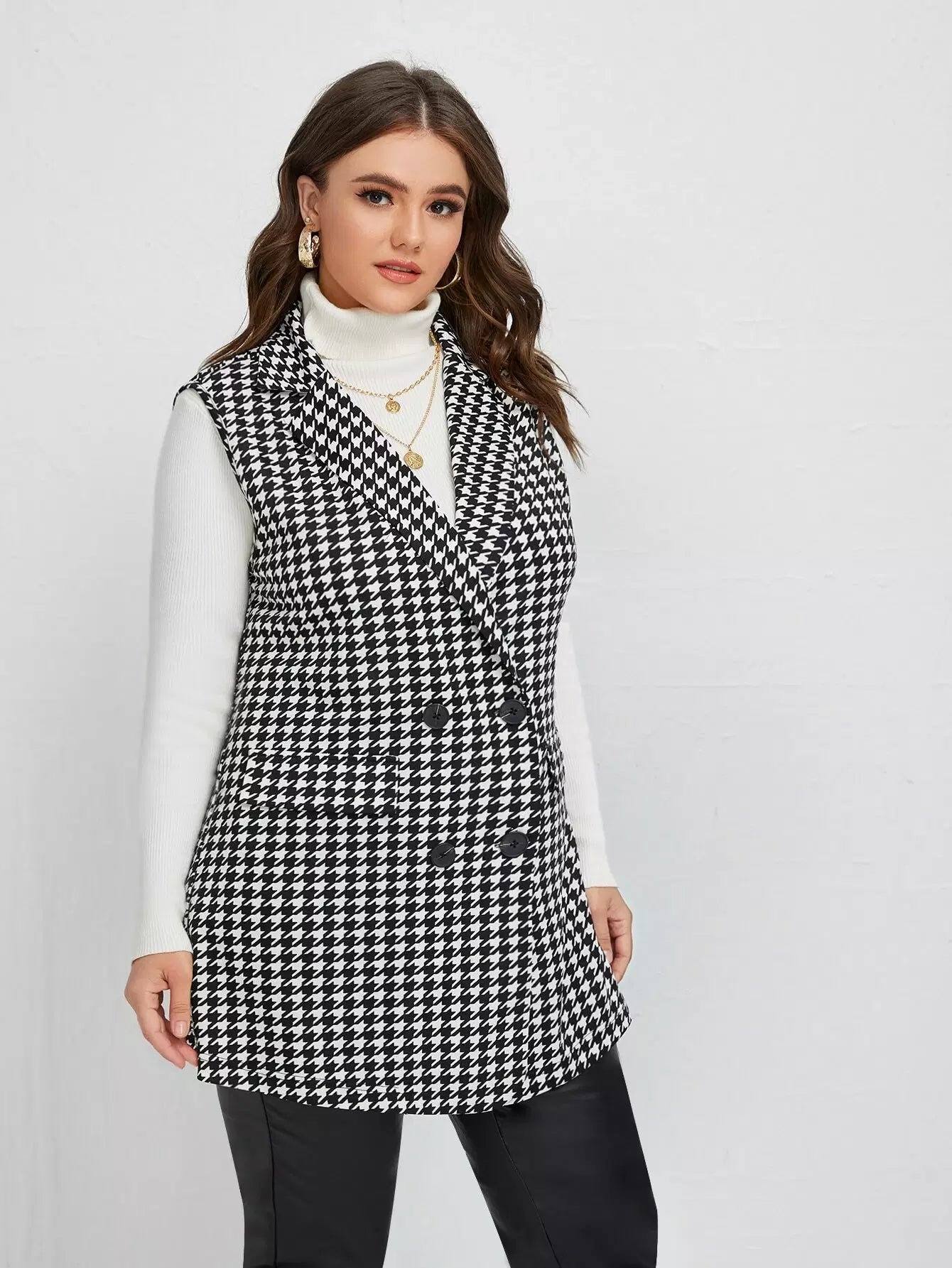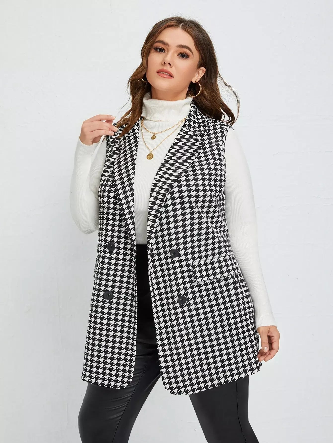 Plus Lapel Neck Houndstooth Double Breasted Blazer